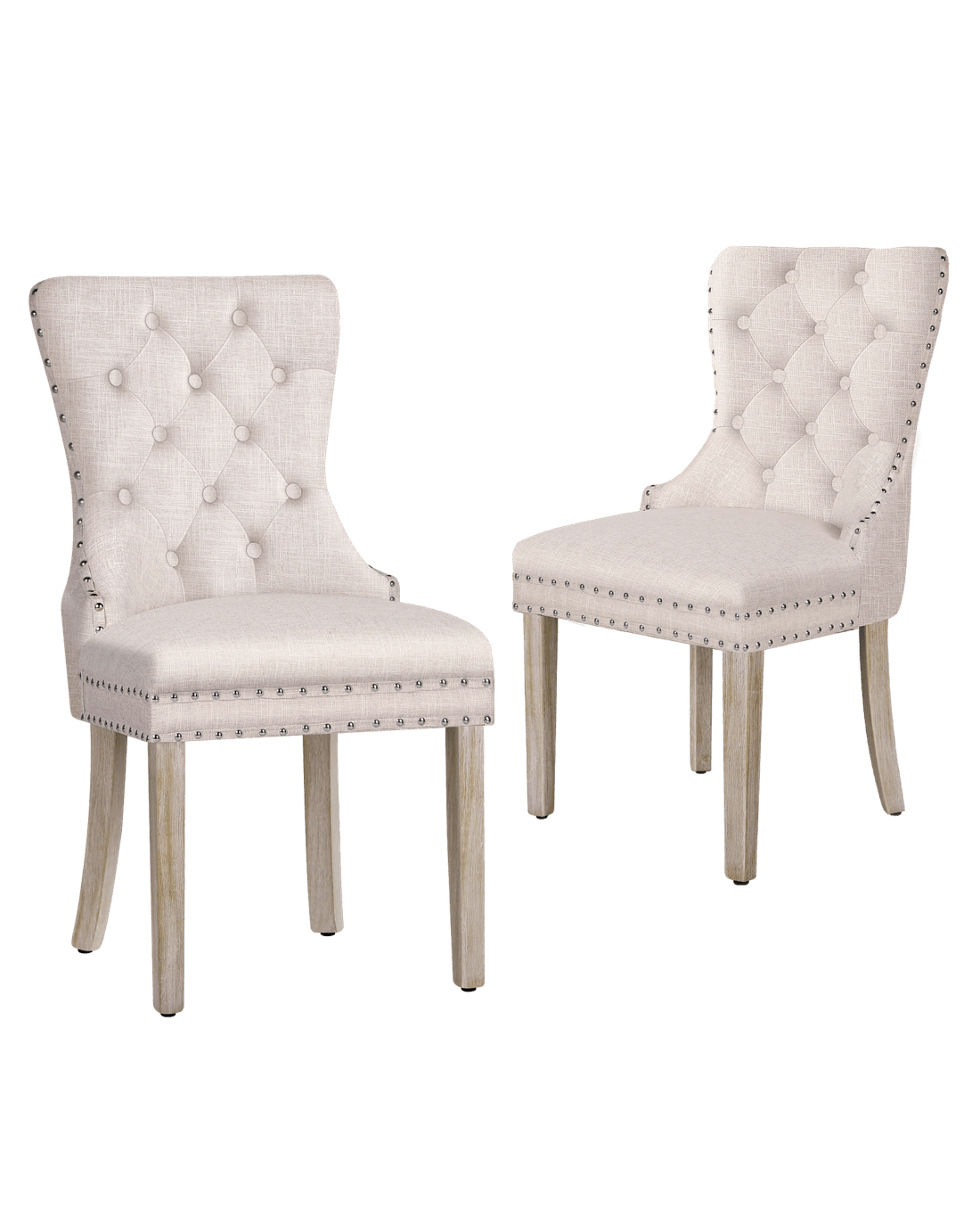 Designed with a blend of comfort and elegance, this accent chair invites you to dine in relaxation. Upholstered in premium linen fabric, the seat and backrest are padded with high-resilience foam. Combining its curved backrest, the kitchen chair offers a delightful seating experience.