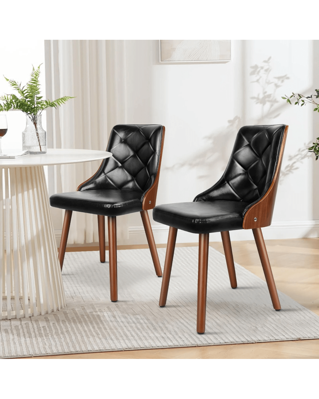 Sold by Aussie Union GroupAlfordson 2x Dining Chairs Kitchen Lounge Padded Tufted Glossy PU Leather - Black