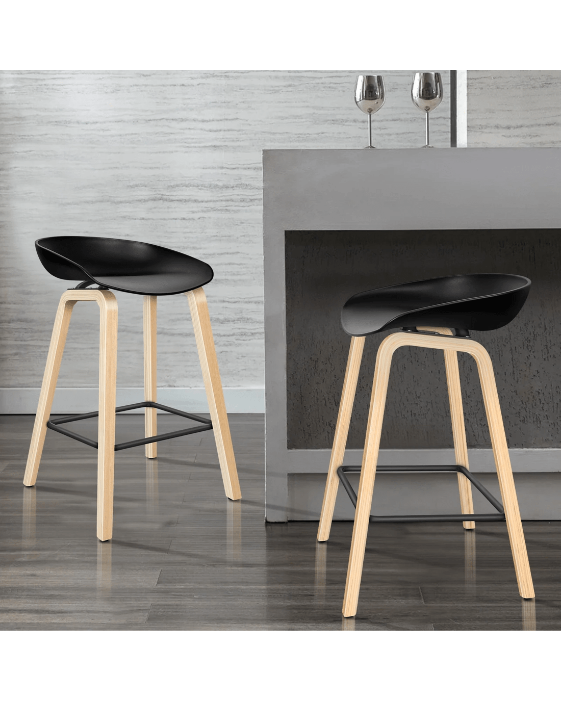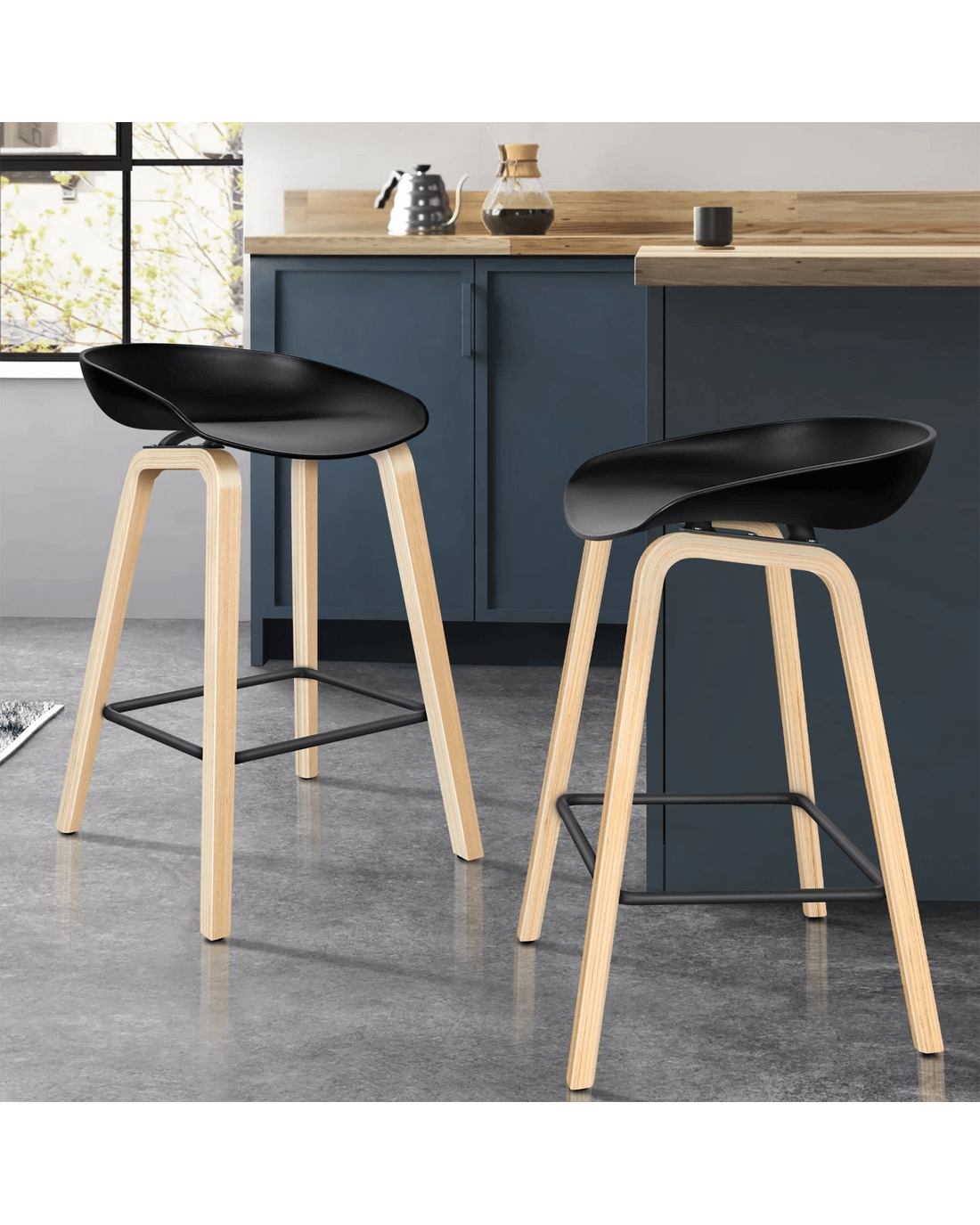 Sold by Aussie Union GroupAlfordson 2x Kitchen Bar Stools Counter Wooden Chairs - Black