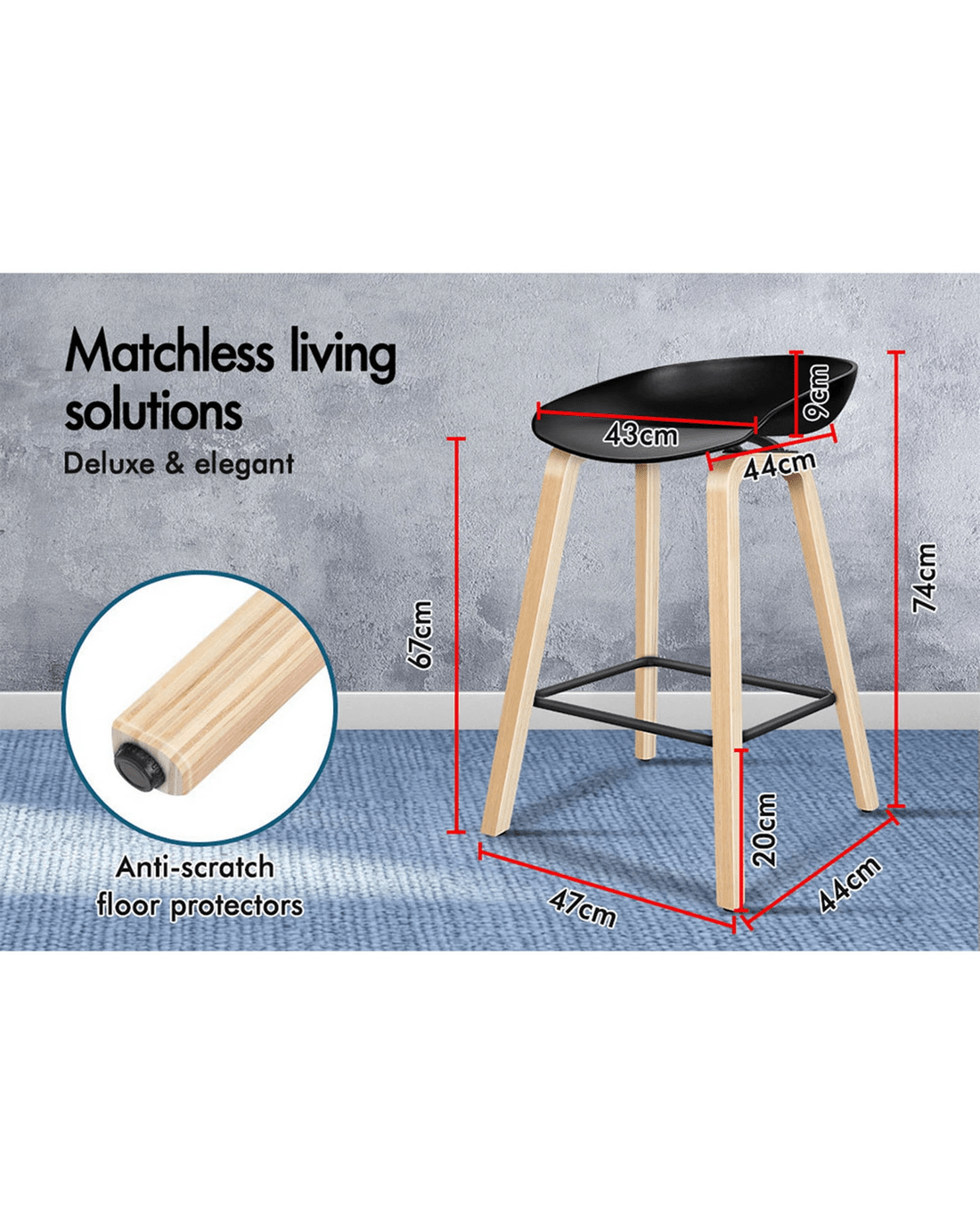 As always, we have no compromise on materials Use - rong PP plastic seat, enhanced wooden legs and durable metal frame ensure ultra stability with longlasting durability. Your floor is also aptly protected with anti-slip plastic floor protectors, which are attached to each side of stool legs.