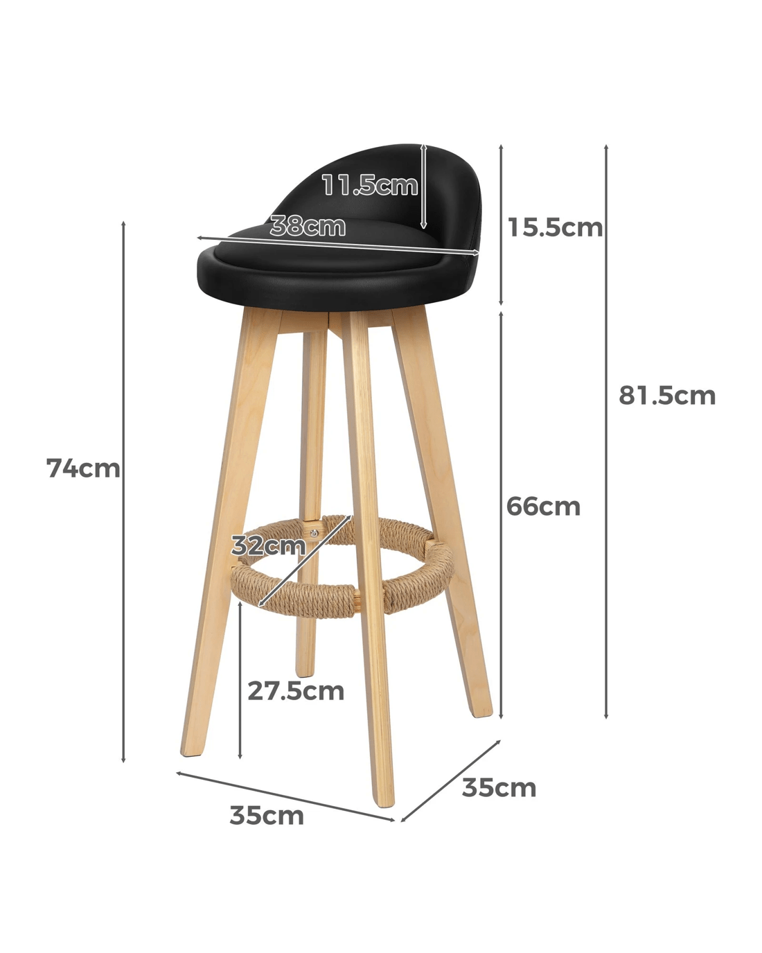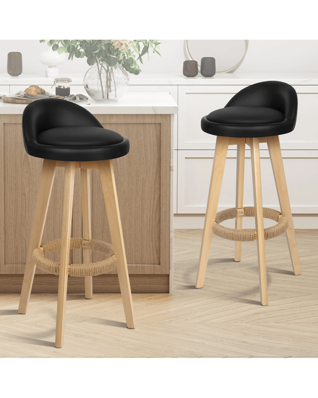 Sold by Aussie Union GroupAlfordson 2x Kitchen Bar Stools Liam Wooden Swivel Bar Stool Chairs - Black