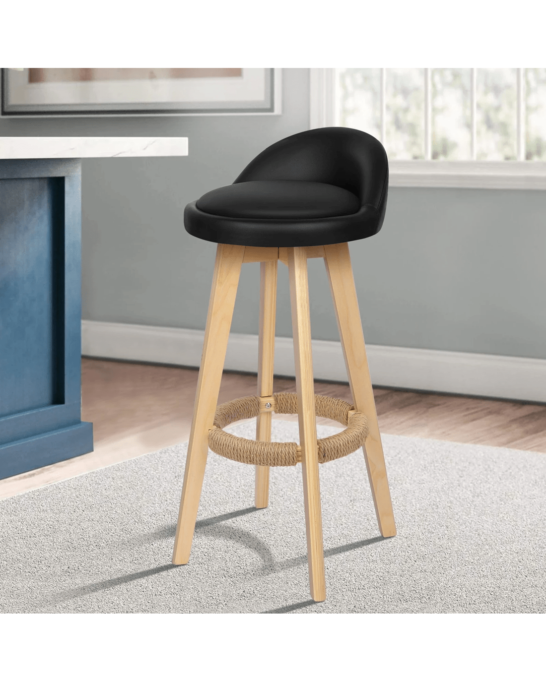 With an eclectic mix of wood, hemp rope and PU leather, this bar stool is designed to match any furniture taste.