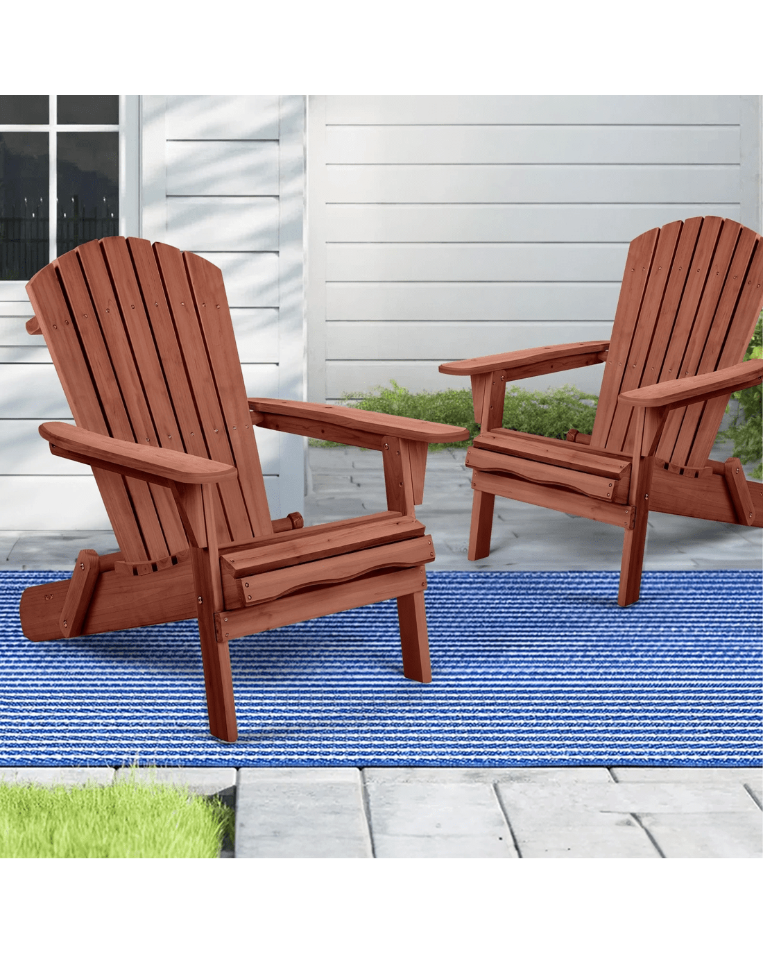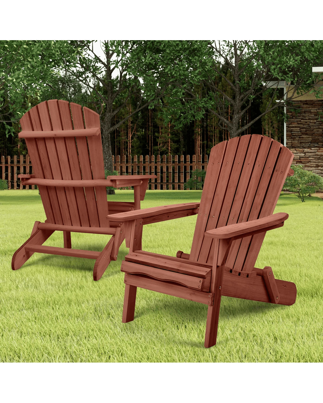 Alfordson 2x Outdoor Chairs Wooden Adirondack Patio Furniture Beach Garden - Brown