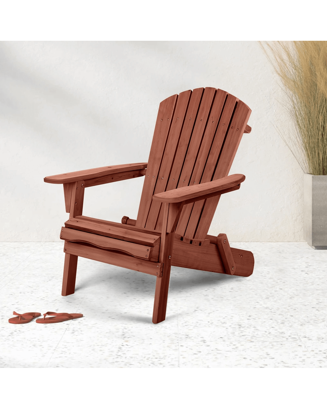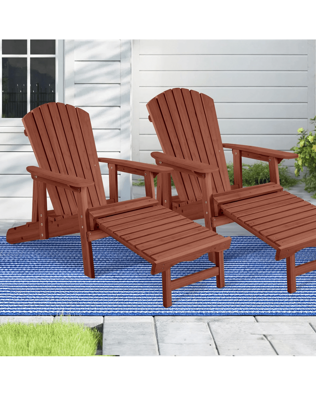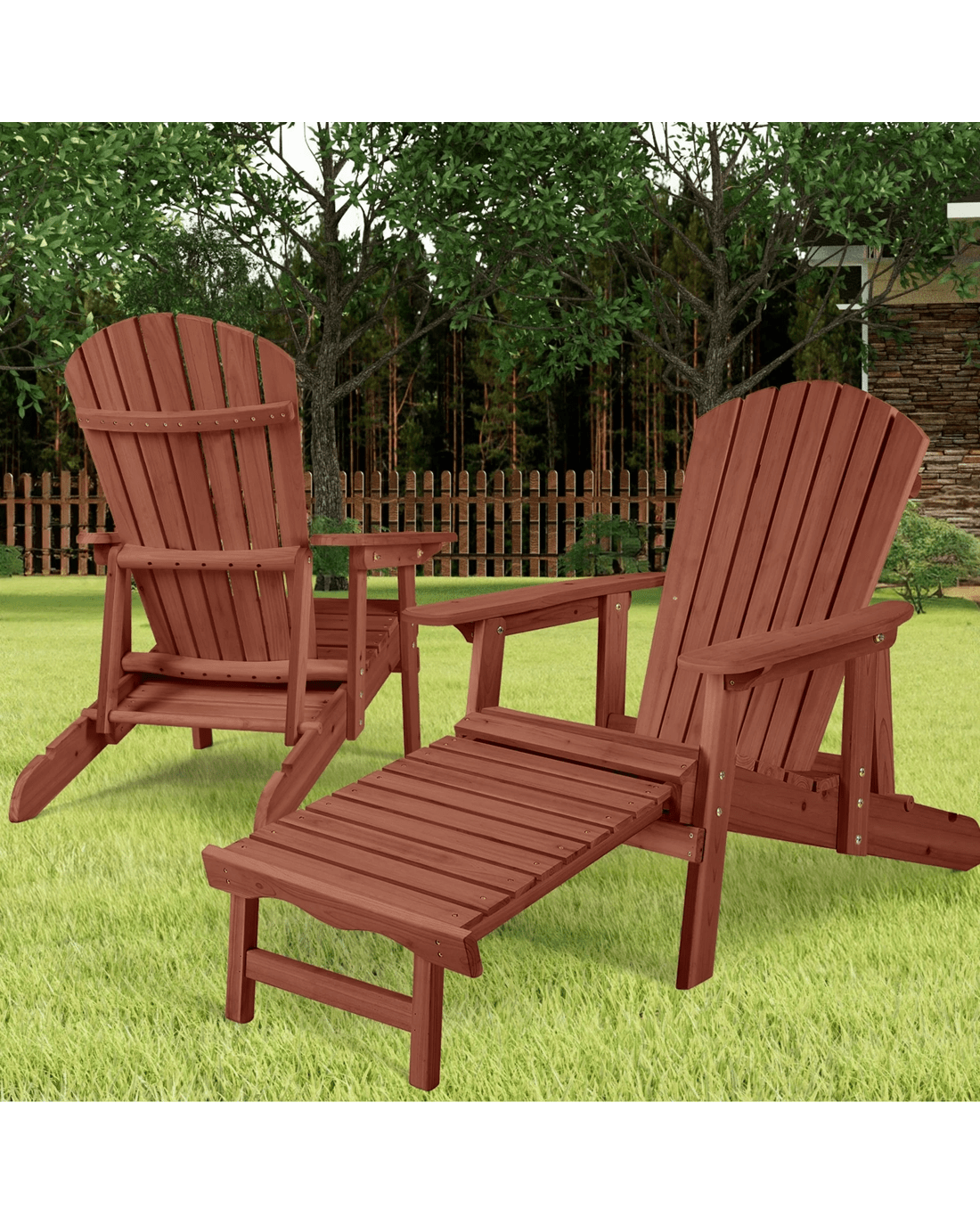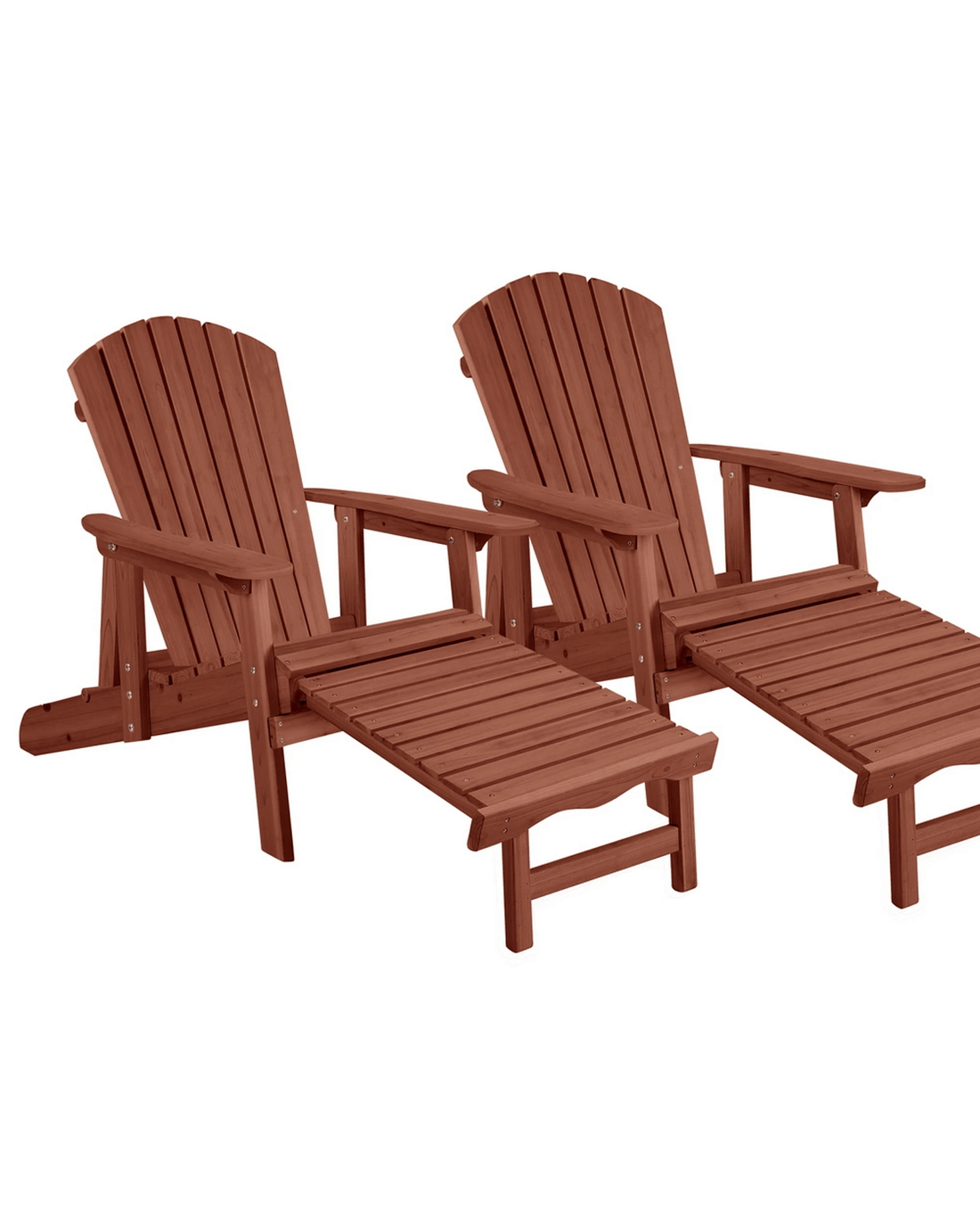 Alfordson 2x Outdoor Chairs Wooden Adirondack w/ Ottoman Patio Beach Garden - Brown