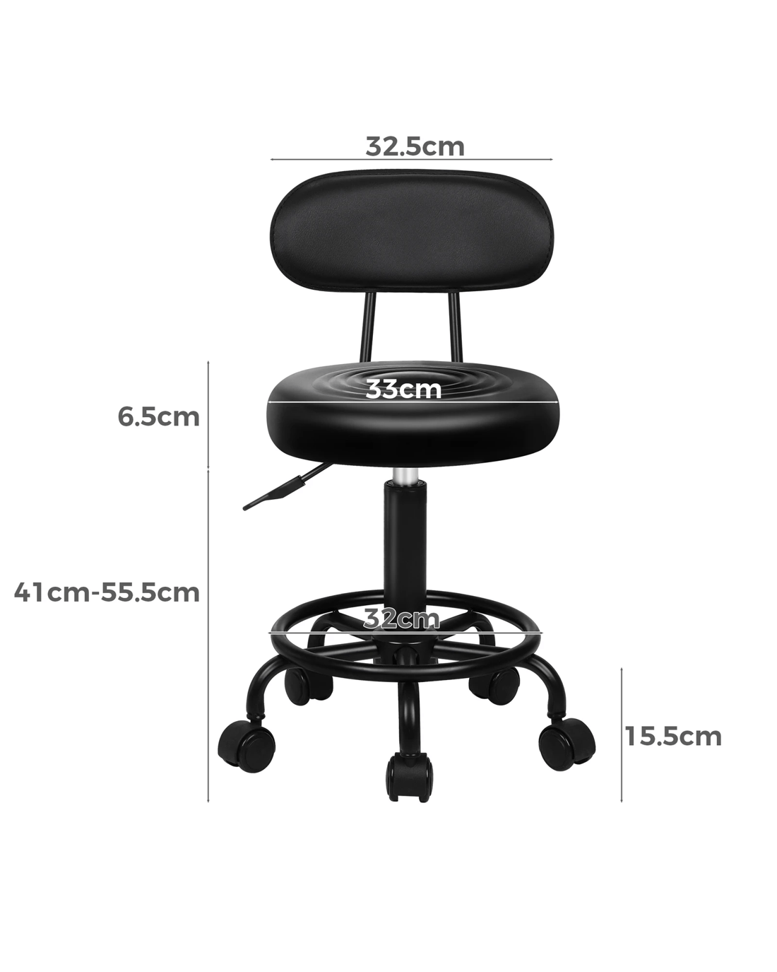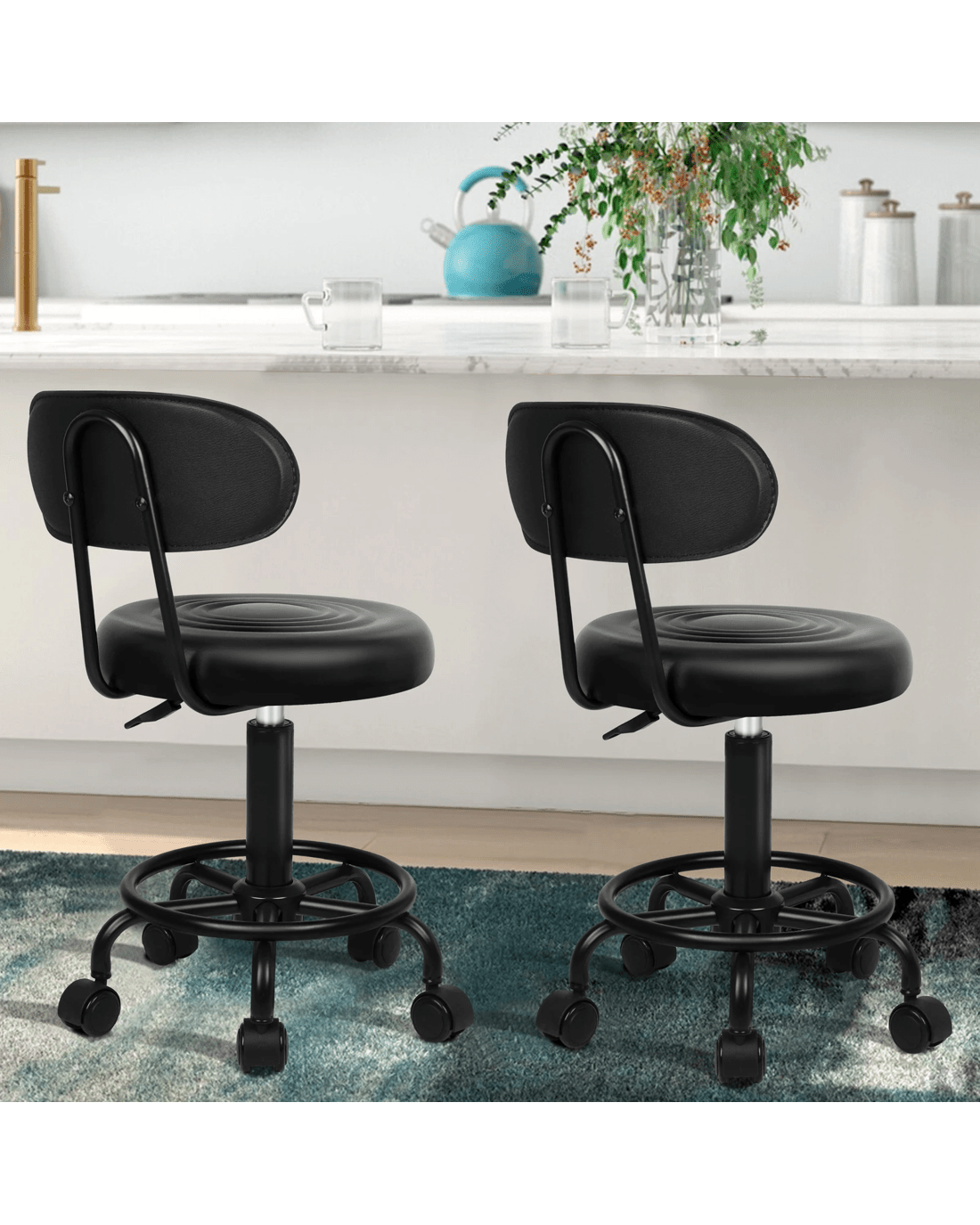Alfordson 2x Salon Stool Backrest Swivel Barber Hair Dress Chair - All Black