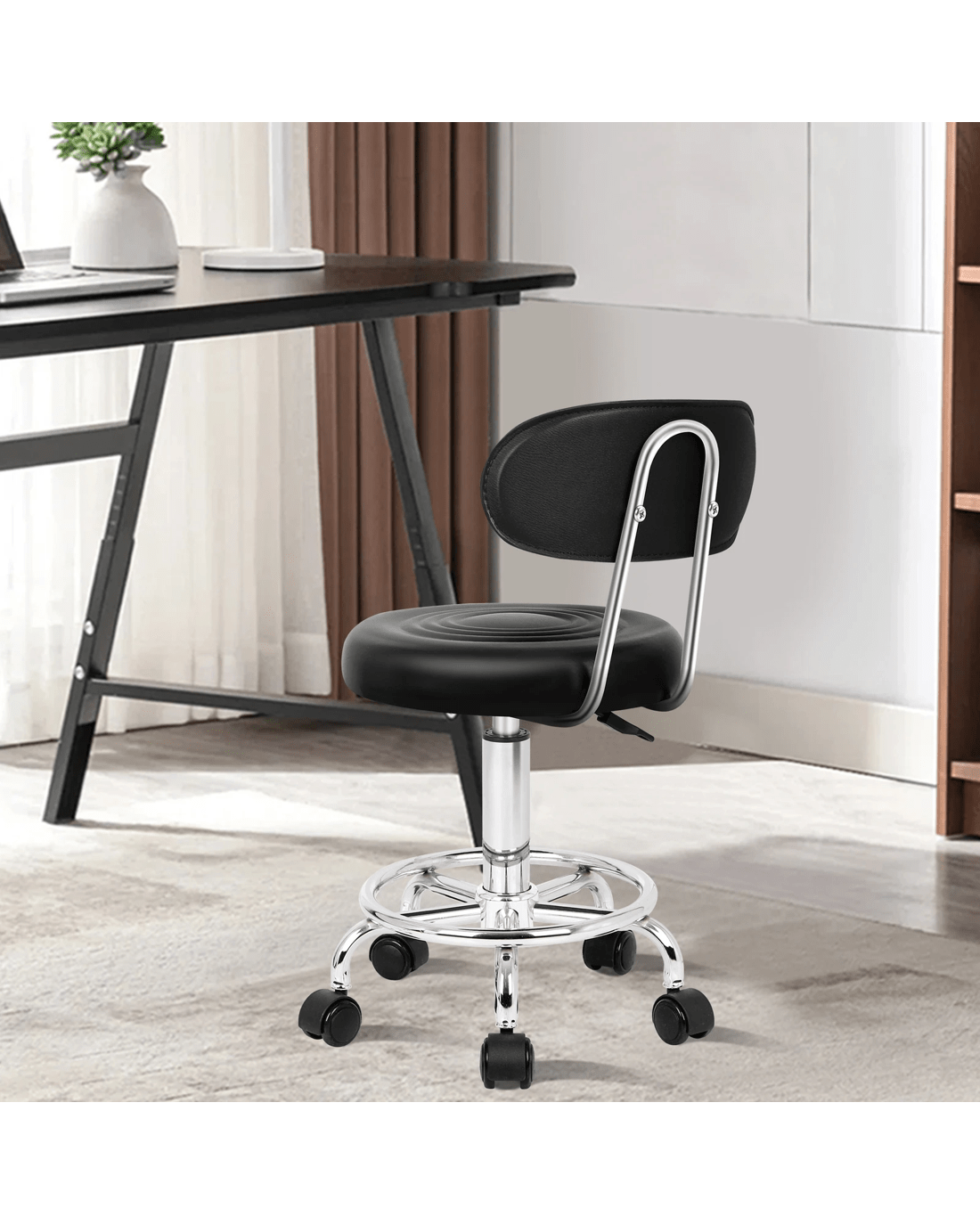 This salon stool stands out with a curvaceous frame in rounded seat and mid-back design. It will definitely add a contemporary atmosphere to your home. They are ideal for dental, office, lab, clinic, tattoo, massage, beauty salon, kitchen and spa.