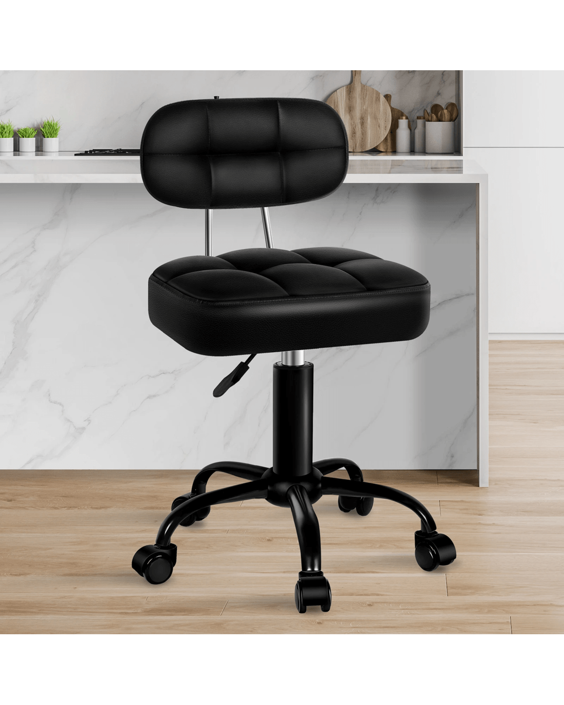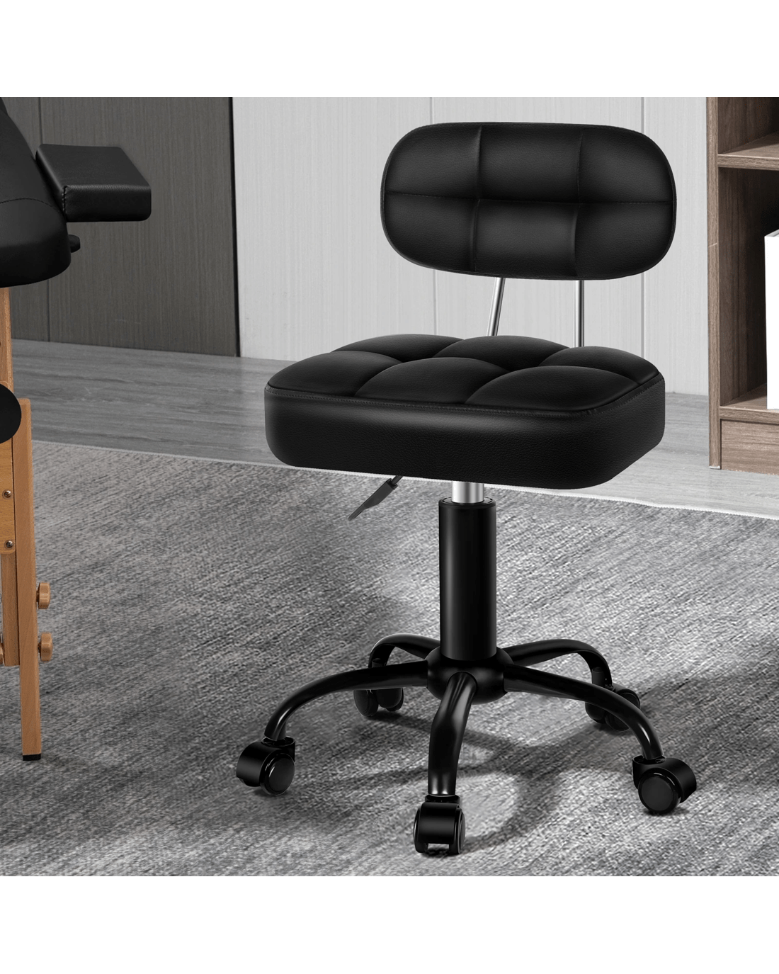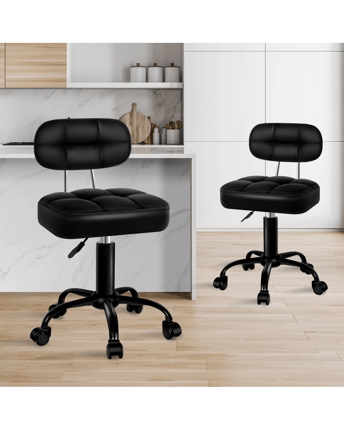 Alfordson 2x Salon Stool Backrest Swivel Barber Hair Dress Chair Tufan - All Black