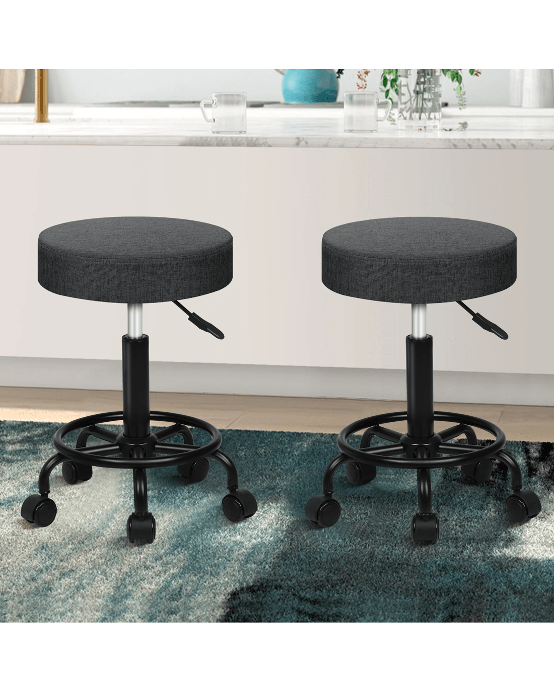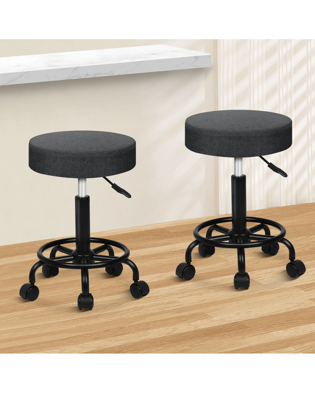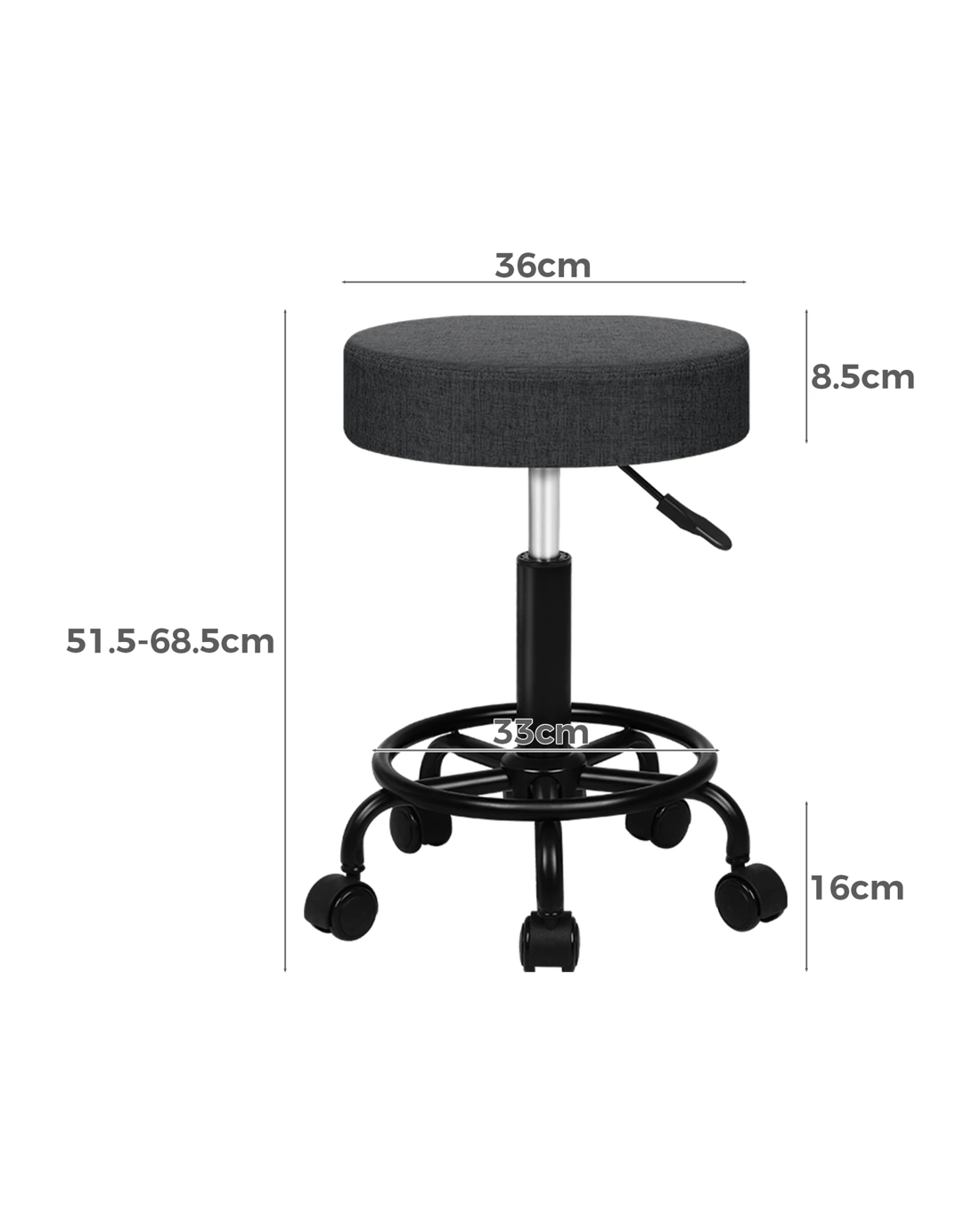 Alfordson 2x Salon Stool Round Swivel Barber Hair Dress Chair Fabric - Grey