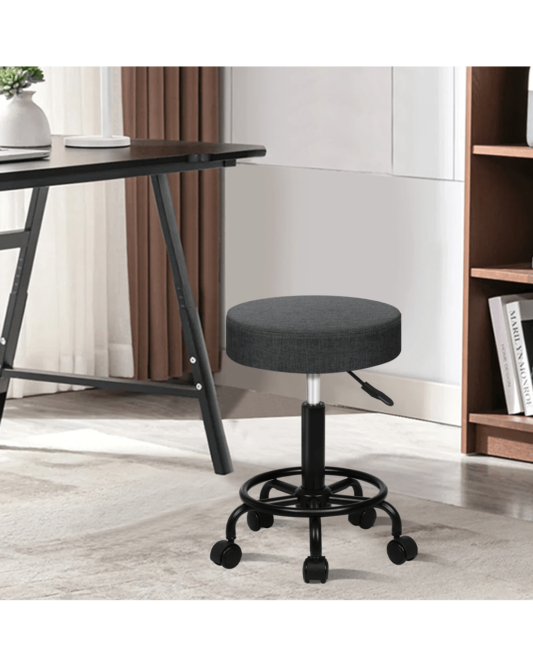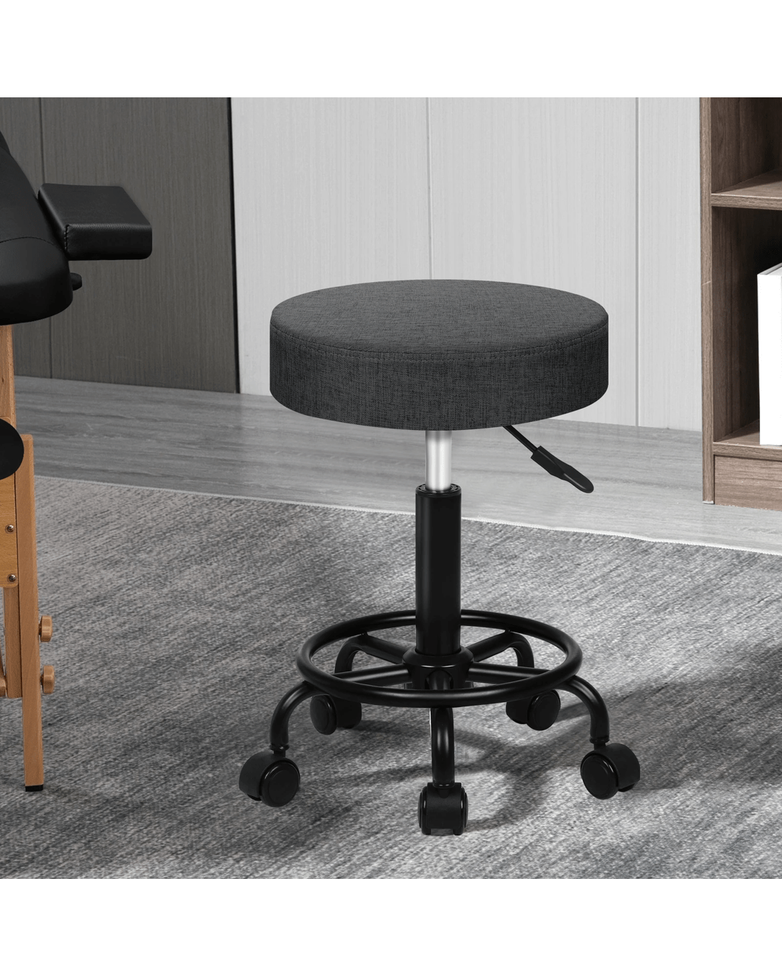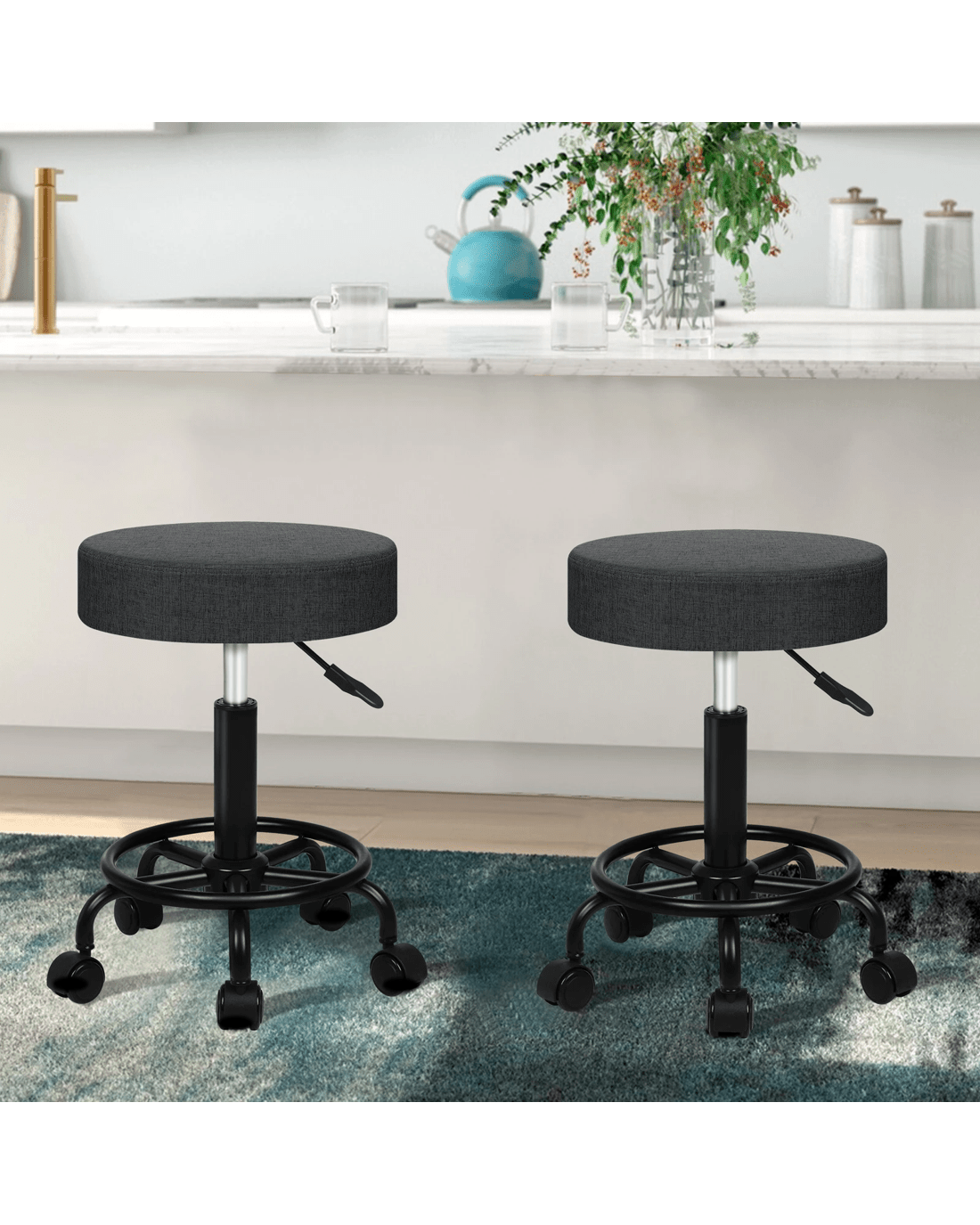 Alfordson 2x Salon Stool Round Swivel Barber Hair Dress Chair Fabric - Grey