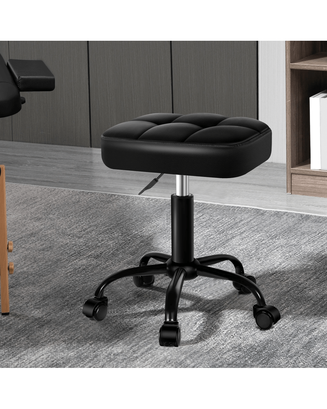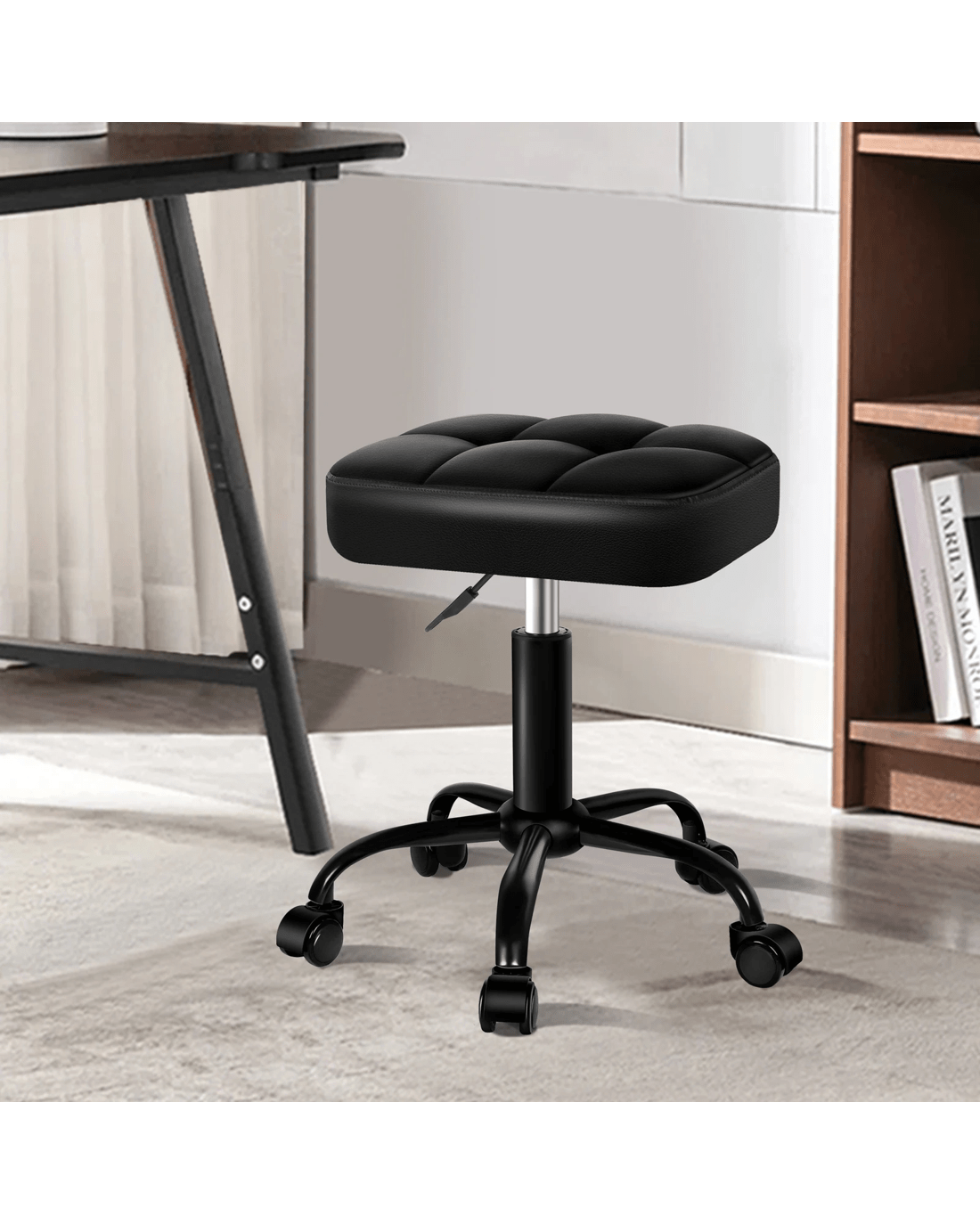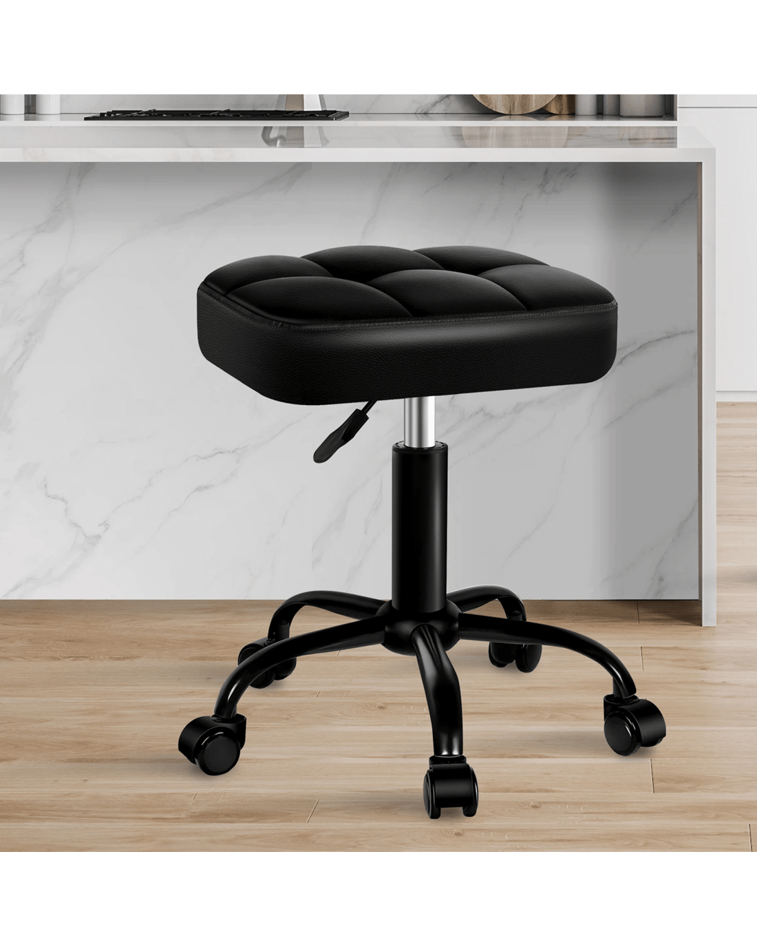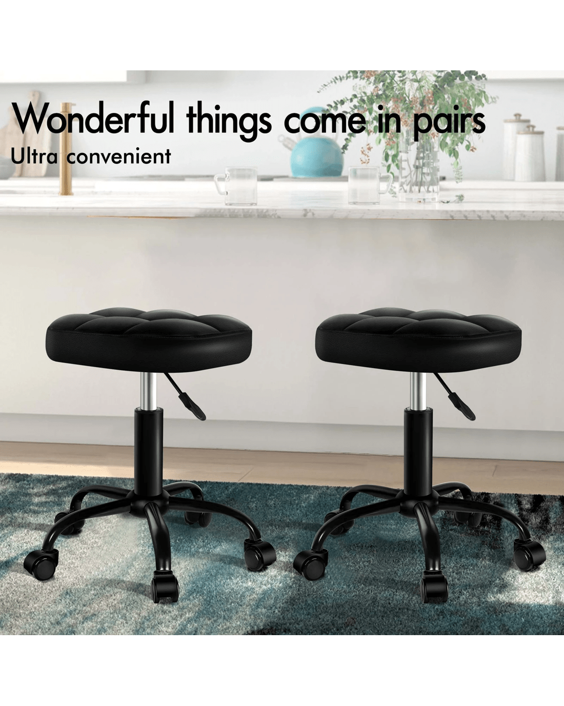 Alfordson 2x Salon Stool Square Swivel Barber Hair Chair - All Black