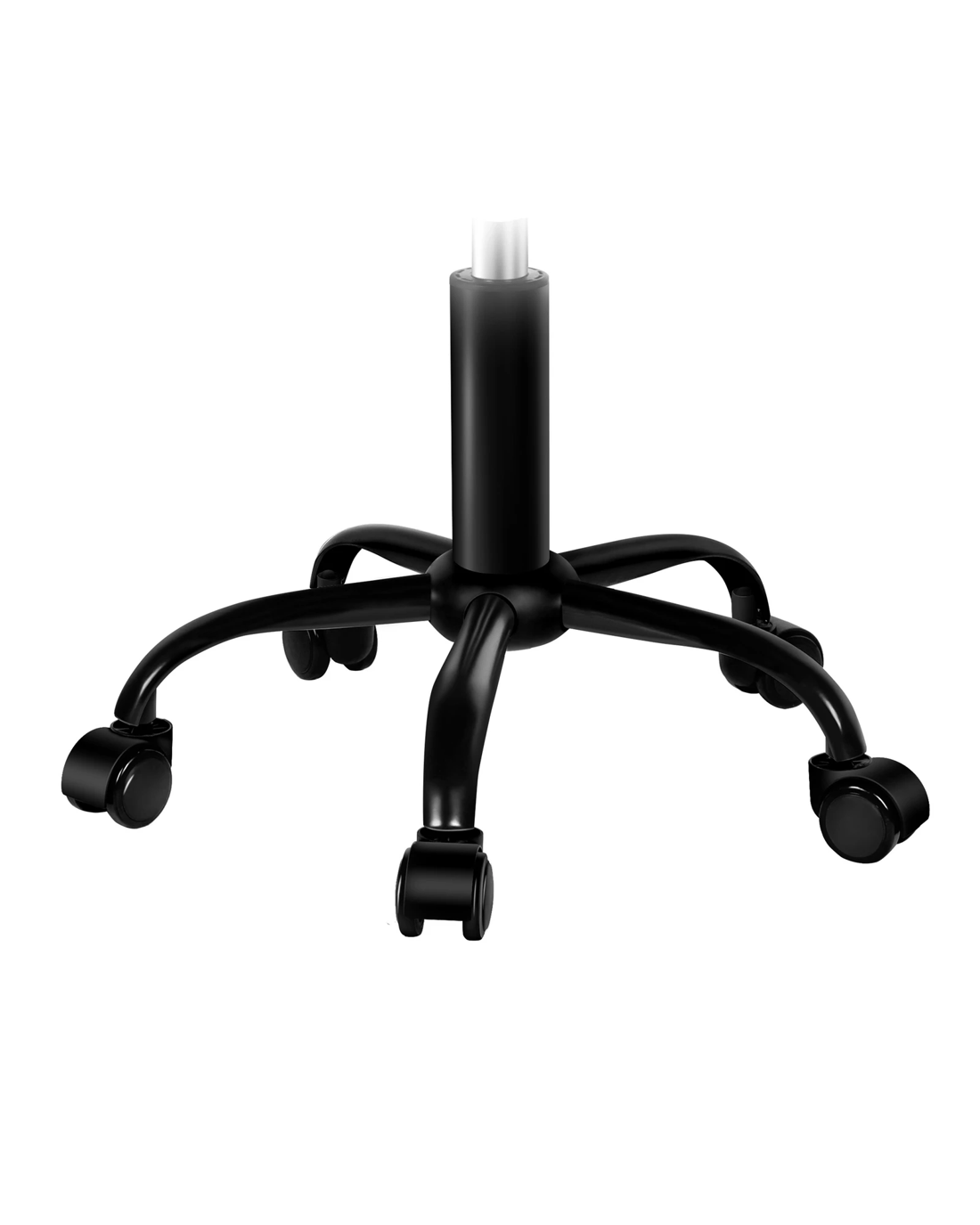 Our Alfordson salon stool is designed for extra comfort and convenient use. Its metal base is finished in a chrome hue for a metallic look and features five casters that help you move from task to task with ease, whether it's chatting with a coworker or jotting down notes on your desk.