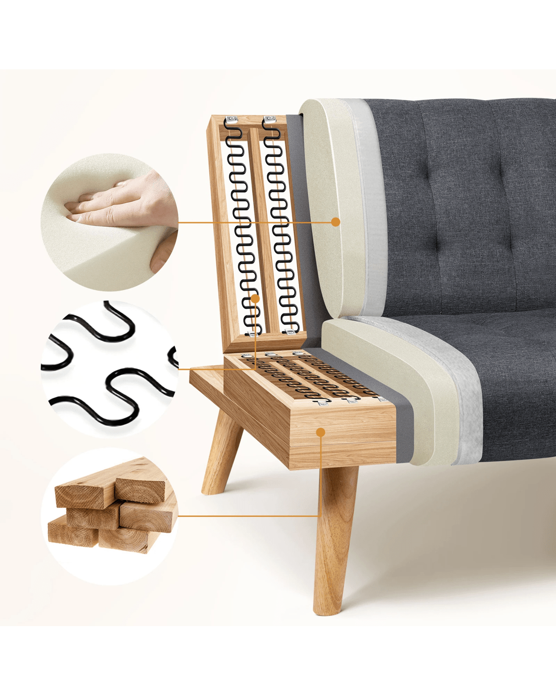 Meticulous craftsmanship - Upholstered in premium linen fabric, the seat and backrest are richly padded with high-resilience foam, providing a supportive and plush seating experience. Built from engineered wood frame and 4 sturdy wooden legs, the sofa bed not only balances durability and stylish for long-term use but also boasts a high capacity of up to 160kg for strong stability.