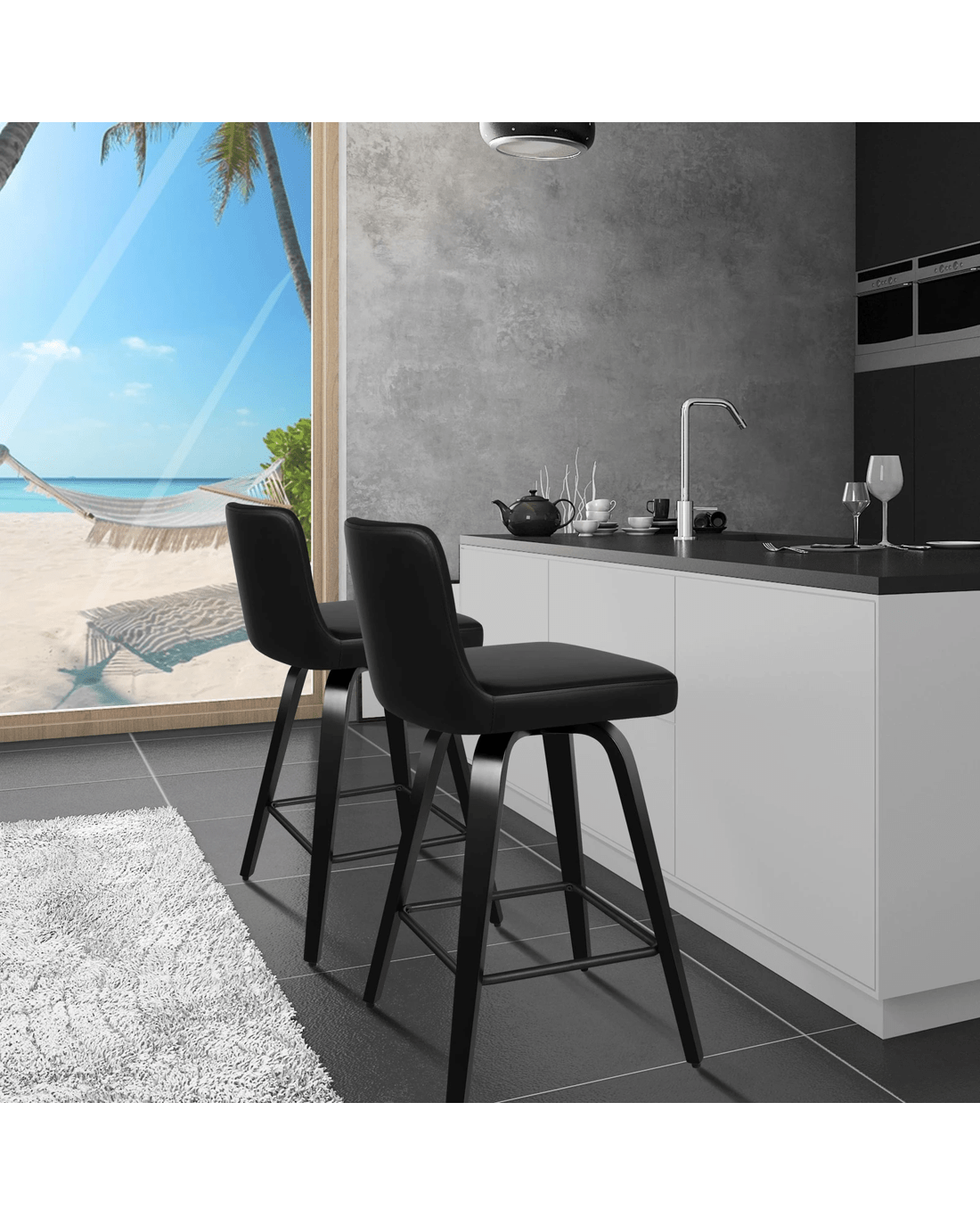 Sold by Aussie Union GroupAlfordson 2x Swivel Bar Stools Bailey Kitchen Wooden Dining Chair ALL - Black