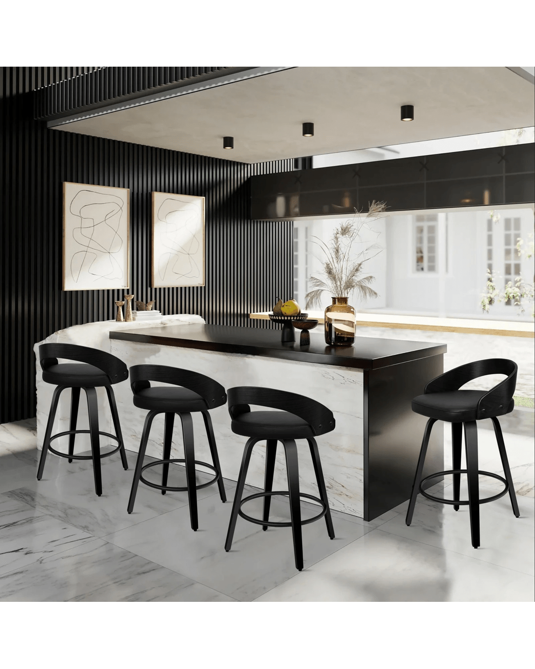 Not only with its iconic design and timeless appeal, it is also cozy and practical. Upholstered in premium PU leather, the seat is richly padded with high-resilience foam and comfortable. Thanks to its high-density foam, they provide adequate support in the right places for a delightful sitting experience. Together with its heavy duty and swivel mechanism, this bar stool can be rotated all around for easy facing in any direction, which makes your conversations smoothie.