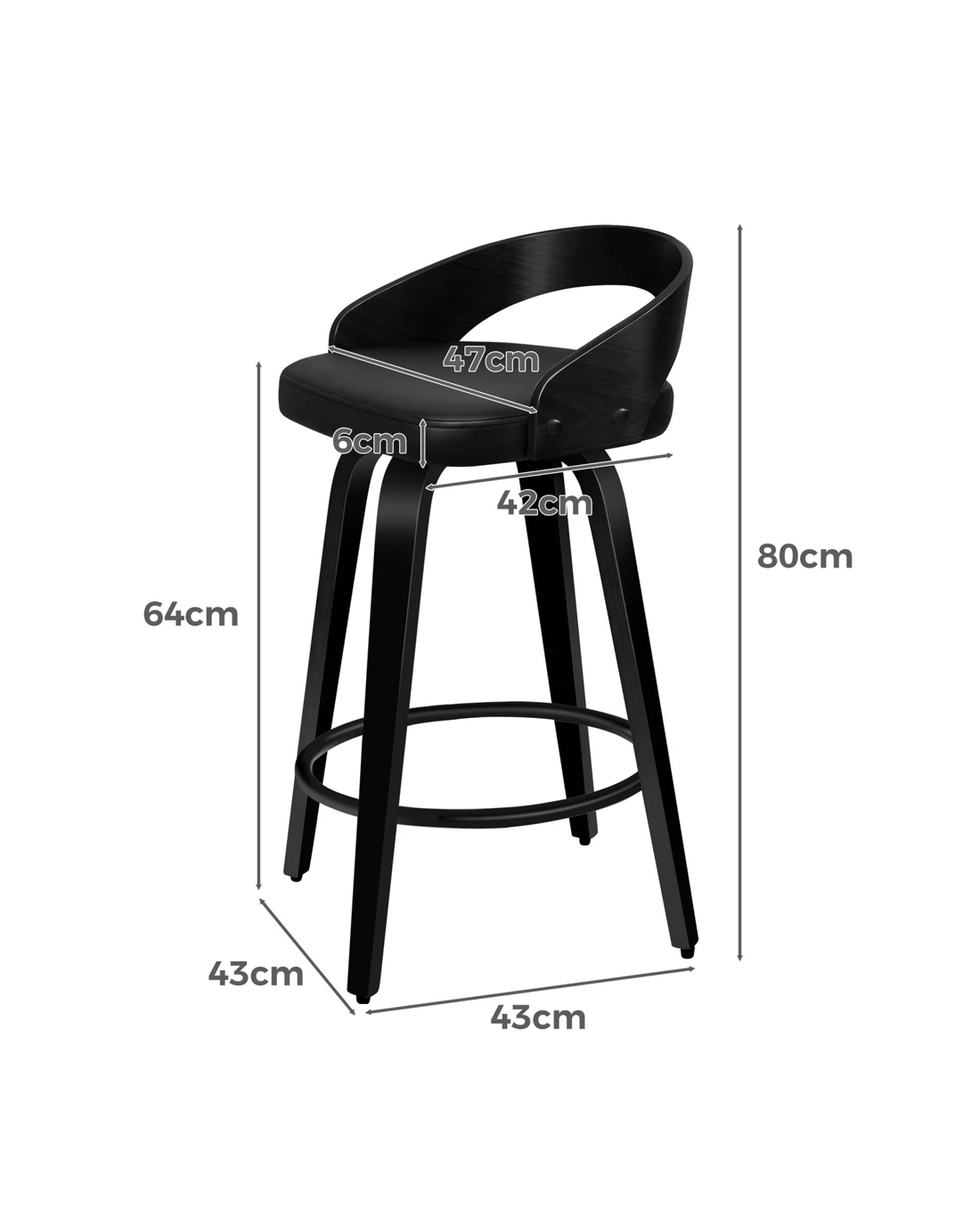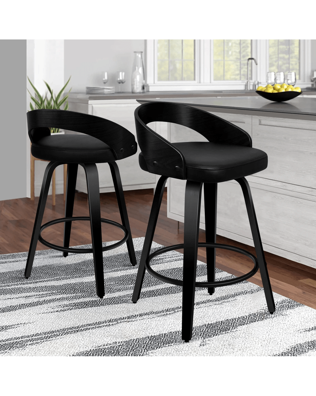 Sold by Aussie Union GroupAlfordson 2x Swivel Bar Stools Caden Kitchen Wooden Dining Chair - Black