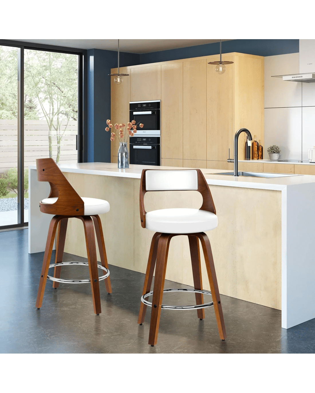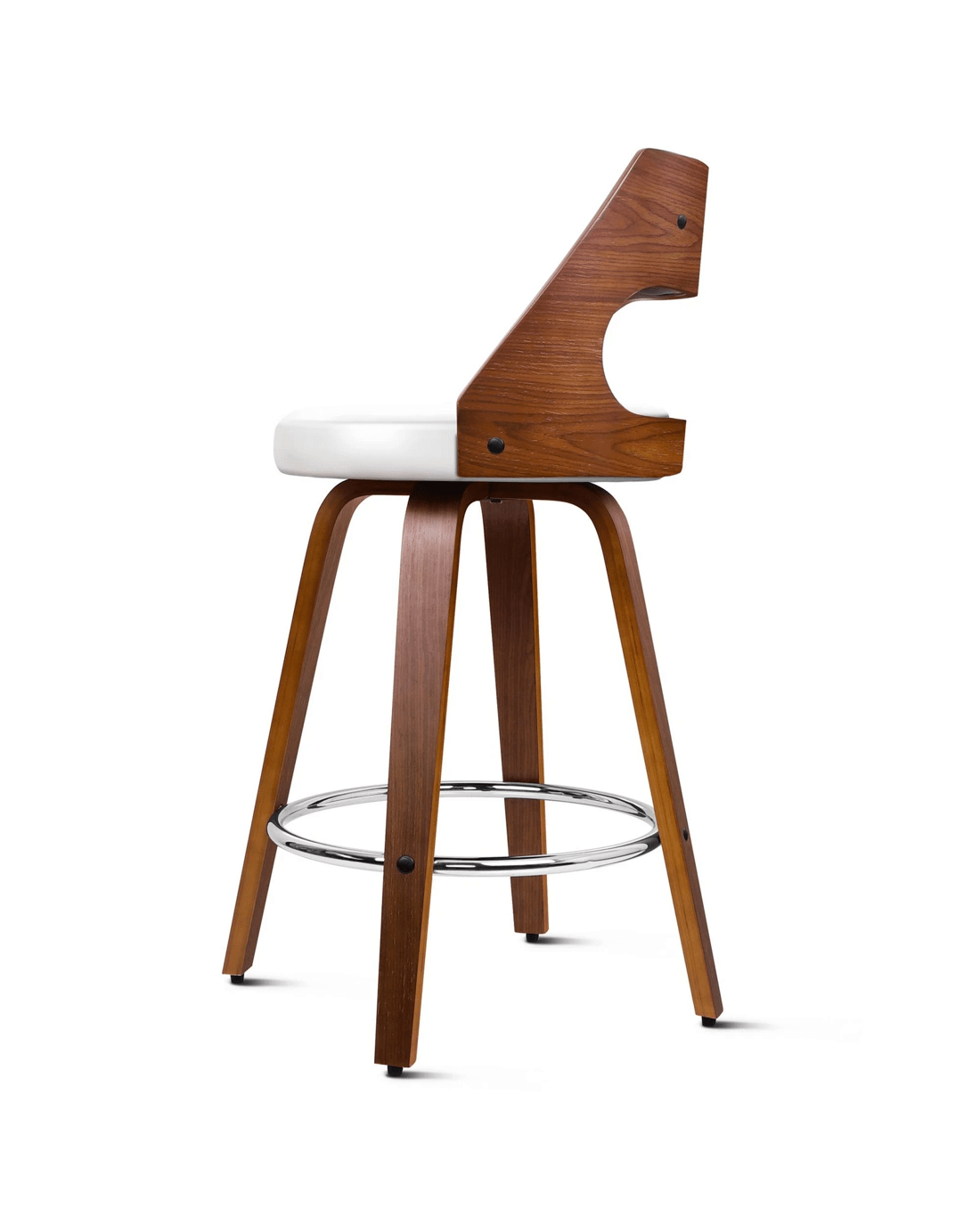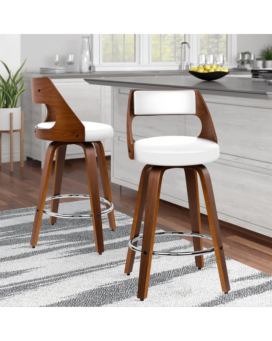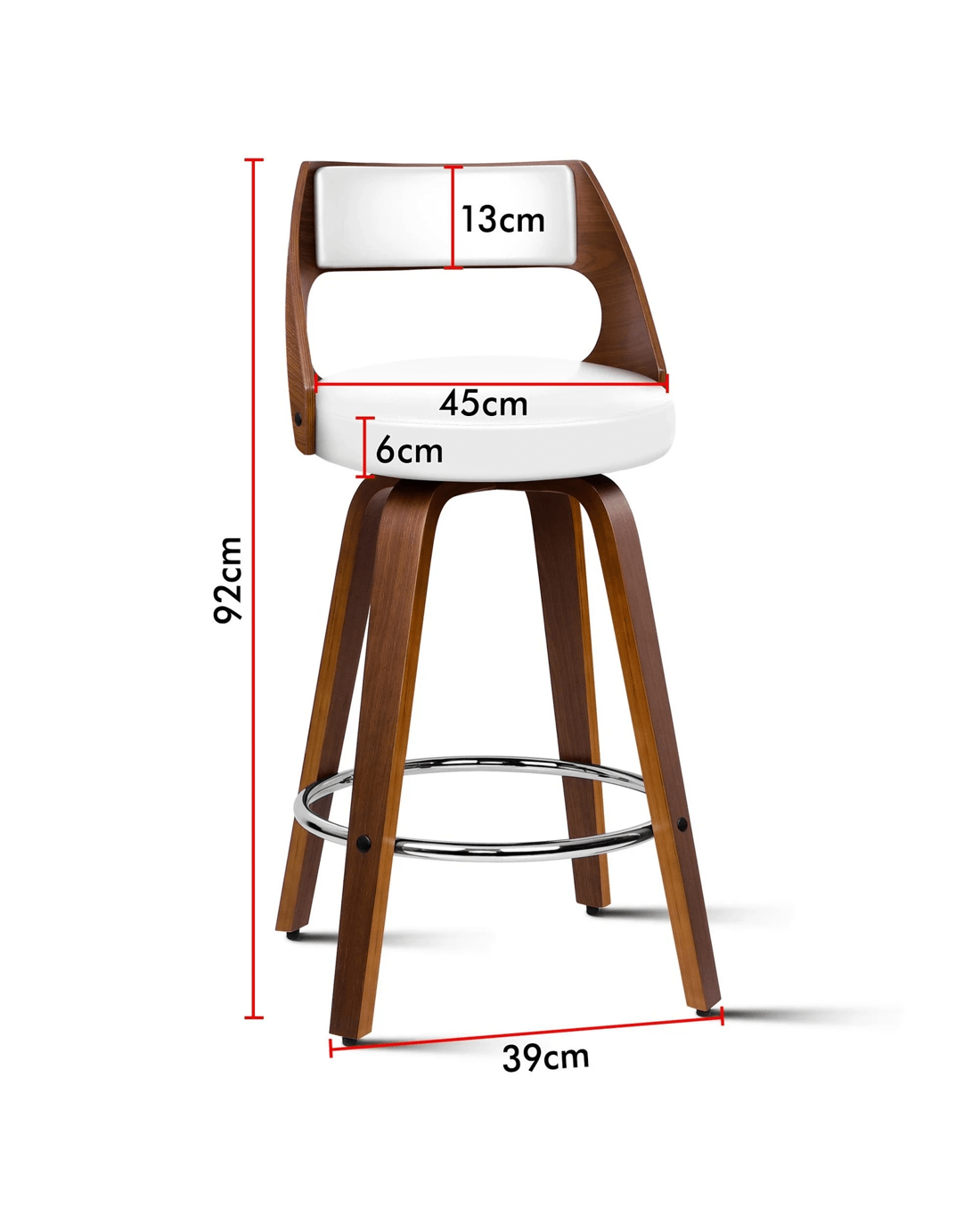 Upholstered in premium PU leather, the seat and backrest are richly padded with high-resilience foam and comfortable. Enhanced wooden base, made of solid plywood, ensures ultra stability with long-lasting durability. Your floor is also aptly protected with anti-slip plastic floor protectors attached to each leg of the bar stool.