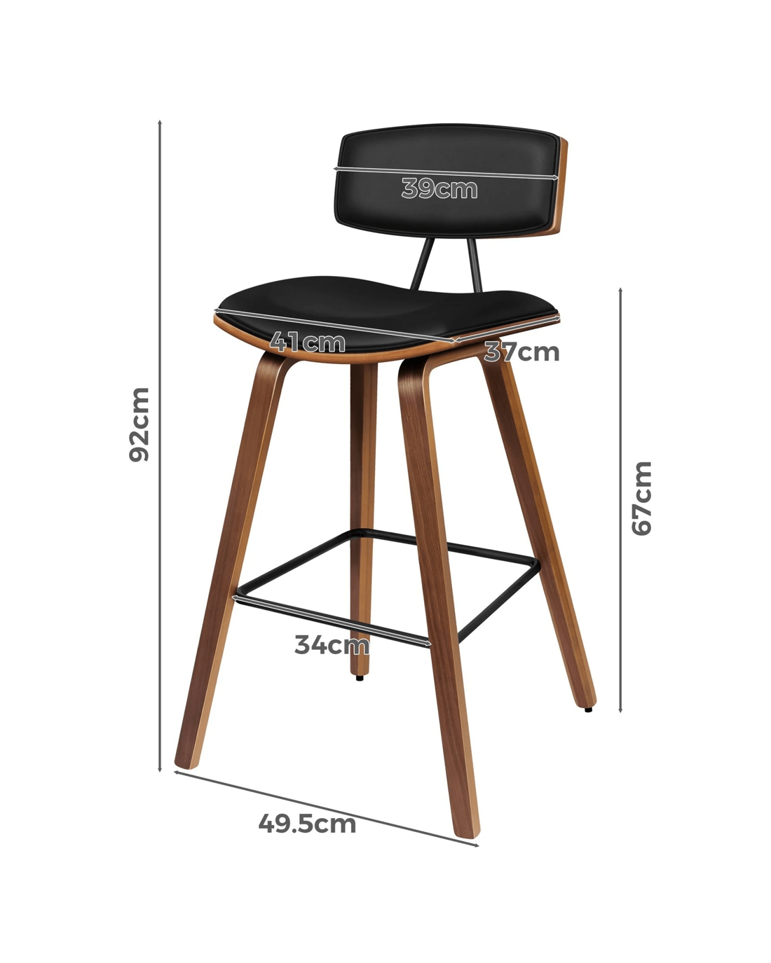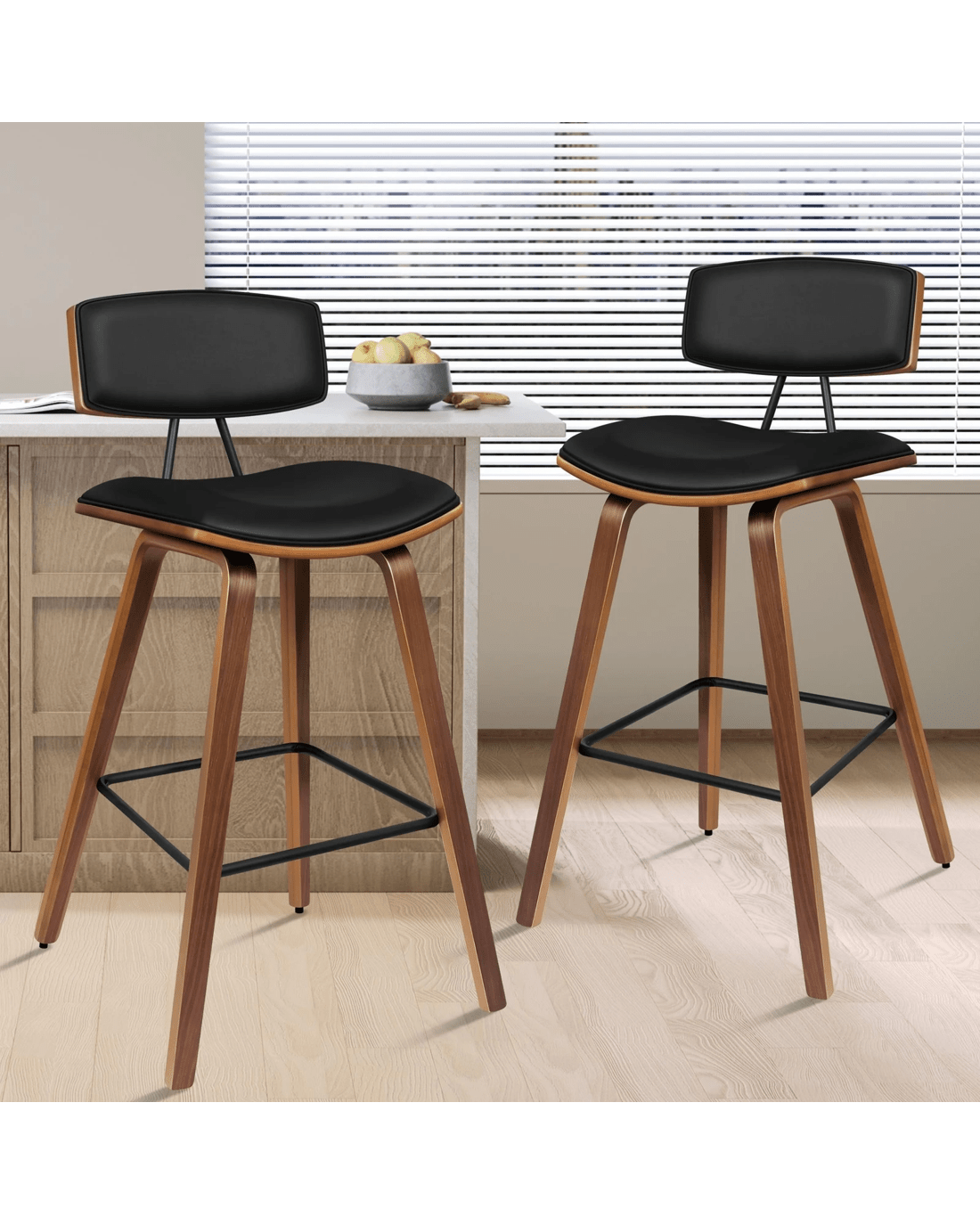 Upholstered in premium PU leather, the seat and backrest are richly padded with high-resilience foam and comfortable. Enhanced wooden base, made of solid plywood, ensures ultra stability with long-lasting durability. Your floor is also aptly protected with anti-slip plastic floor protectors attached to each leg of the bar stool.