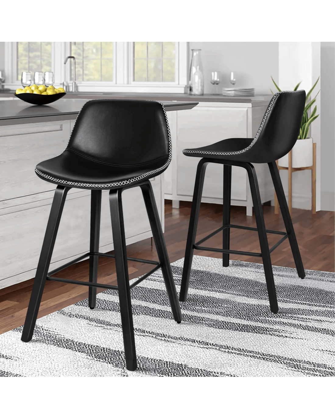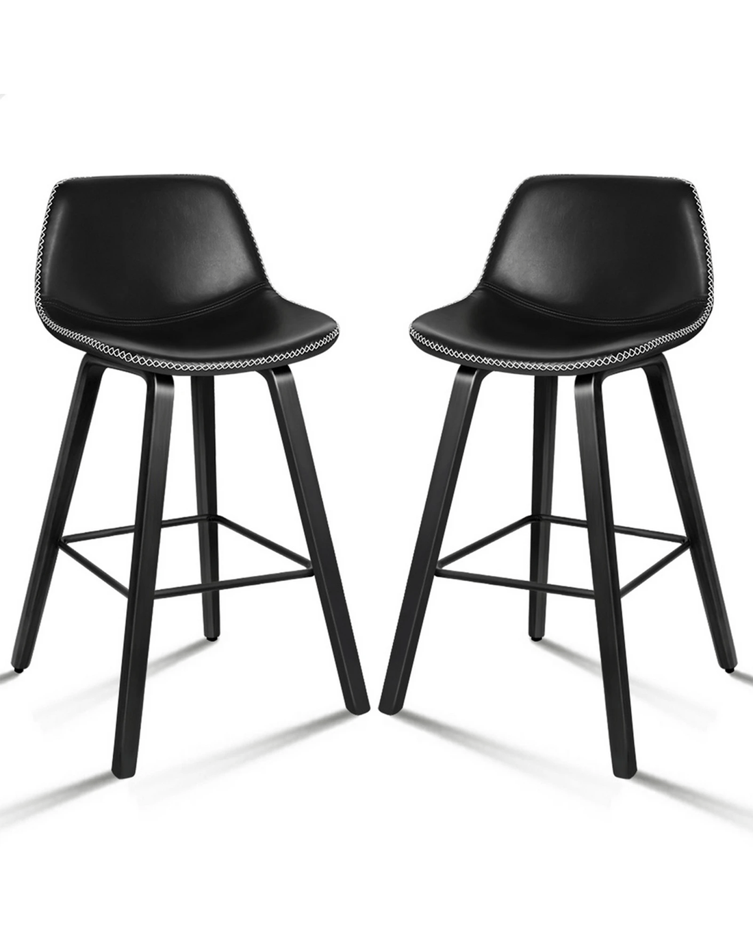 Sold by Aussie Union GroupAlfordson 2x Wooden Bar Stools Noah Kitchen Dining Chair Vintage Retro - Black
