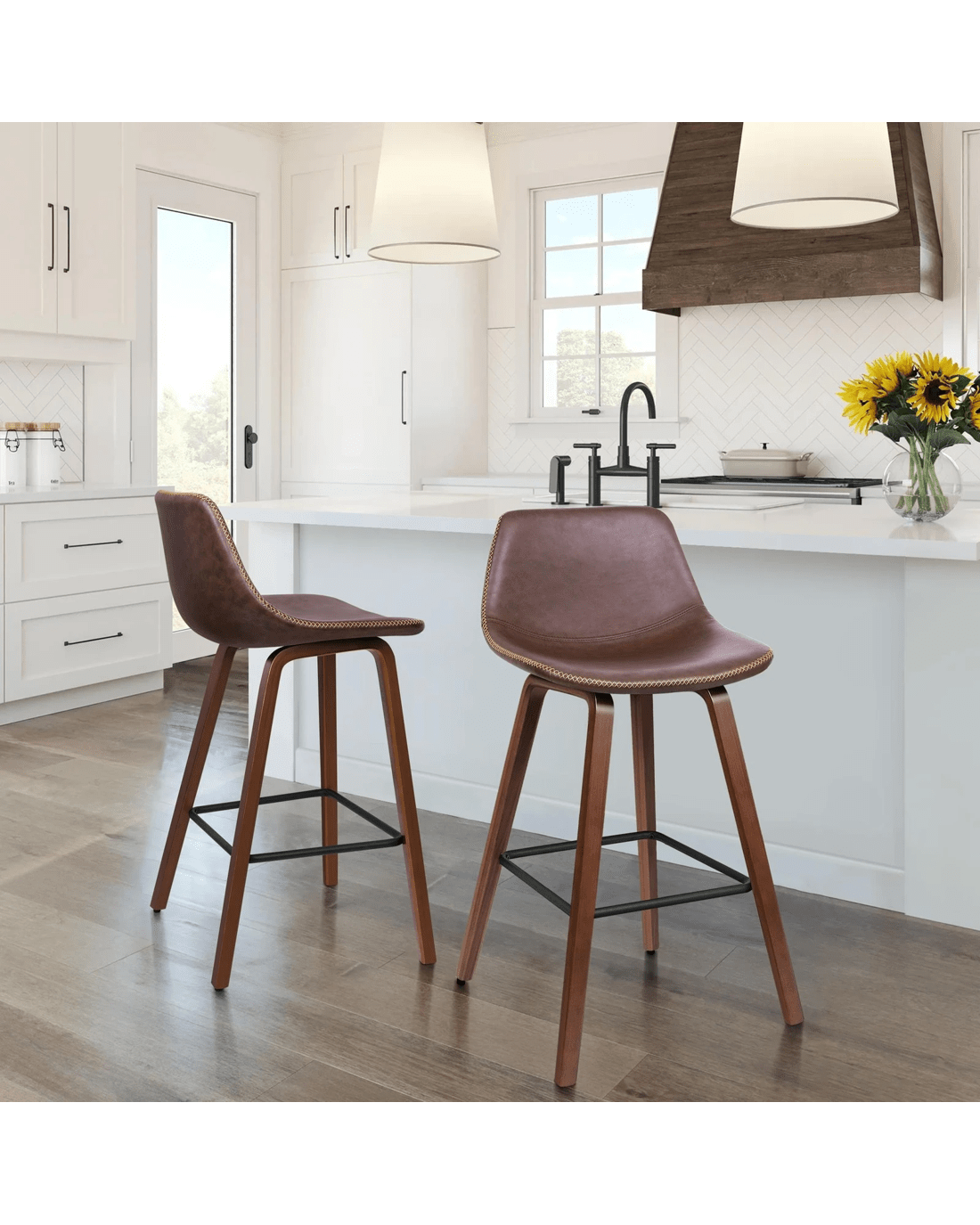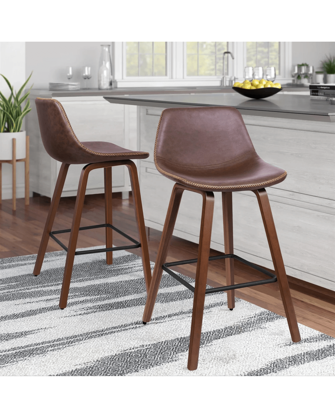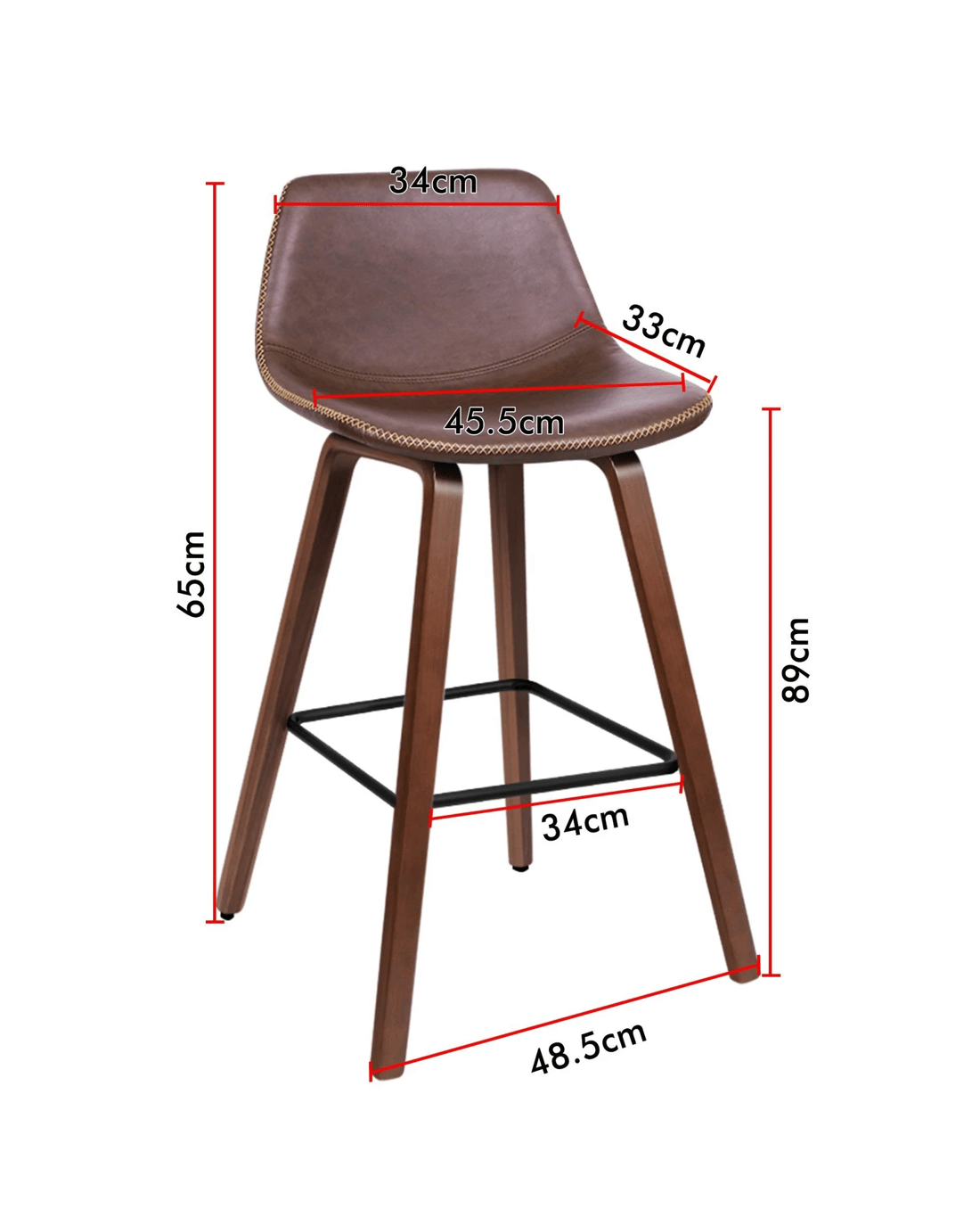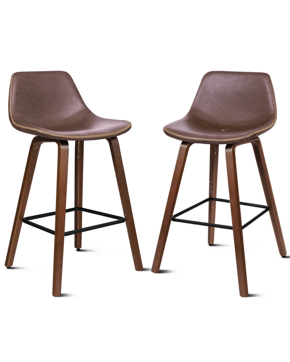 Alfordson 2x Wooden Bar Stools Noah Kitchen Dining Chair Vintage Retro - Brown