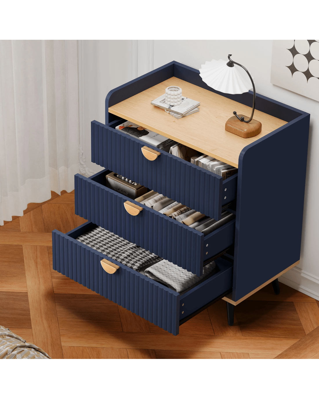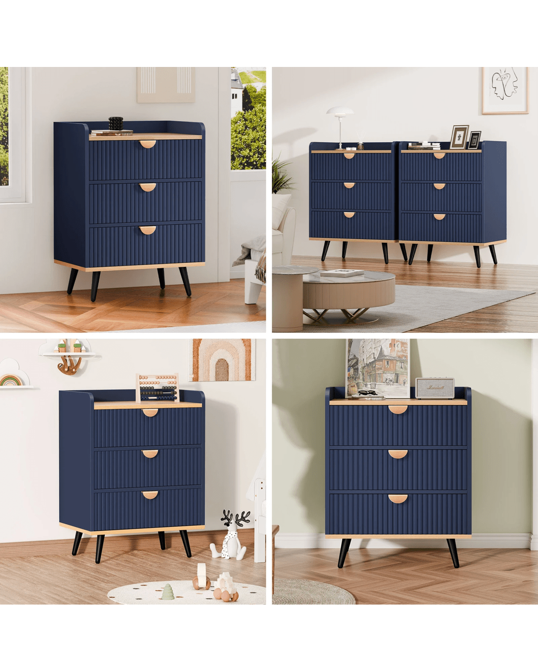 Alfordson 3 Chest of Drawers Modern Storage Cabinet Dresser Blue - Blue
