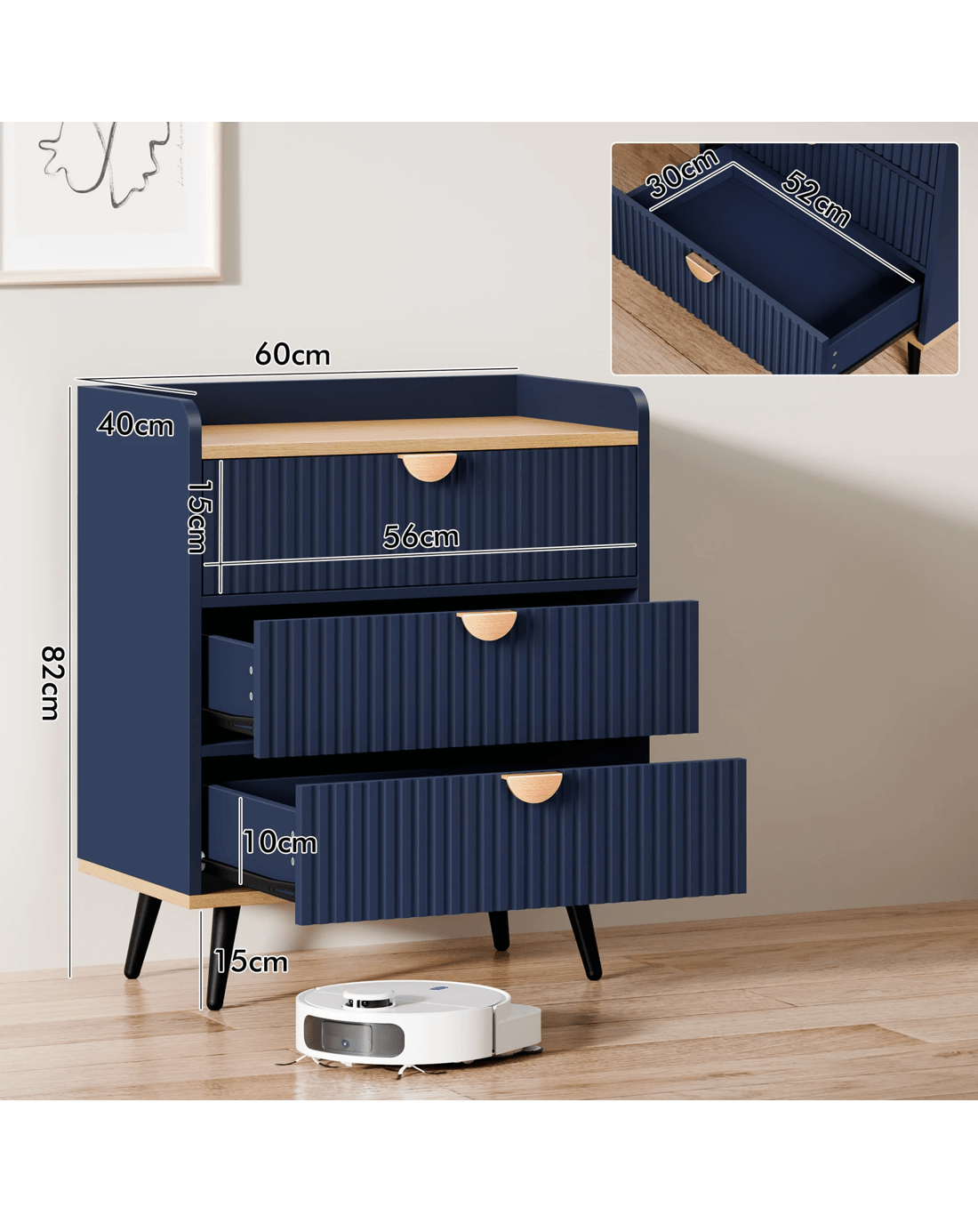 * 3 spacious drawers for clutter-free organization