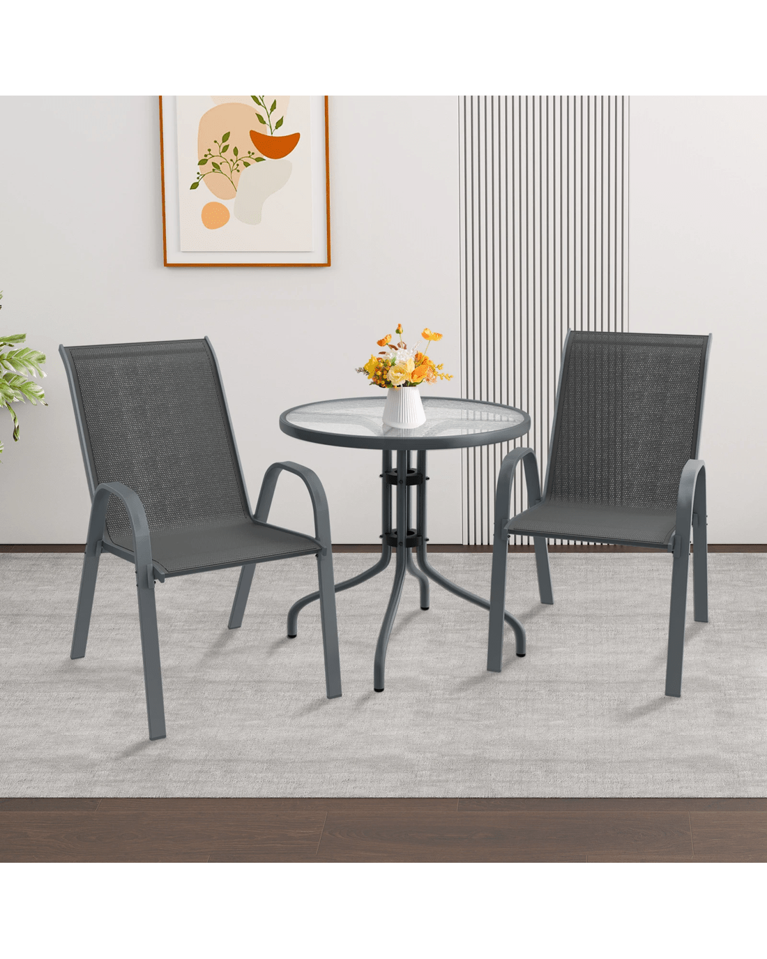 Stackable chair - The chairs feature a stackable design, offering convenient storage and efficient space-saving. The chair set, crafted for long-lasting delight, exudes a timeless elegance that promises years of enjoyment.