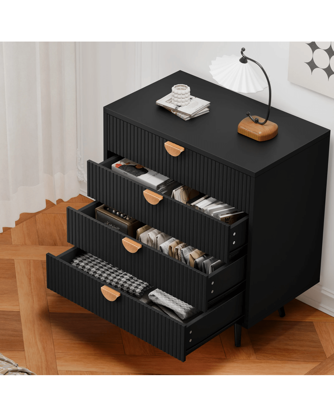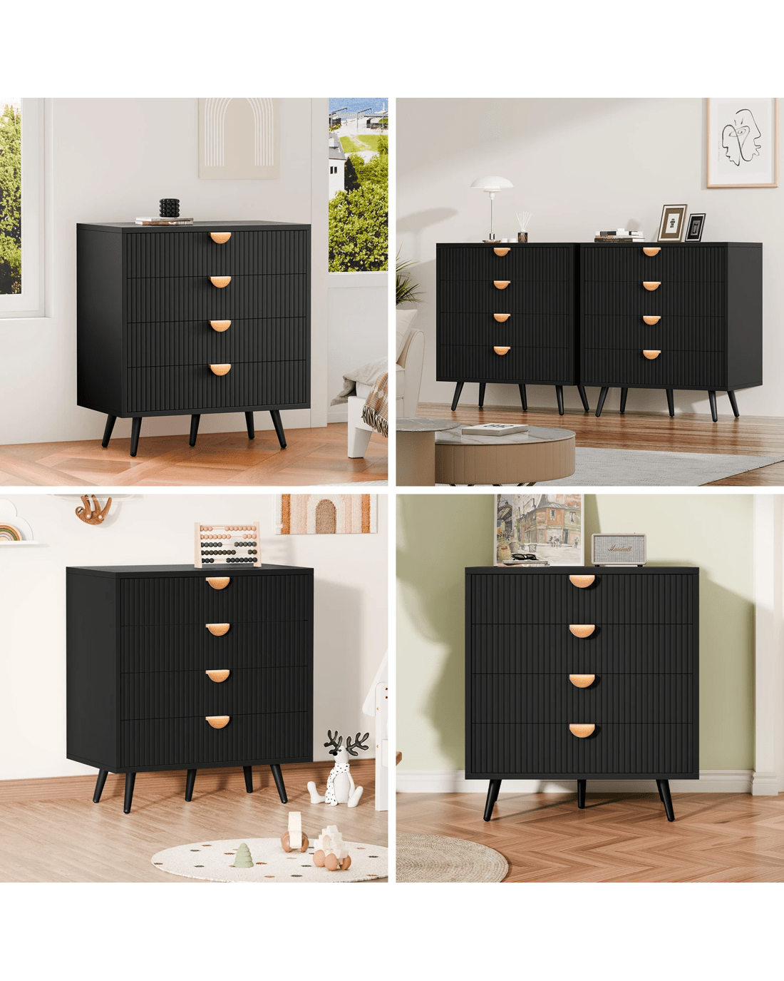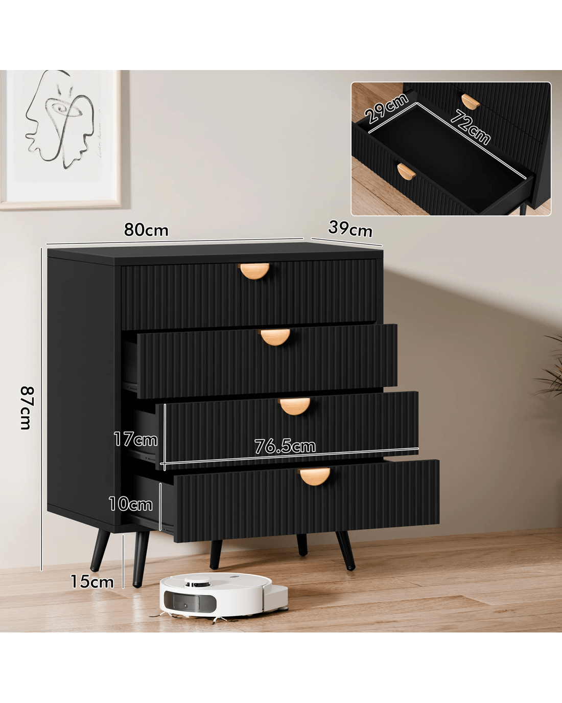 Alfordson 4 Chest of Drawers Modern Storage Cabinet Dresser Tallboy - Black