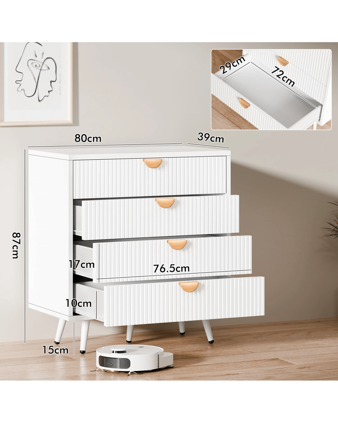 Alfordson 4 Chest of Drawers Modern Storage Cabinet Dresser Tallboy - White