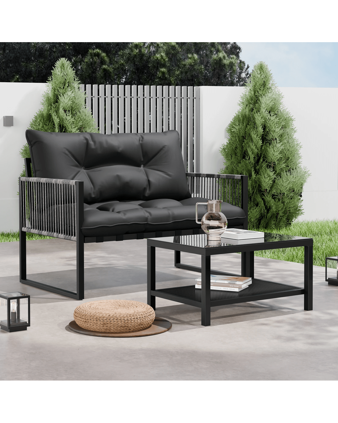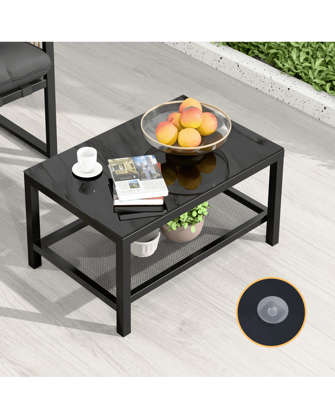Spacious storage coffee table - Our coffee table in the set features unique storage space. With double-deck and 22cm elevated storage space, it can be Use - store books, pillows, or other items you may want to keep within reach while relaxing outside. Features with tempered glass table top, it is durable and Safe -