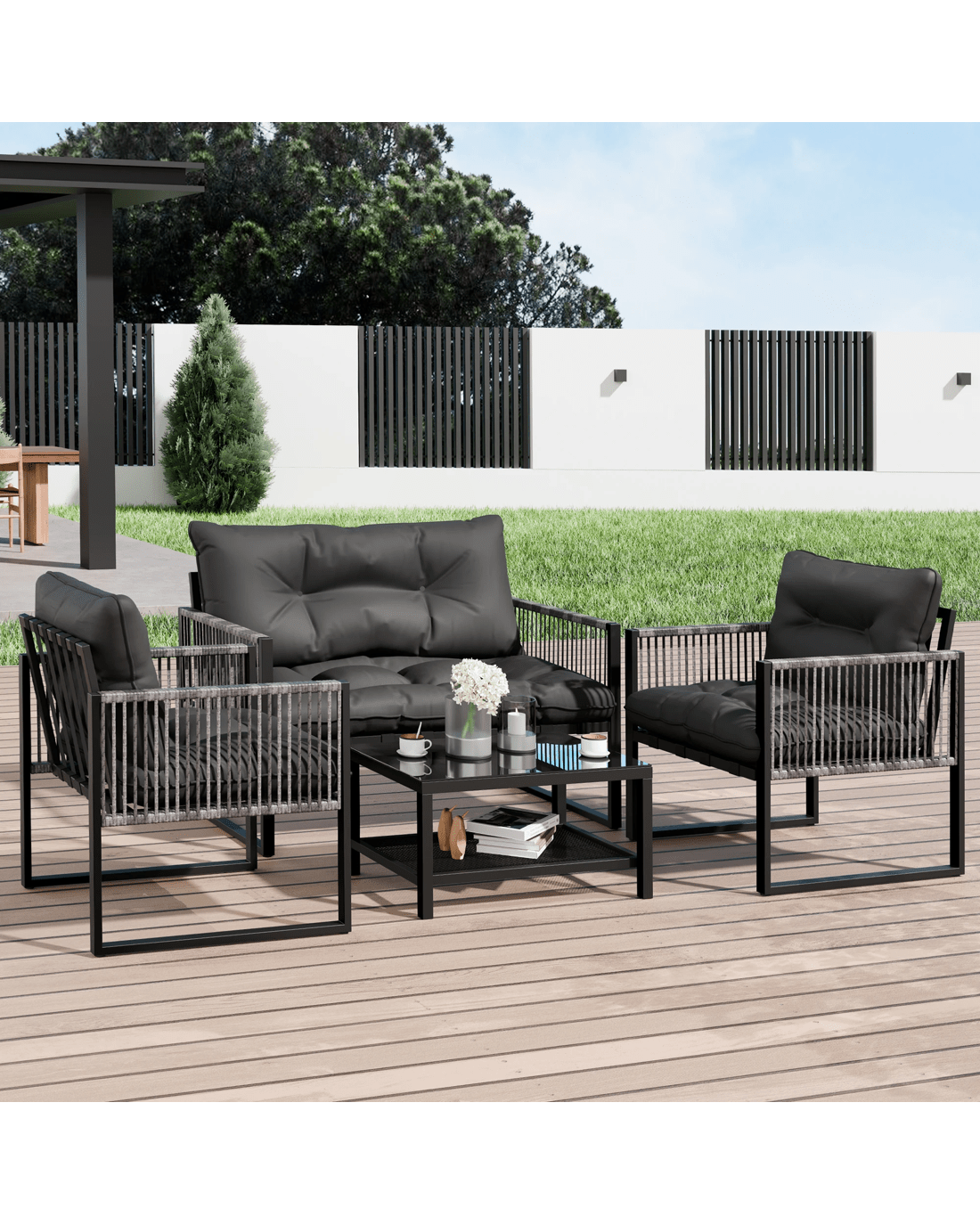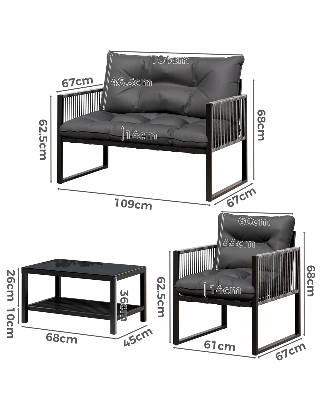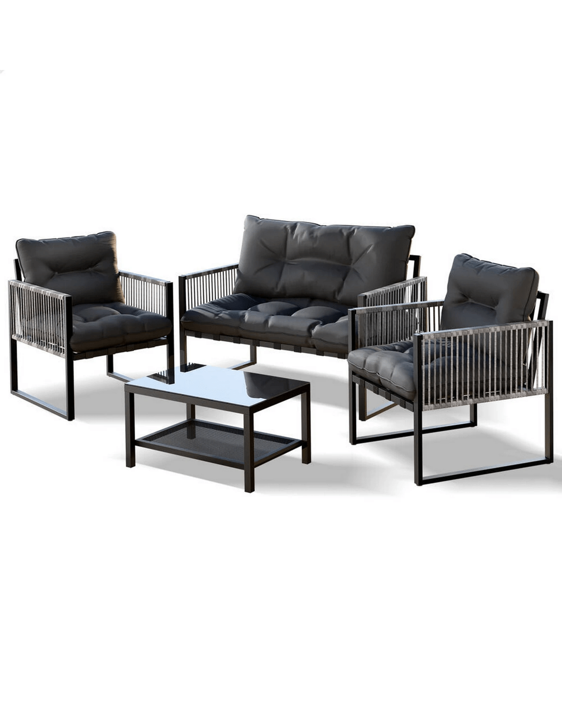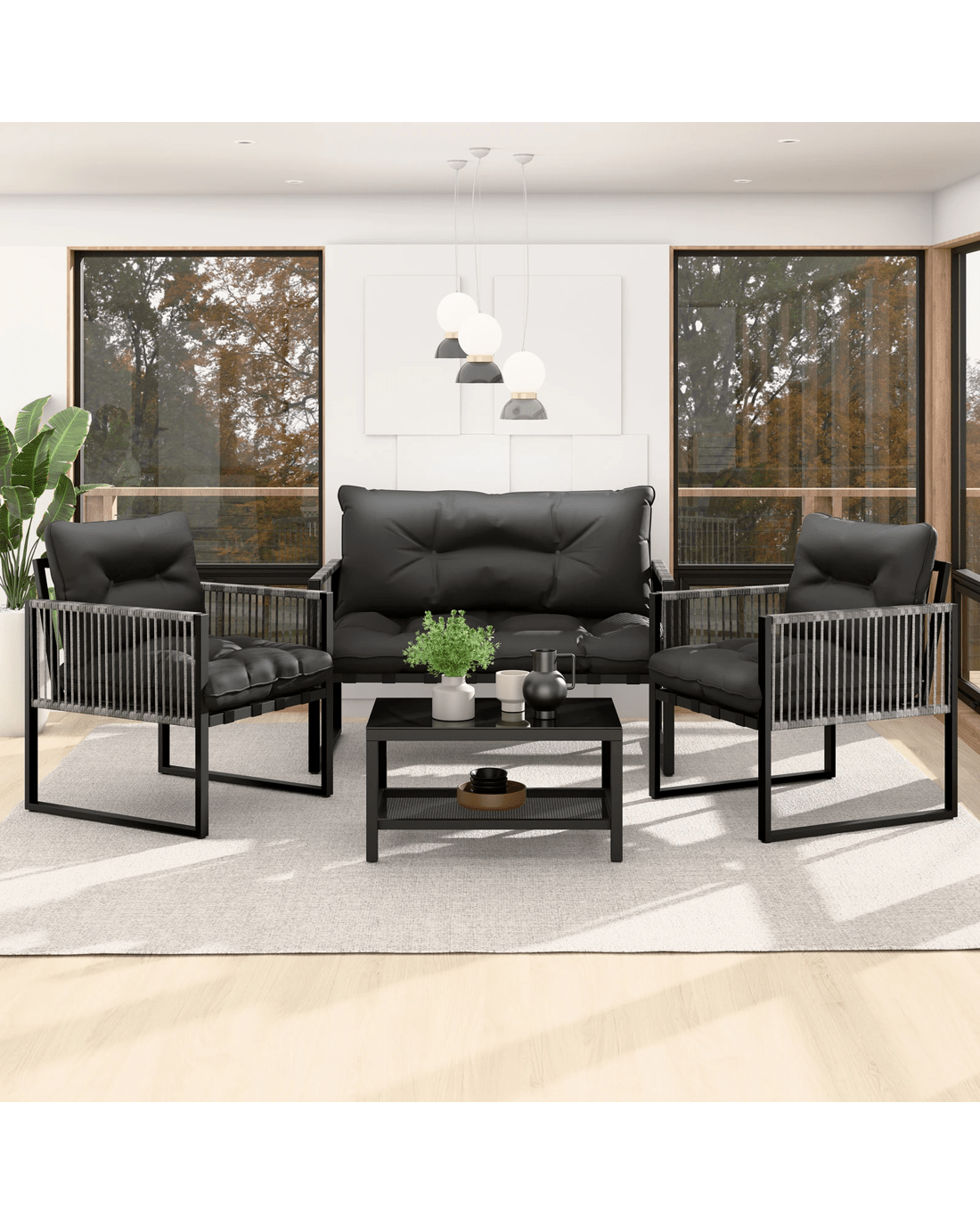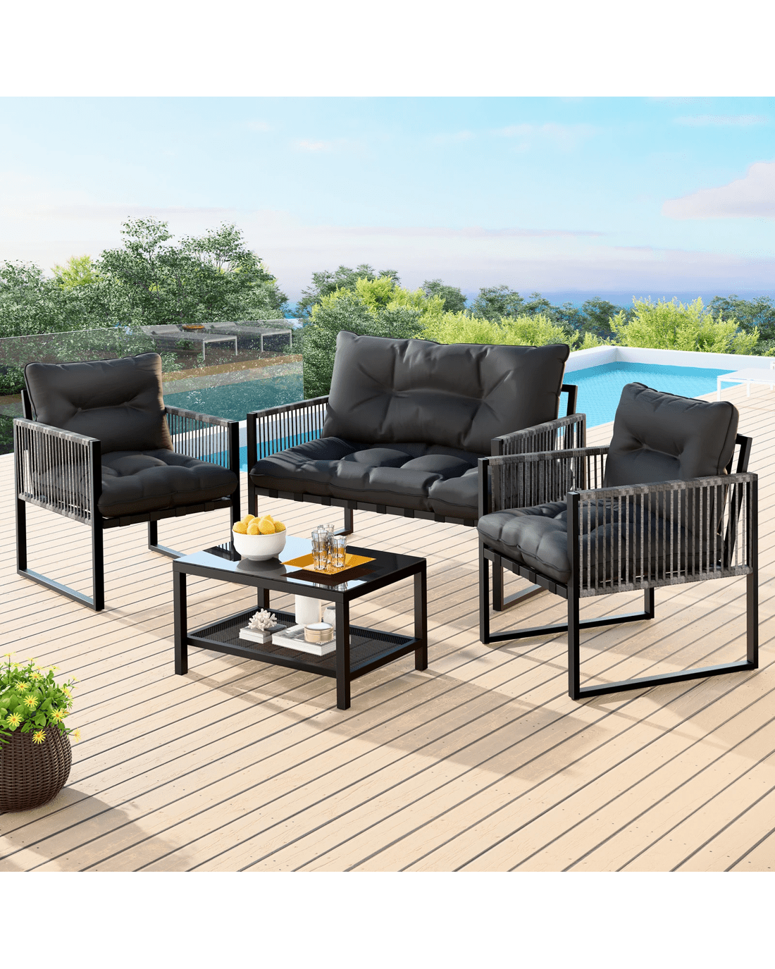 Alfordson 4PCS Outdoor Furniture Lounge Set Table and Chairs Garden - Black Grey