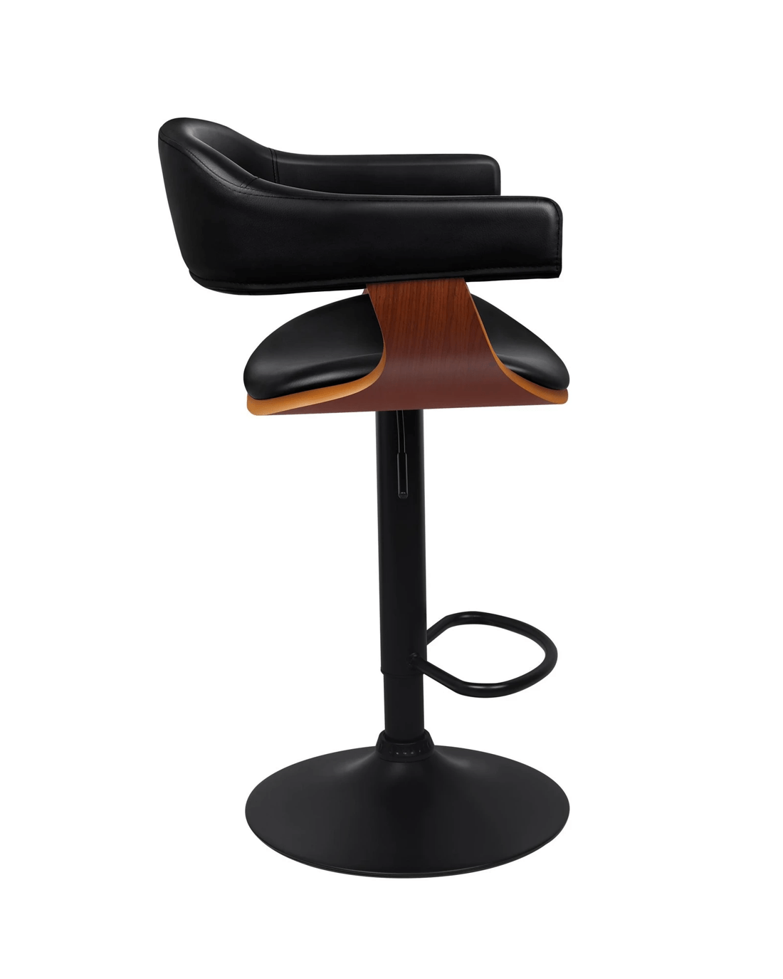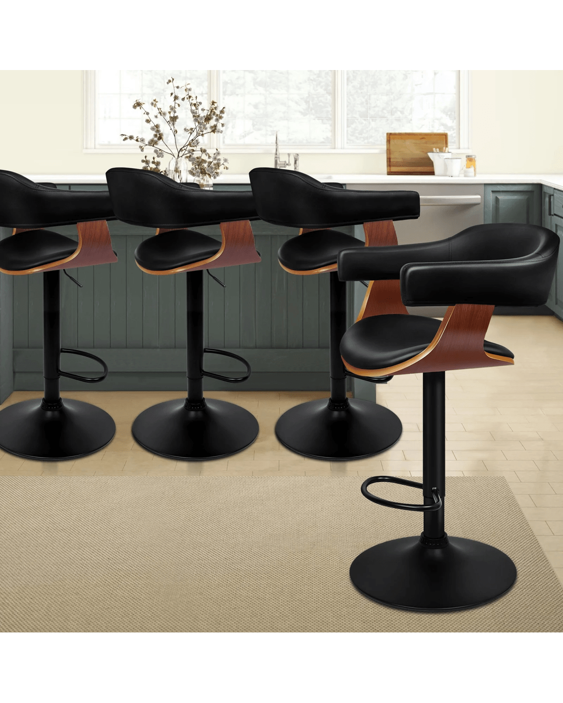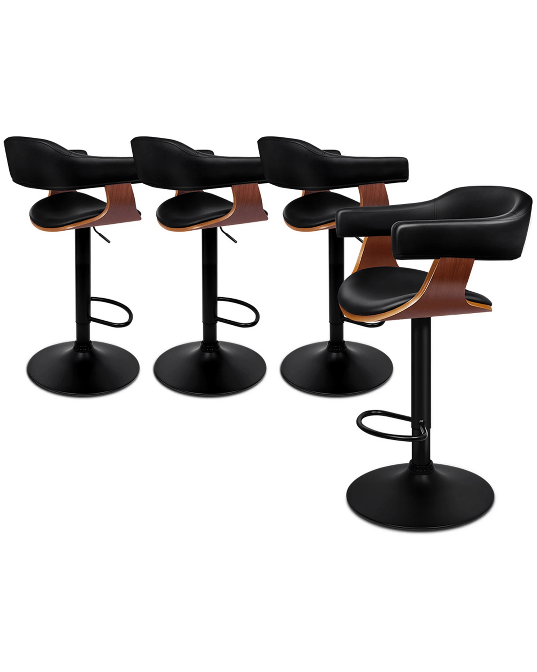 Alfordson 4x Bar Stool Joan Kitchen Swivel Chair Wooden Leather Gas Lift - Black