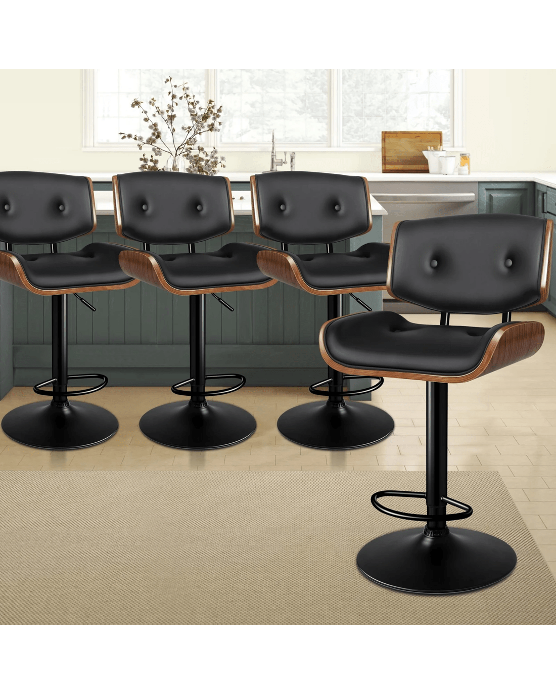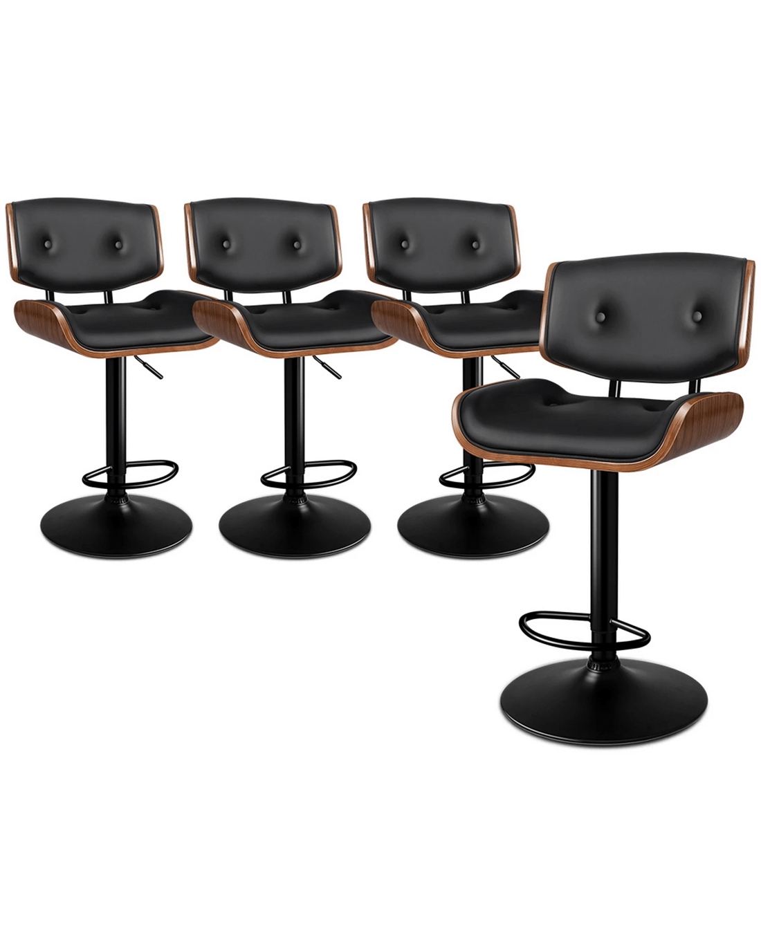 Alfordson 4x Bar Stool Kitchen Swivel Chair Wooden Leather Gas Lift - Black