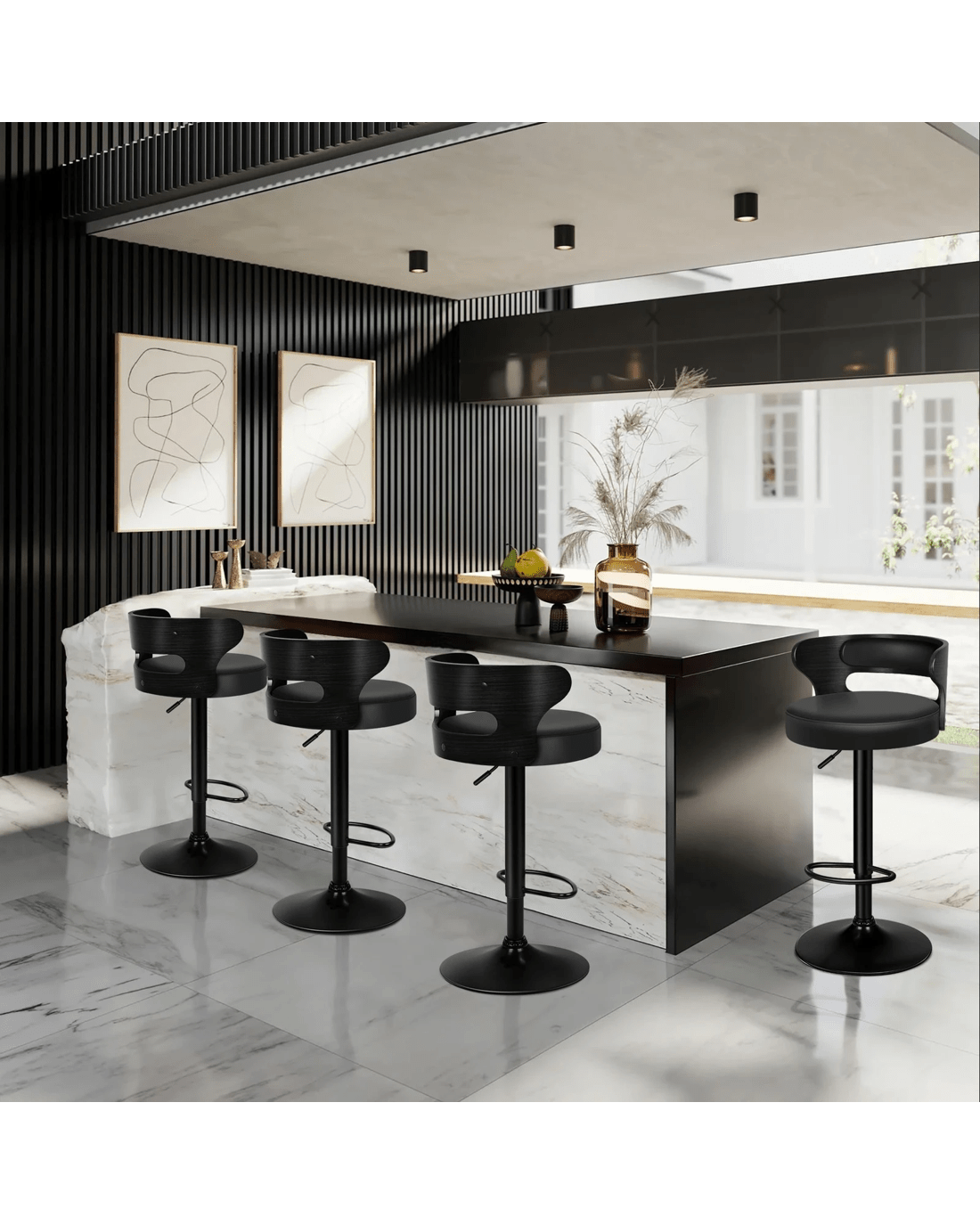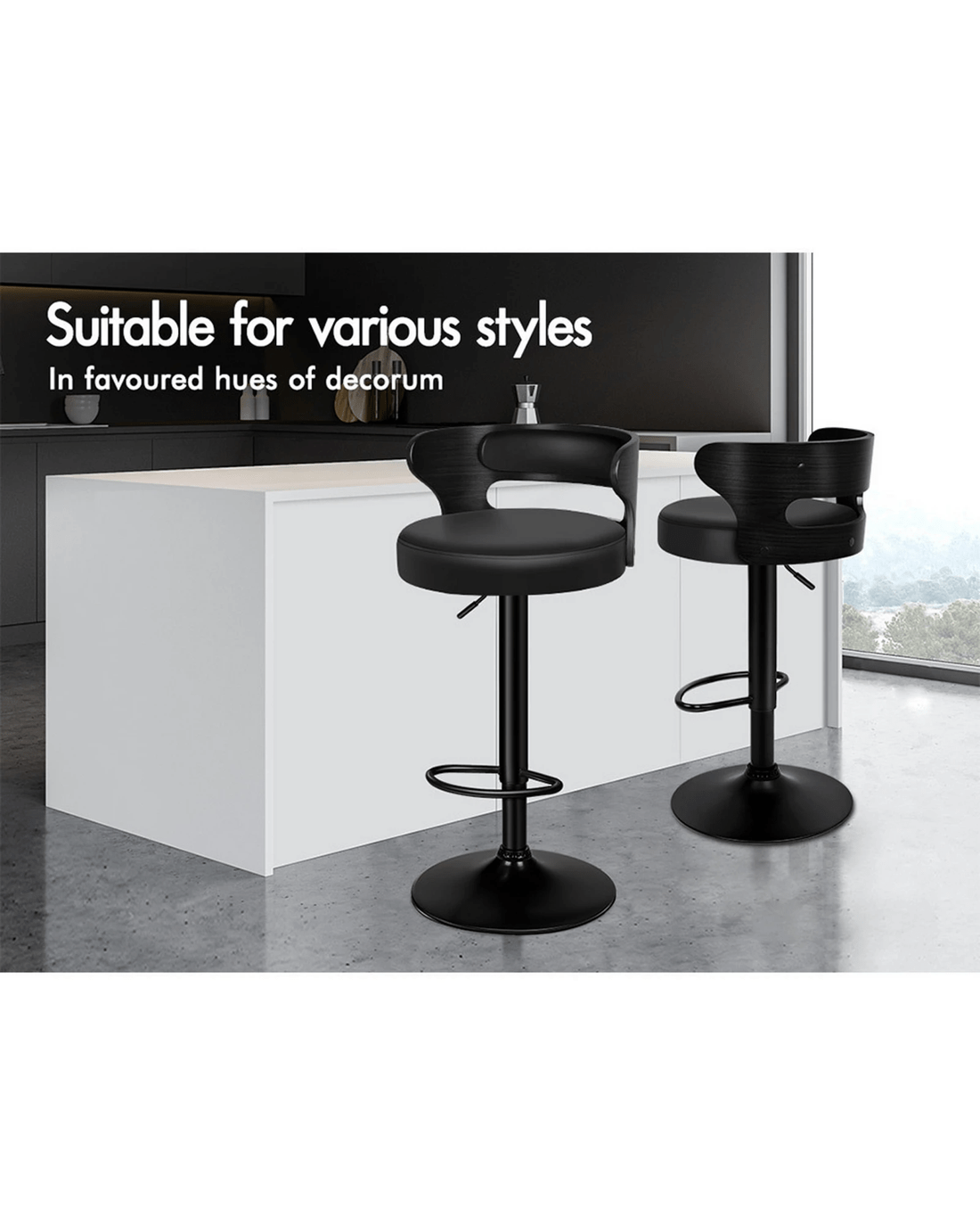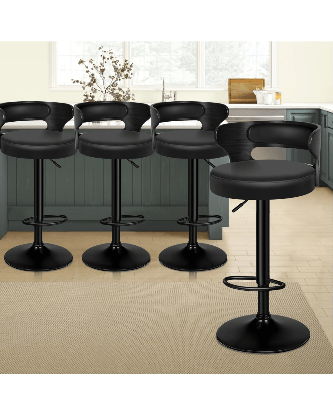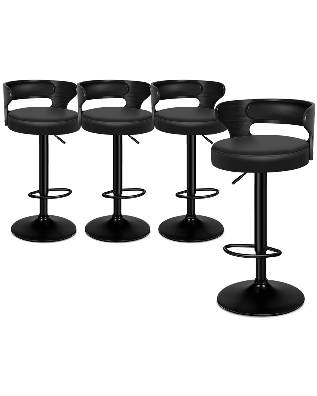 Sold by Aussie Union GroupAlfordson 4x Bar Stool Kitchen Swivel Chair Wooden Leather Ramiro - Black