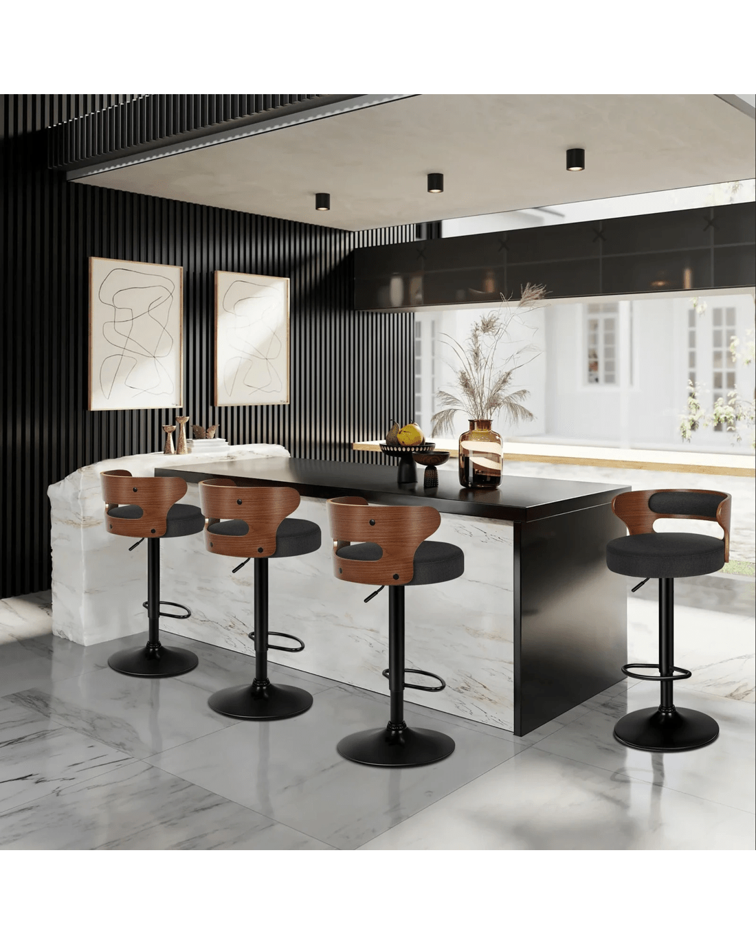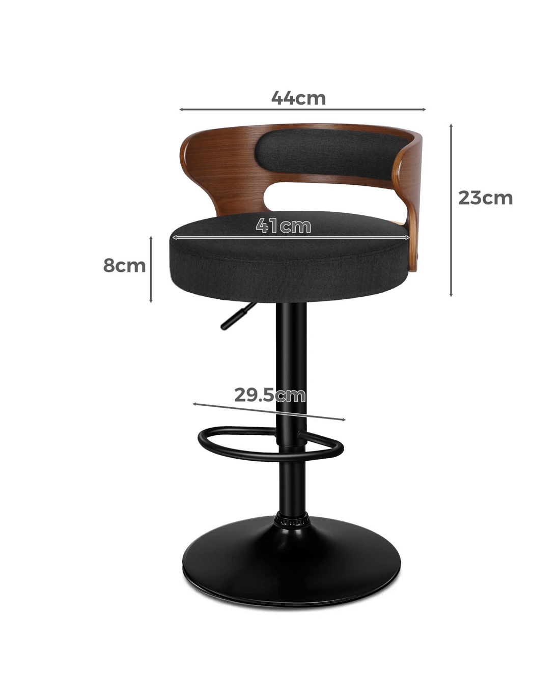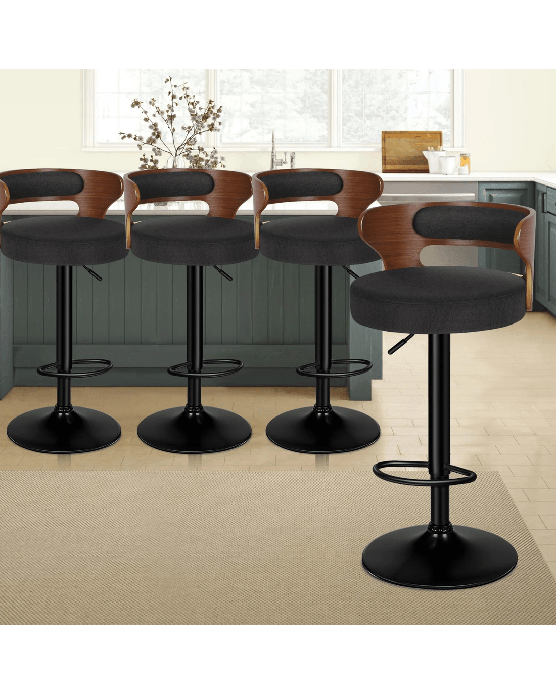 Alfordson 4x Bar Stool Kitchen Swivel Chair Wooden Linen Fabric Ramiro - Black