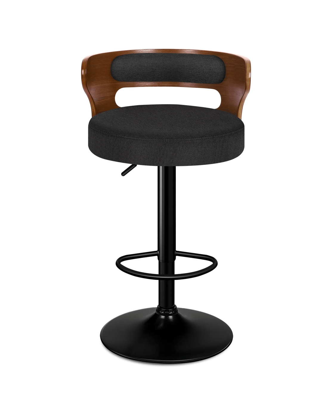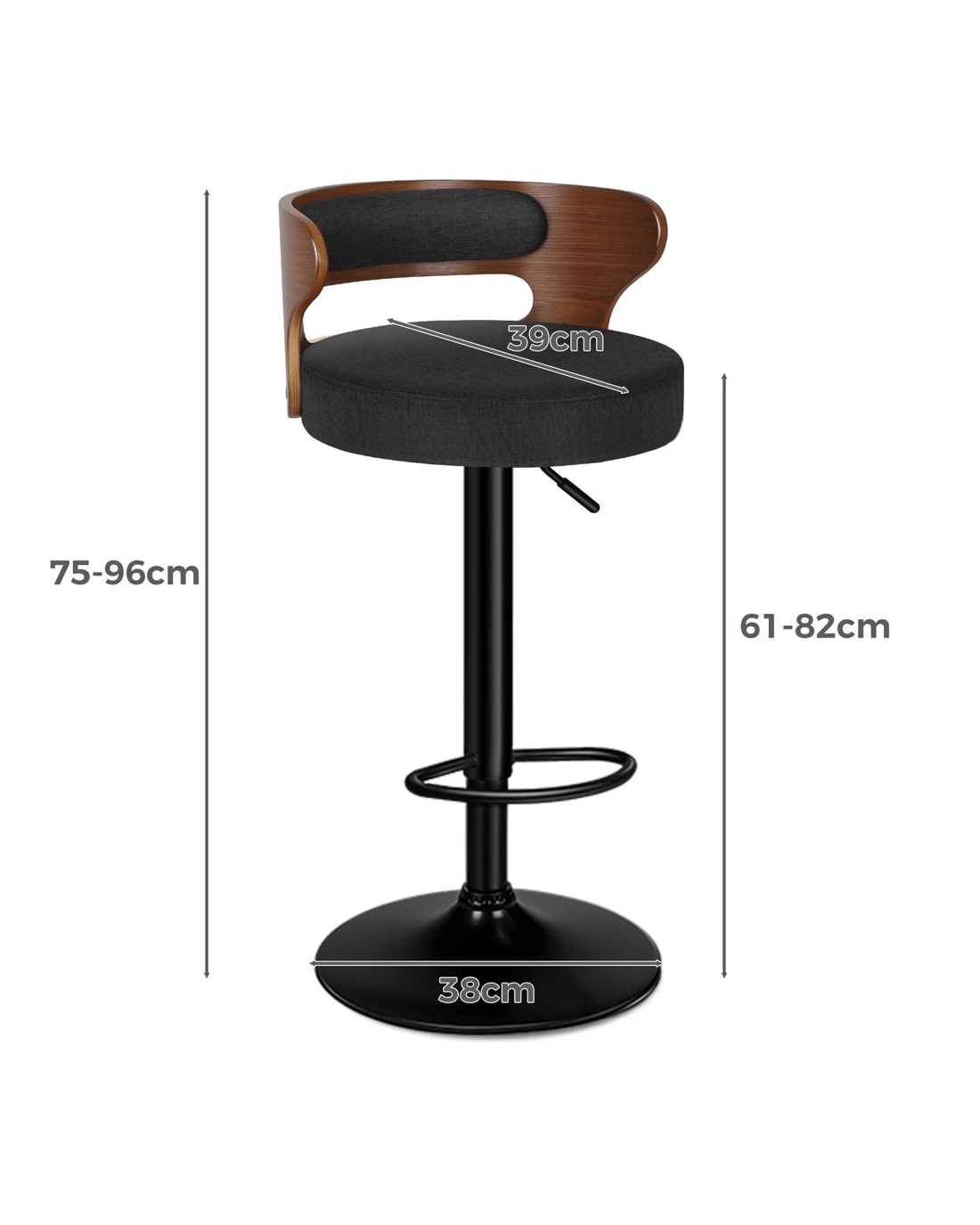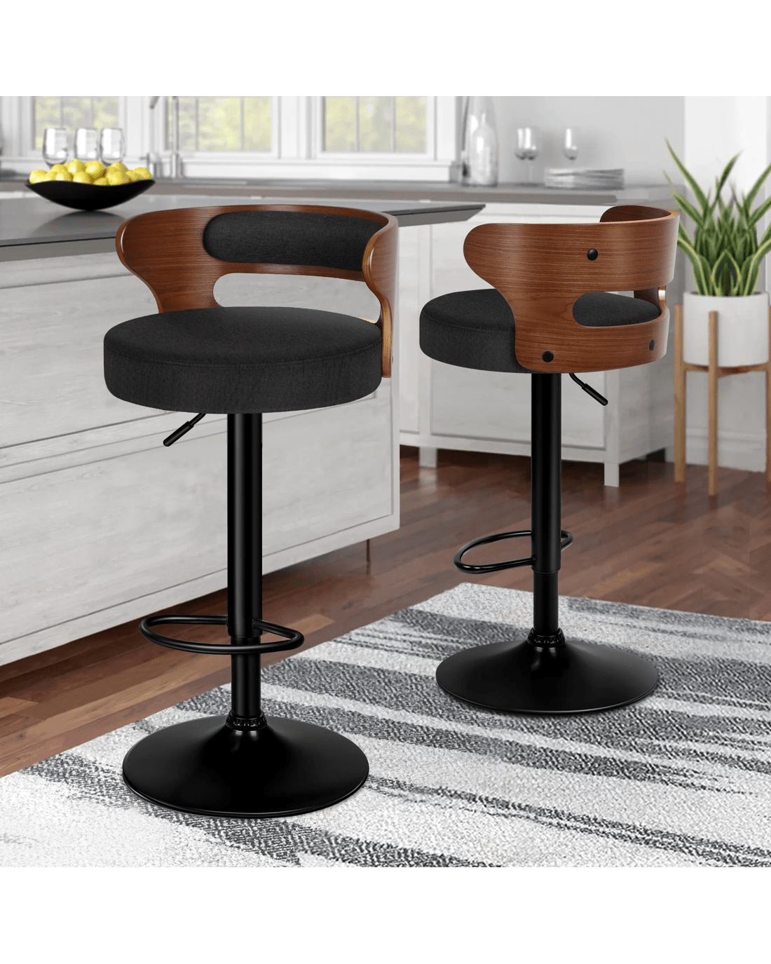 Alfordson 4x Bar Stool Kitchen Swivel Chair Wooden Linen Fabric Ramiro - Black