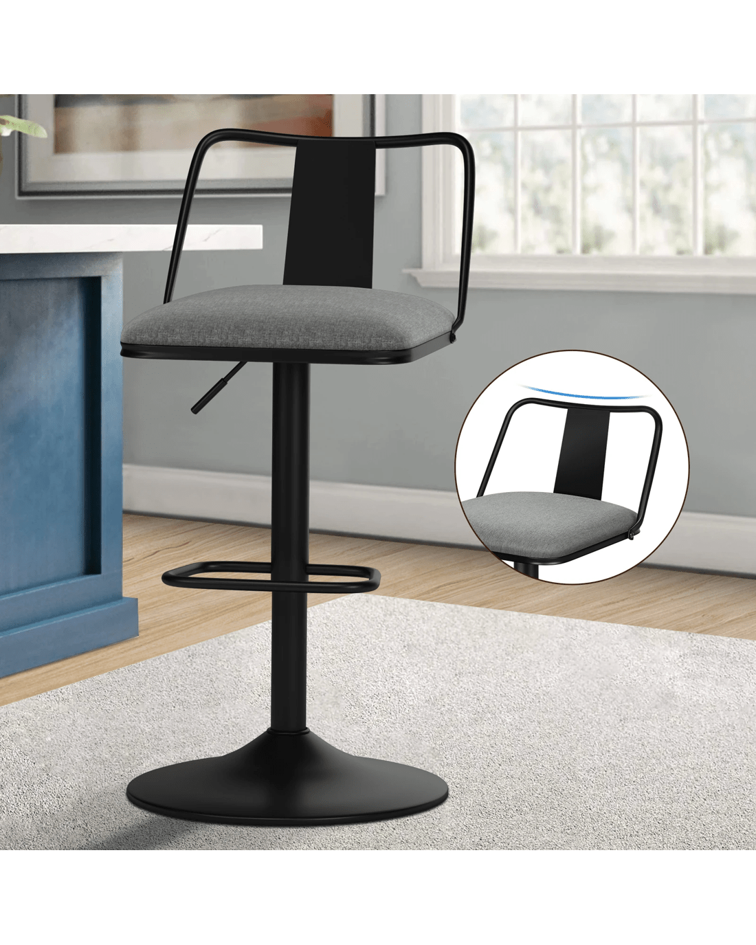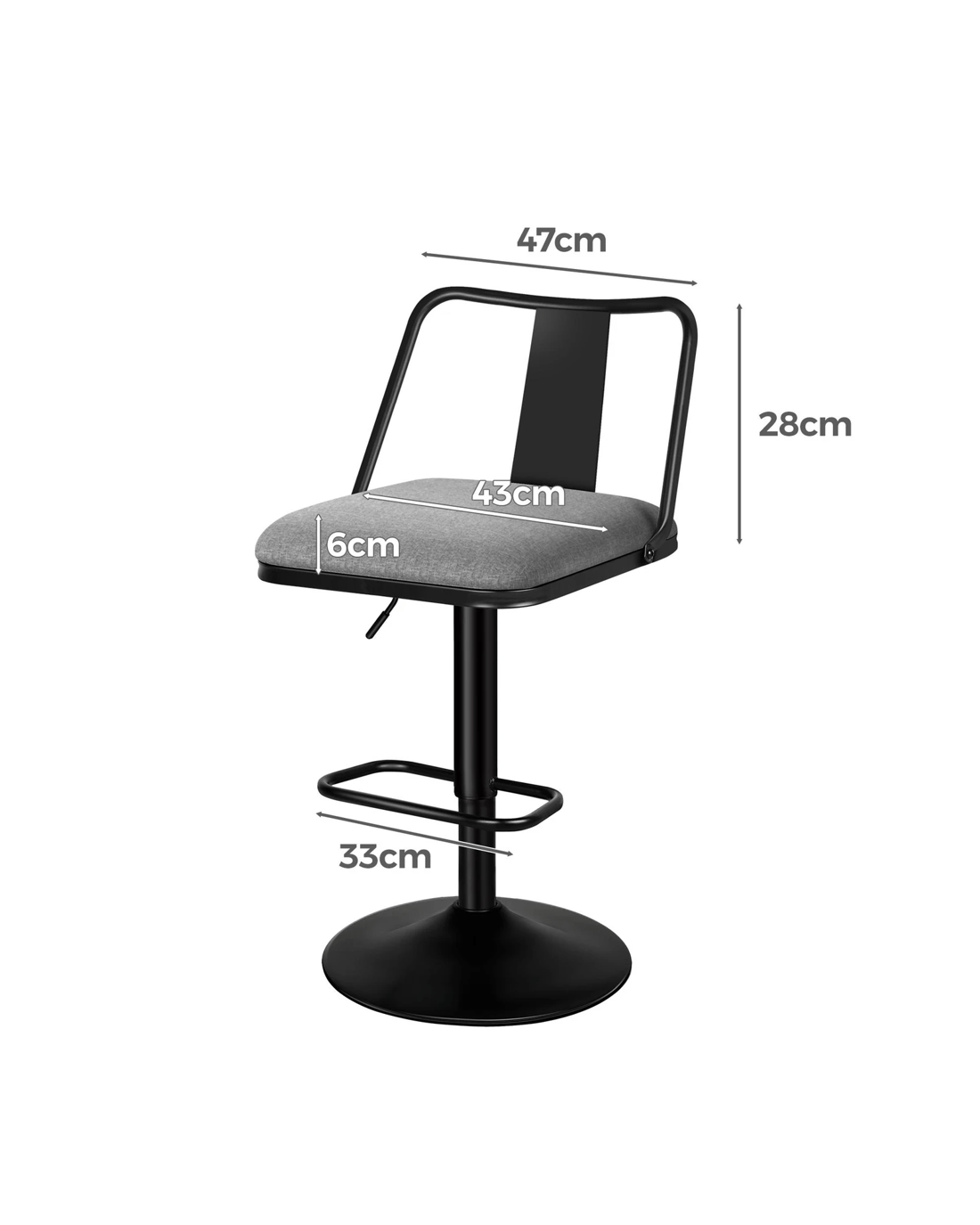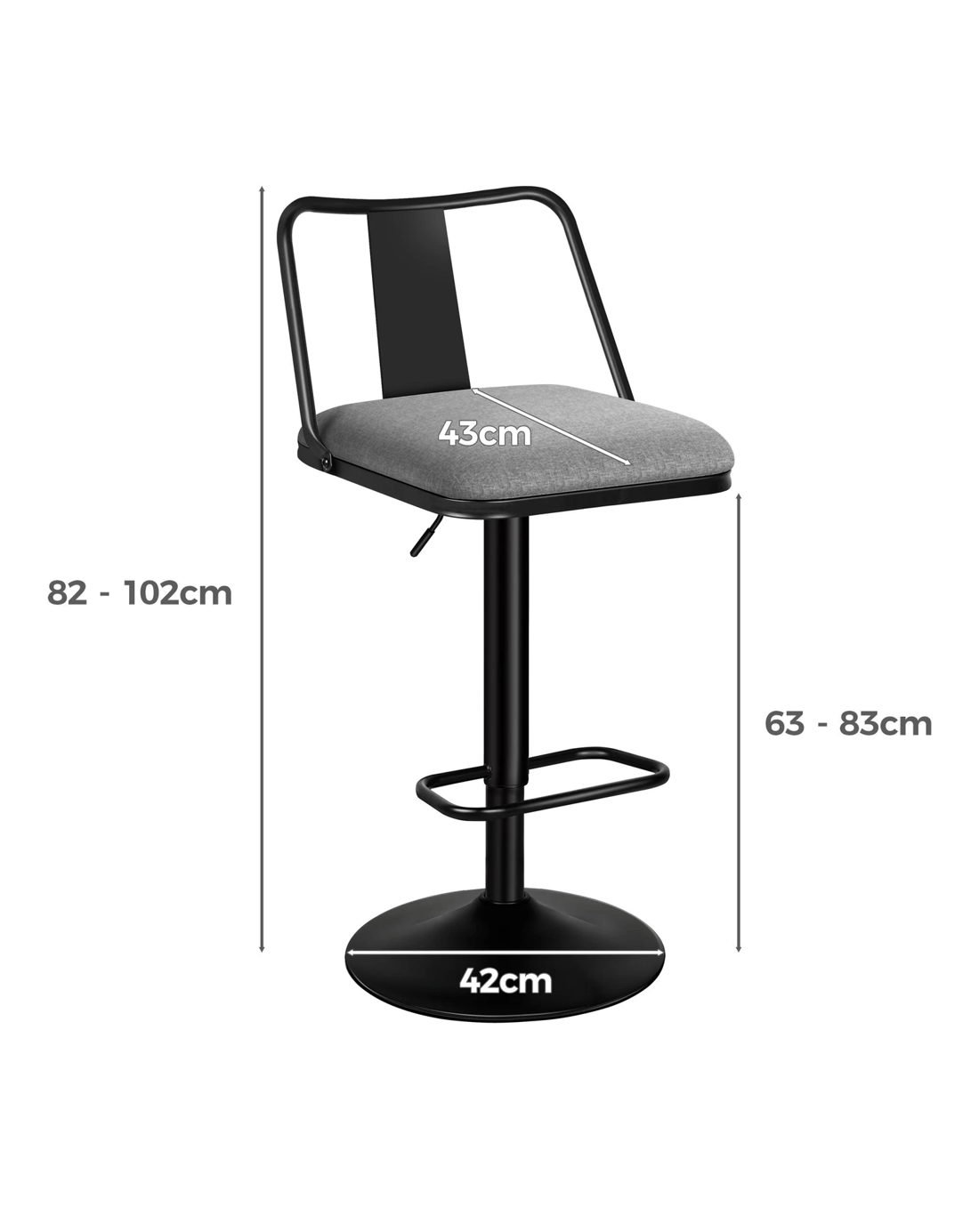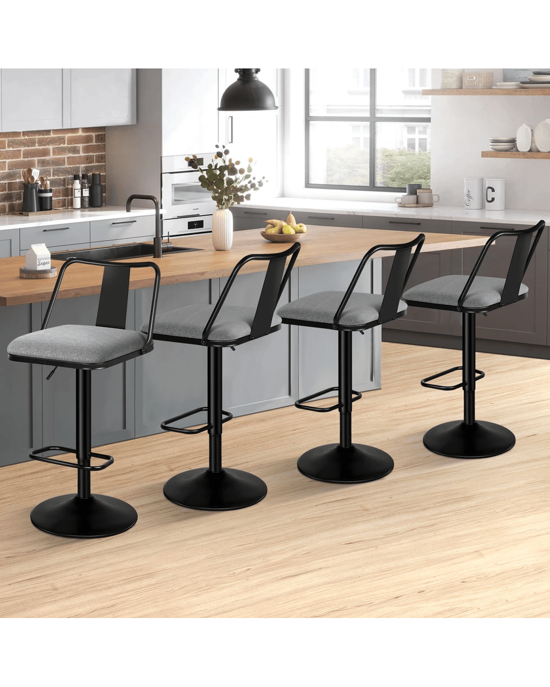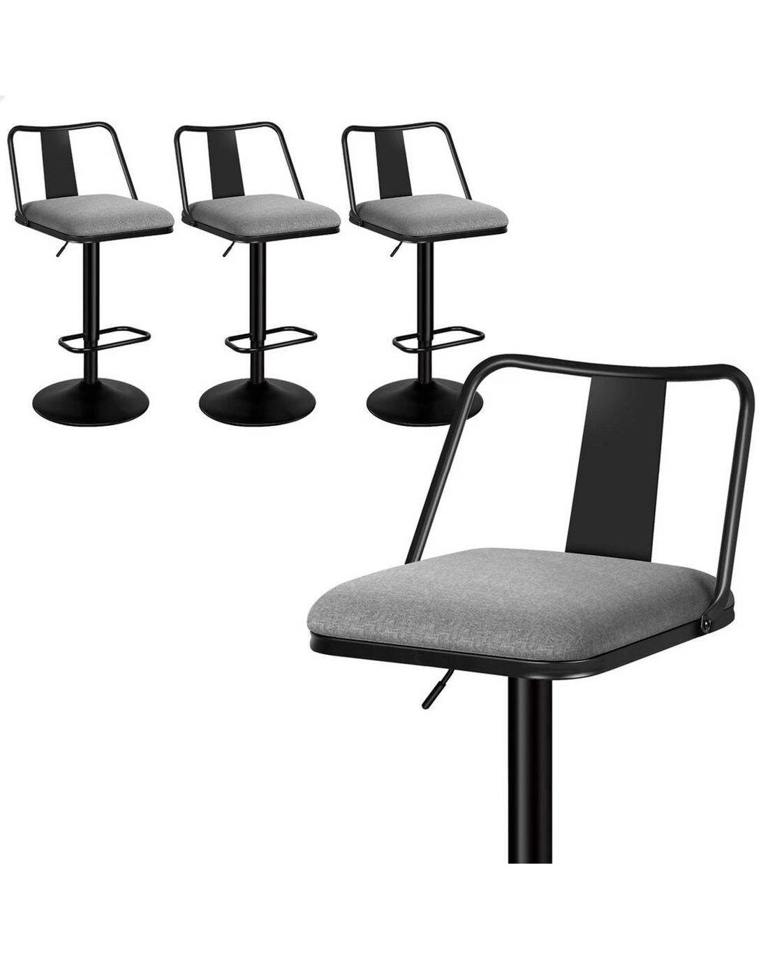Alfordson 4x Bar Stools Gas Lift Fabric Bar Chairs Kitchen Swivel Gloria - Grey