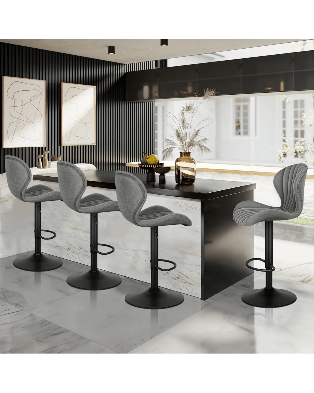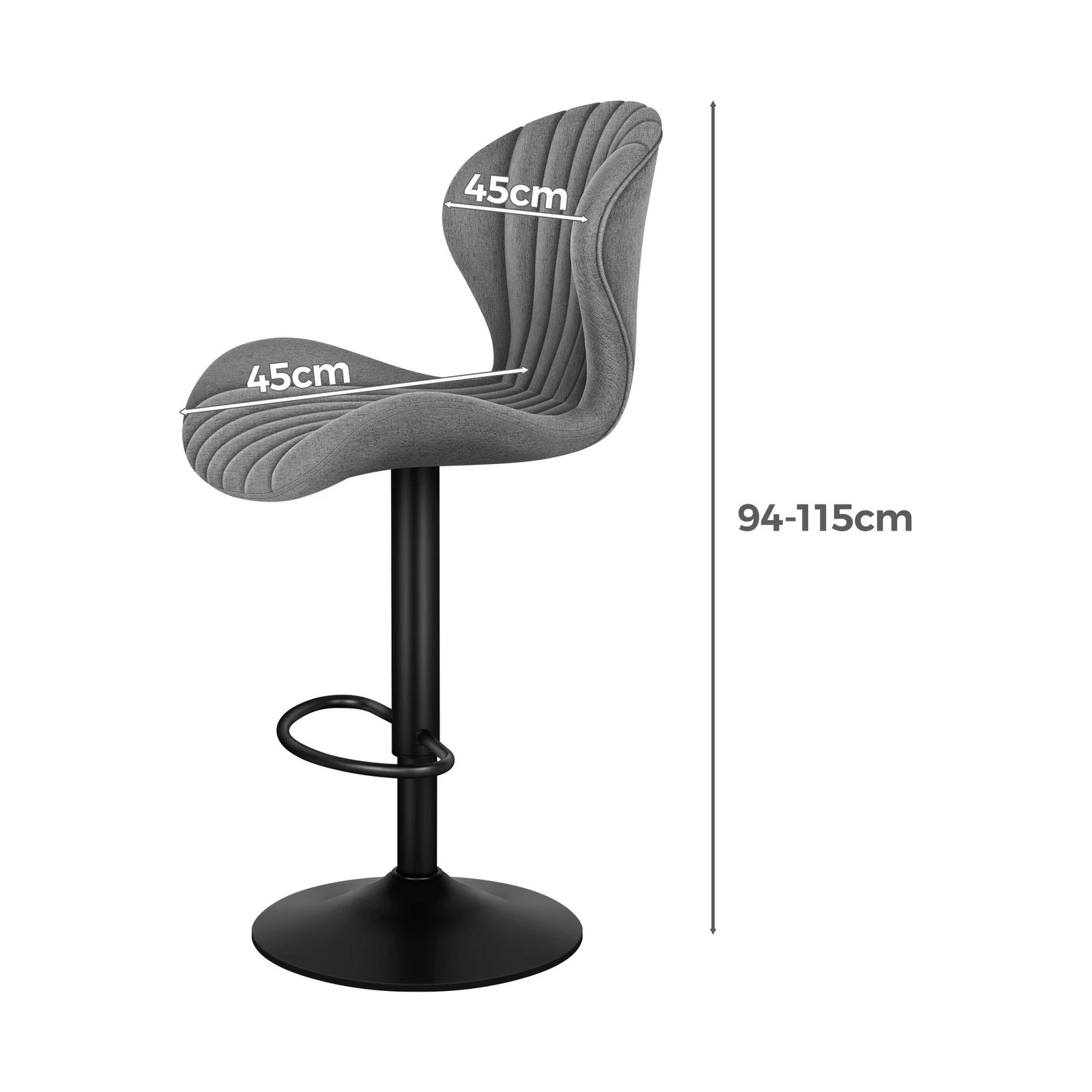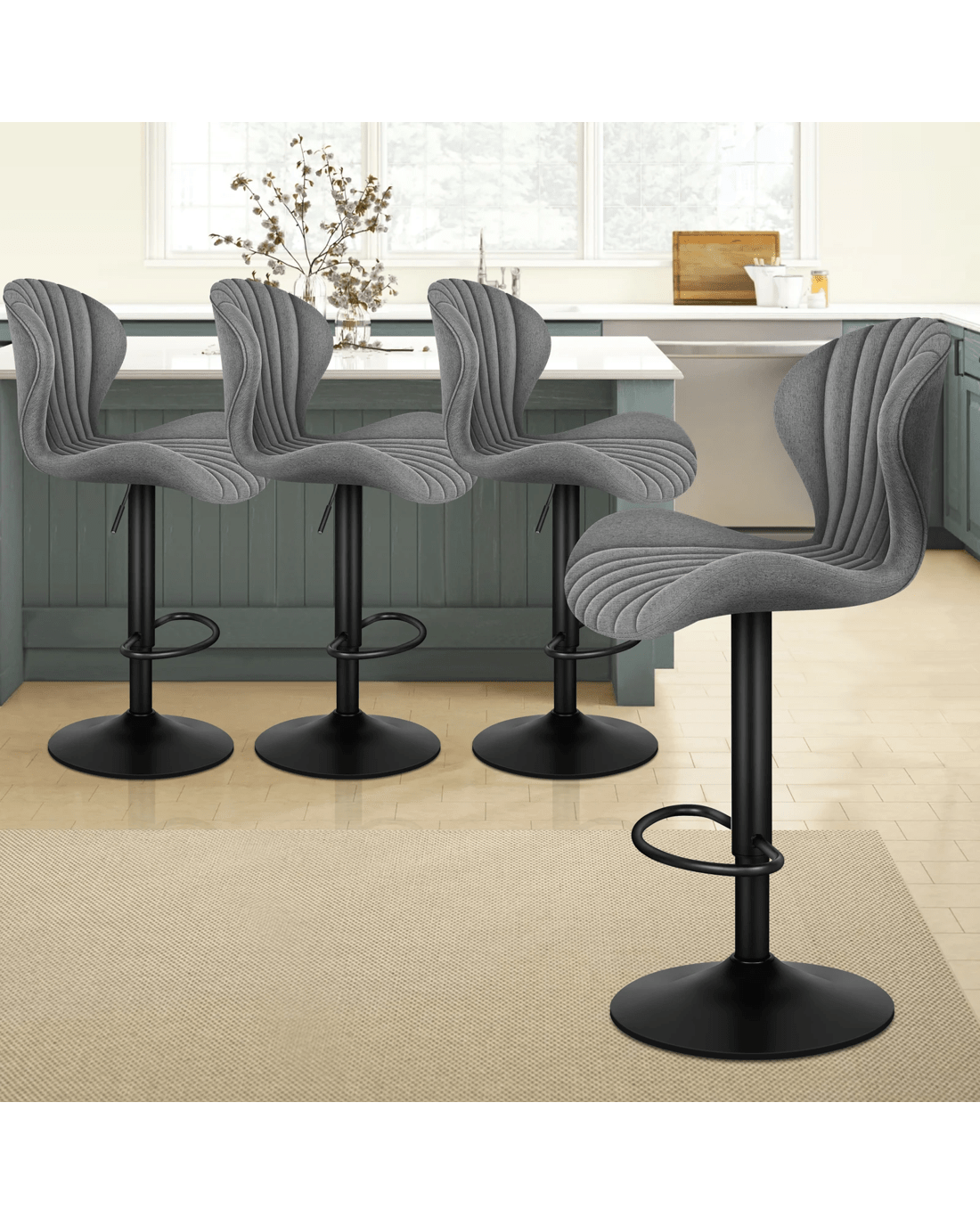 Alfordson 4x Bar Stools Gas Lift Fabric Bar Chairs Kitchen Swivel - Grey