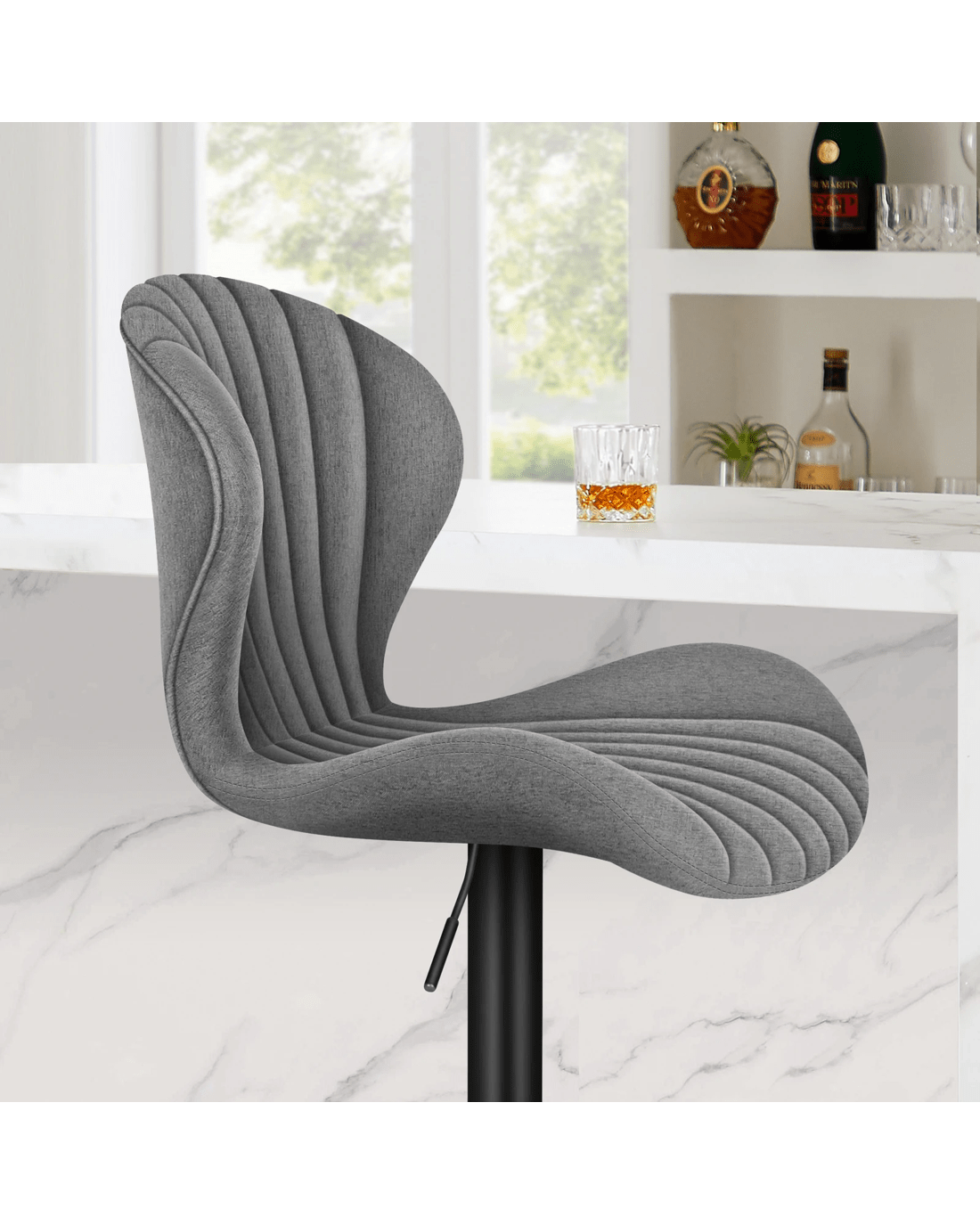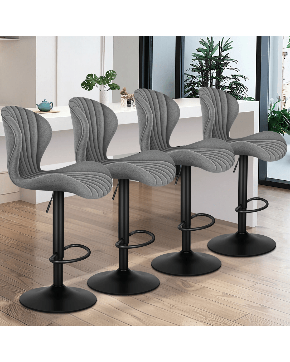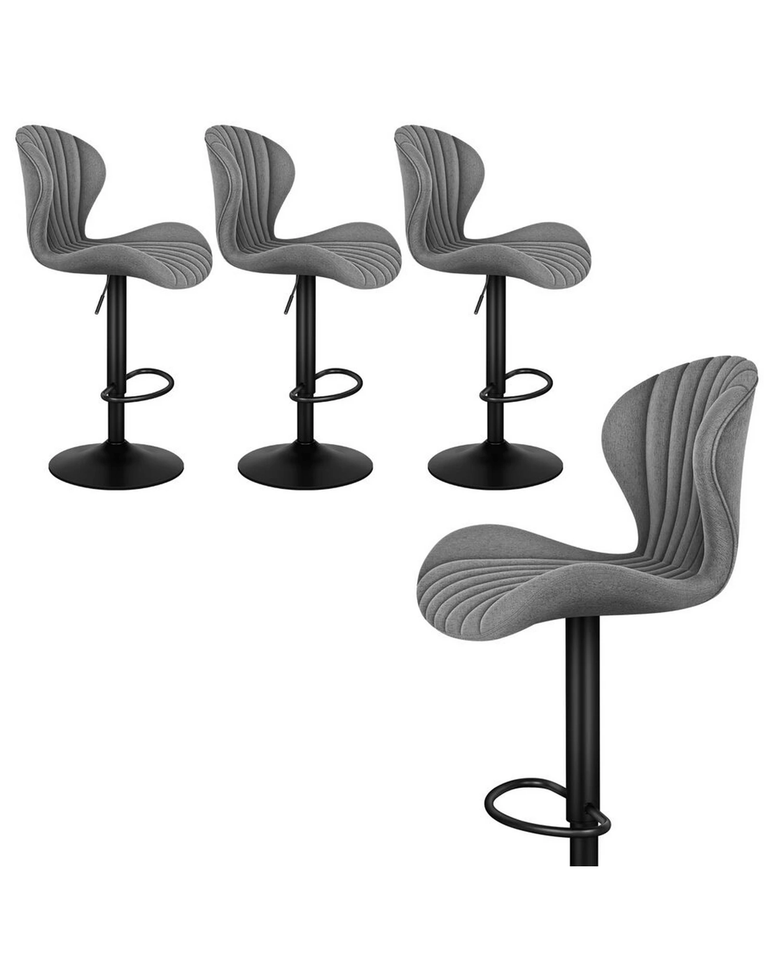 Alfordson 4x Bar Stools Gas Lift Fabric Bar Chairs Kitchen Swivel - Grey