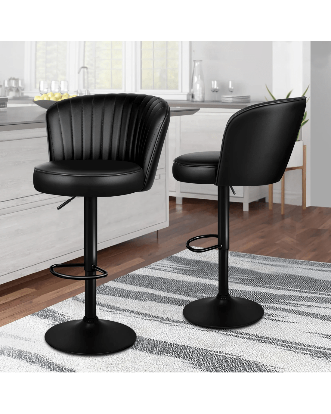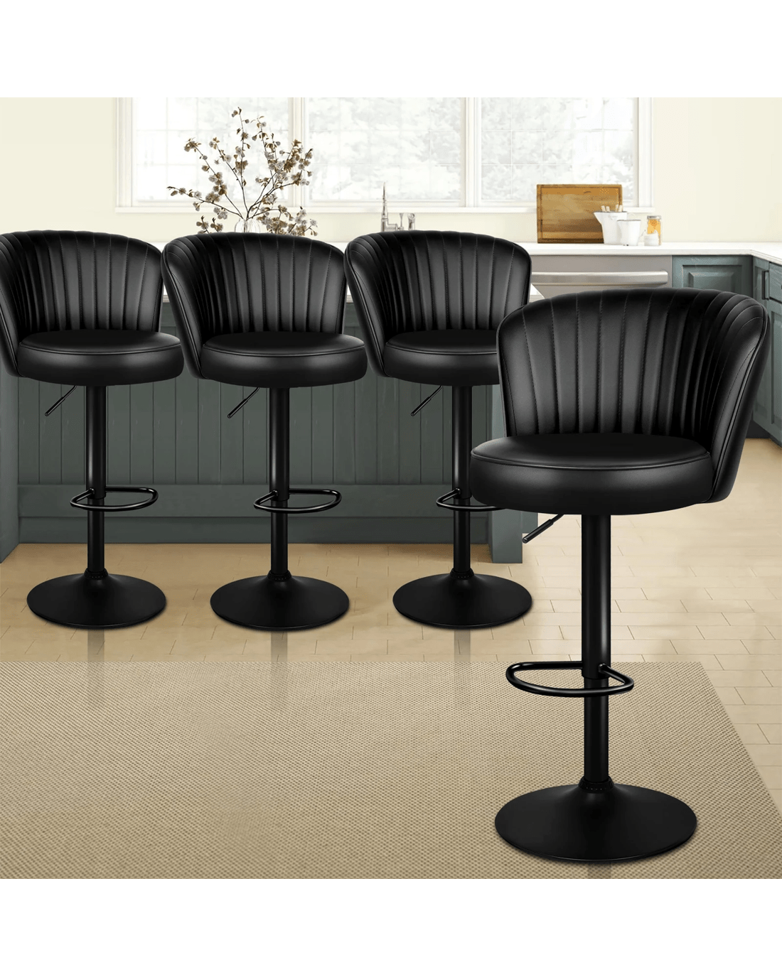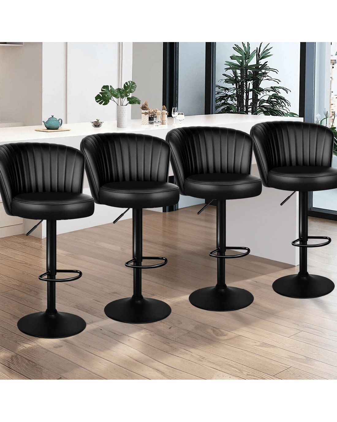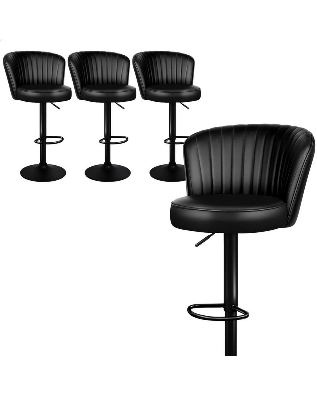 Sold by Aussie Union GroupAlfordson 4x Bar Stools Gas Lift Leather Bar Chairs Kitchen Swivel - Black