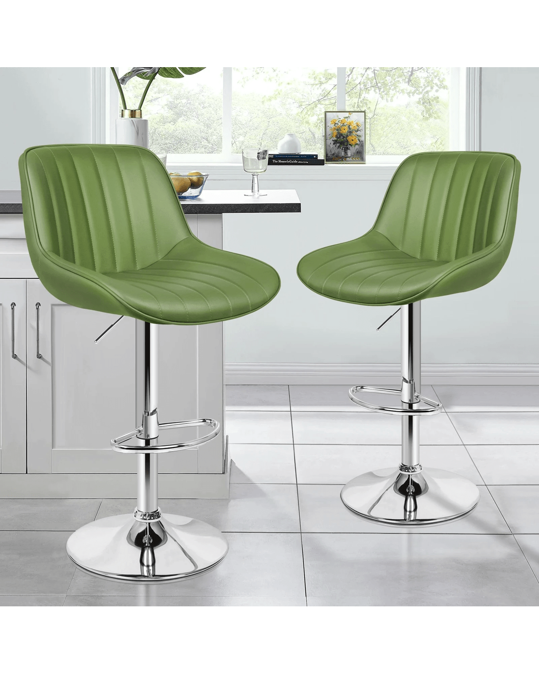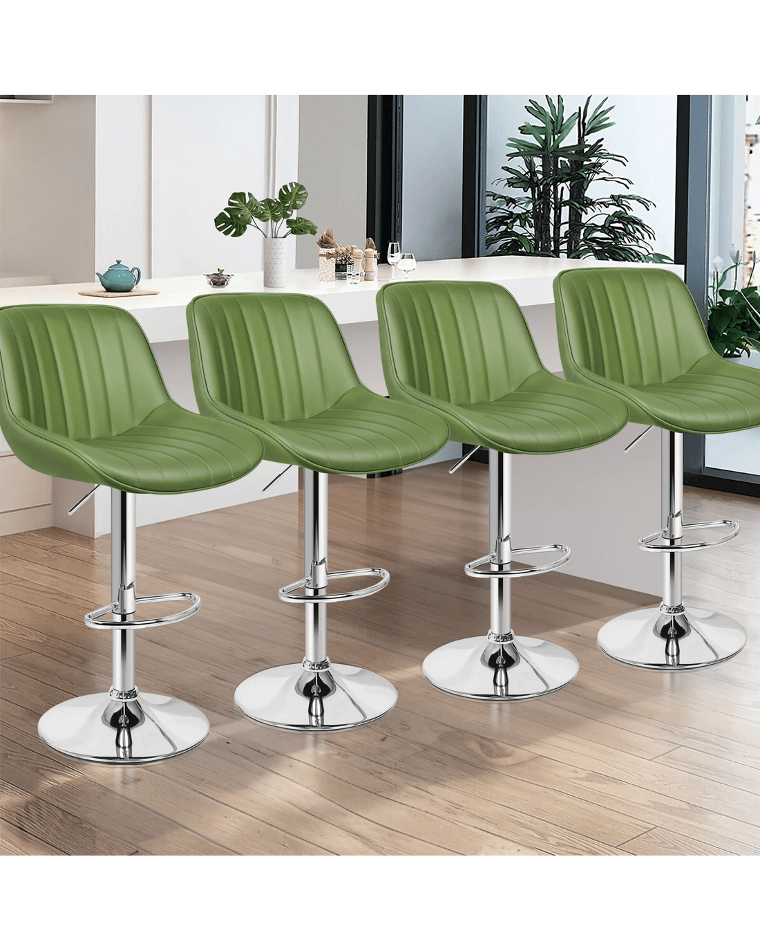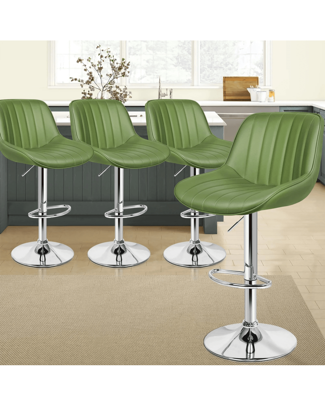 Sold by Aussie Union GroupAlfordson 4x Bar Stools Gas Lift Leather Bar Chairs Kitchen Swivel - Green