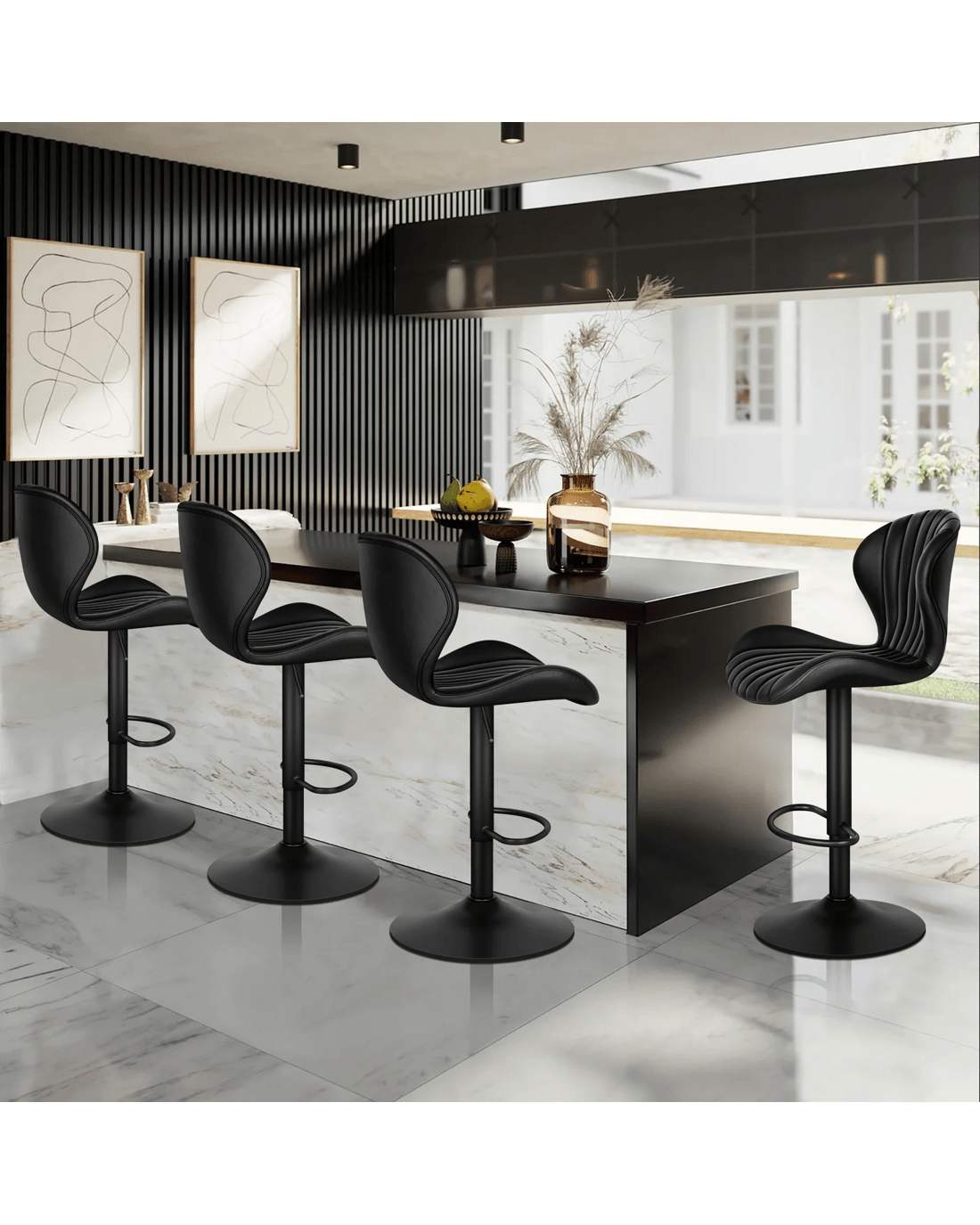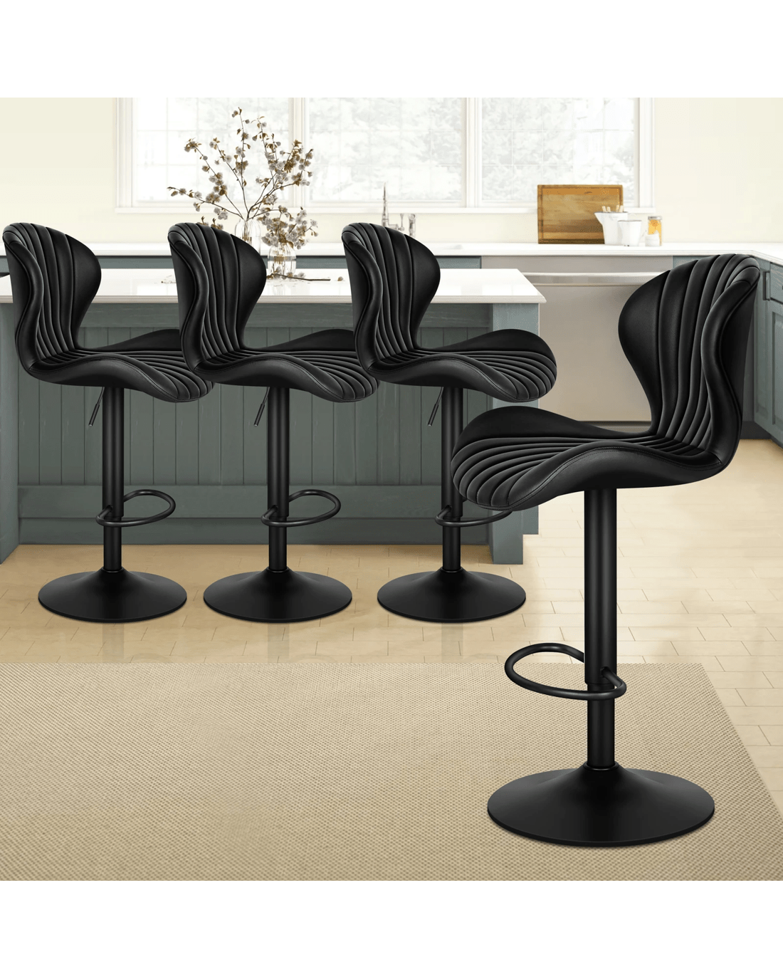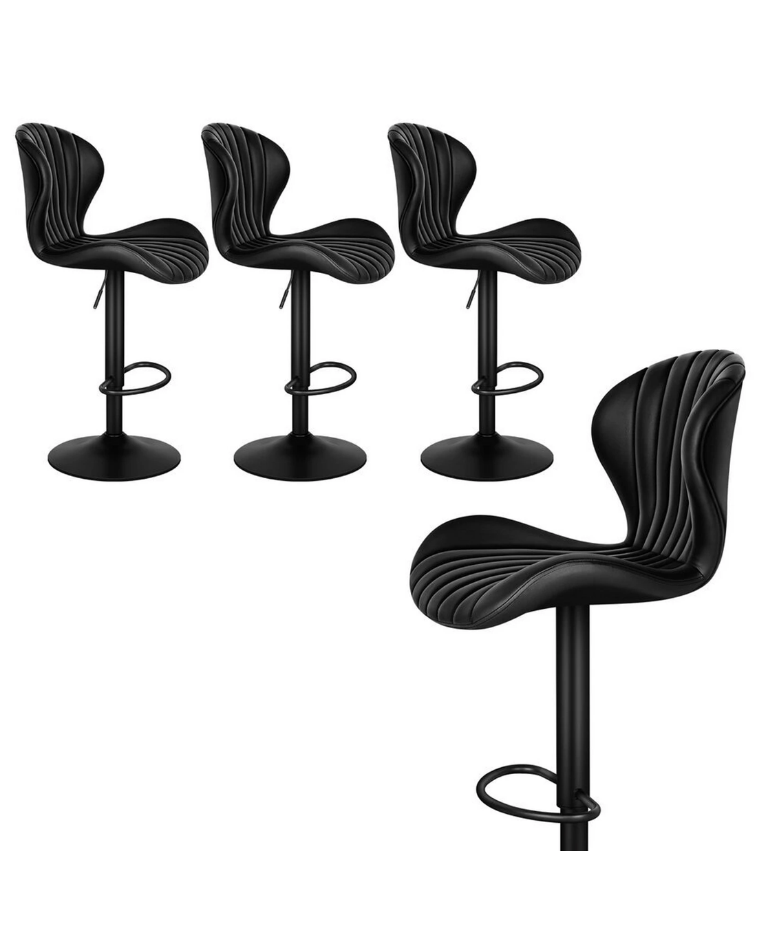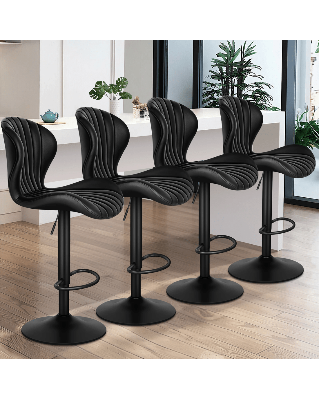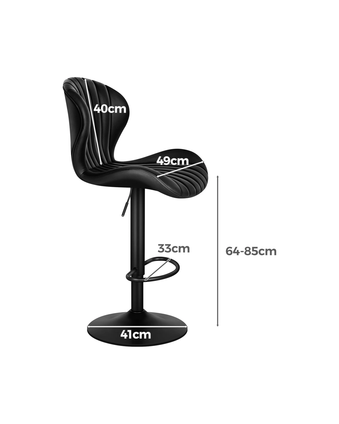 Alfordson 4x Bar Stools Gas Lift Leather Bar Chairs Kitchen Swivel Stella - Black