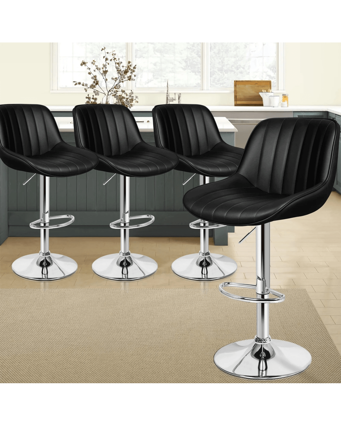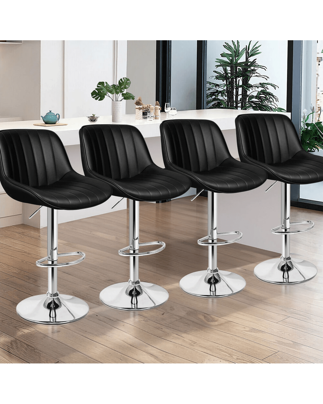 Sold by Aussie Union GroupAlfordson 4x Bar Stools Gas Lift Leather Bar Chairs Kitchen Swivel Wendy - Black