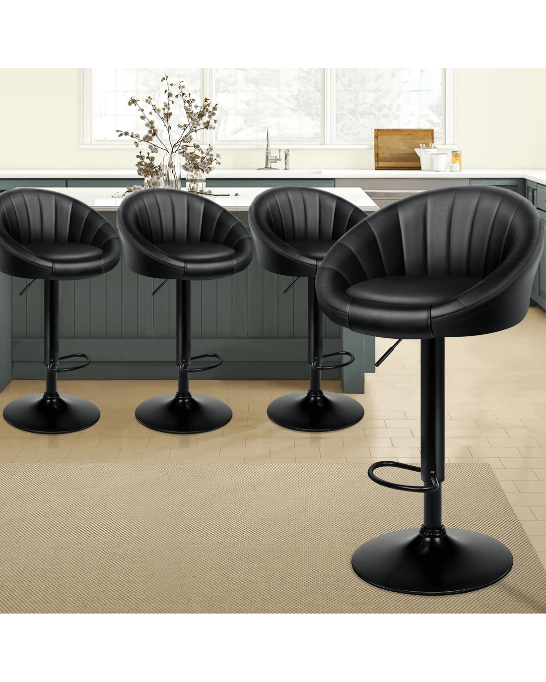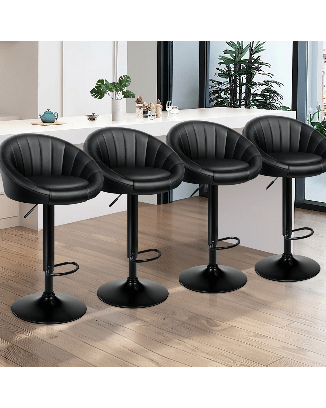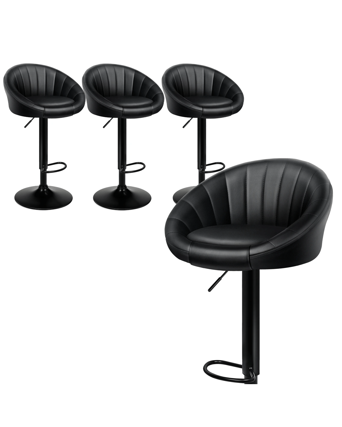 Sold by Aussie Union GroupAlfordson 4x Bar Stools Gas Lift Leather Chairs Kitchen Swivel - All Black