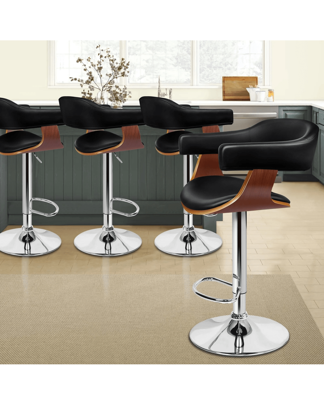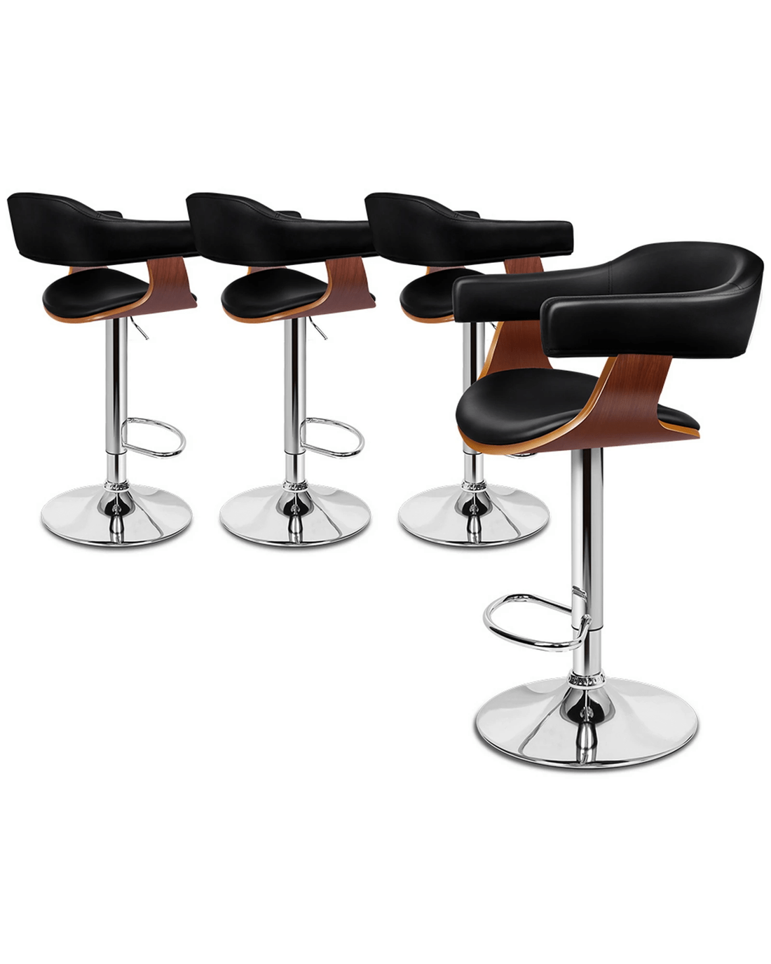 Sold by Aussie Union GroupAlfordson 4x Bar Stools Joan Kitchen Swivel Chair Wooden Leather Gas Lift - Black