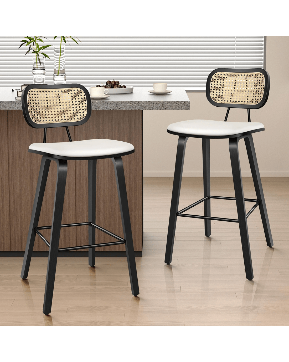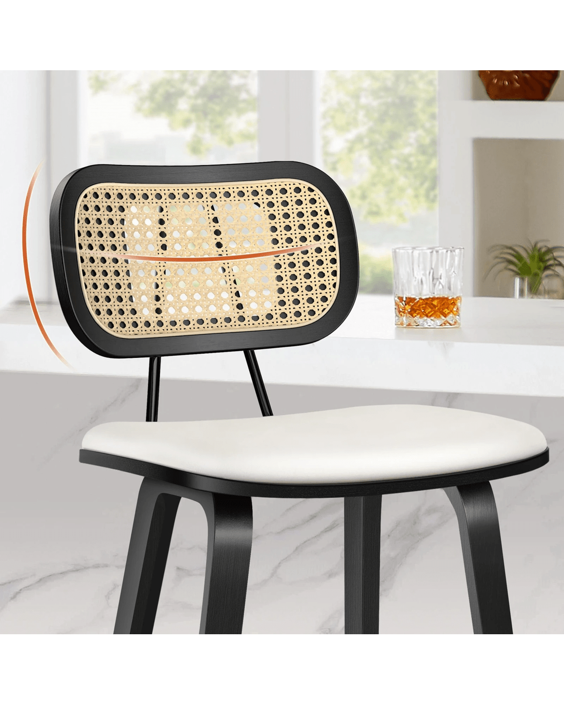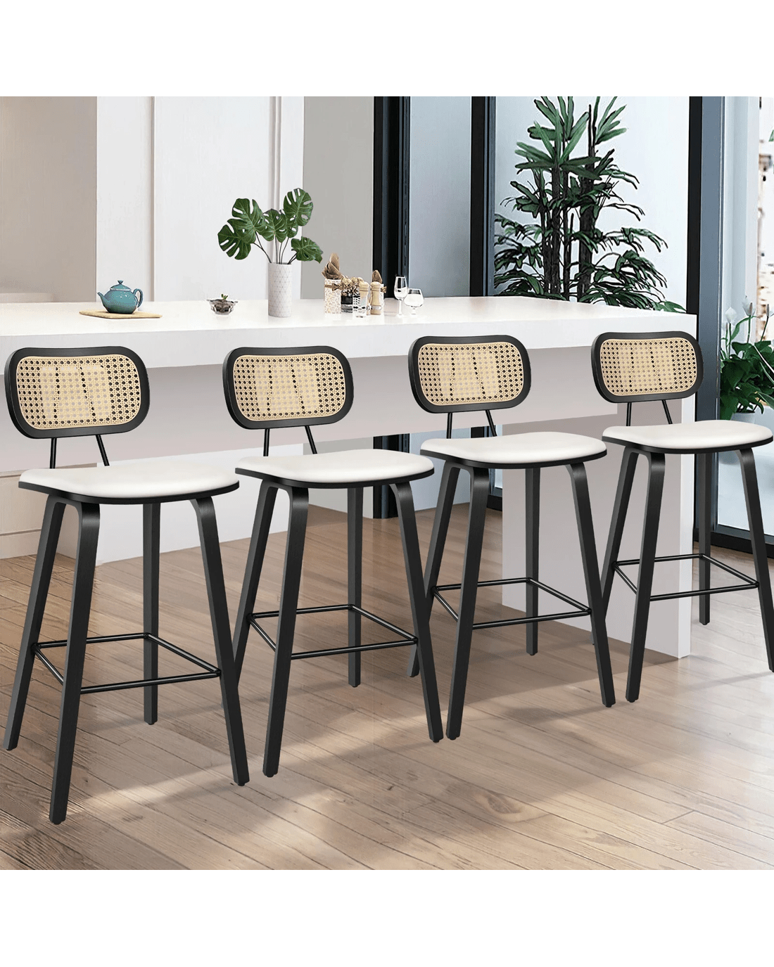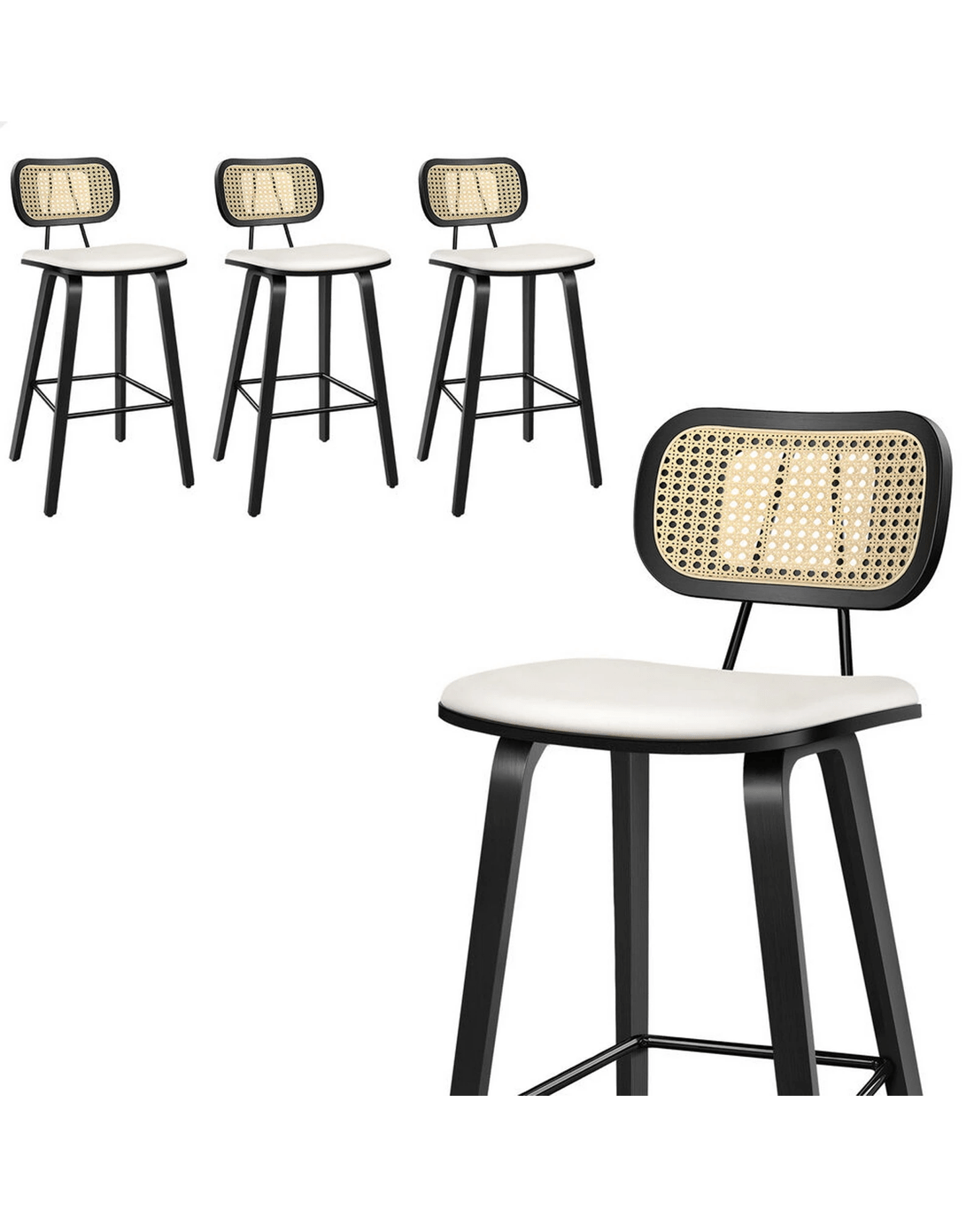 Featuring a stylish and comfortable rattan backrest, this barstool adds both elegance and support. Perfect for those who desire a chic look without sacrificing comfort, this Bar Stool - ideal choice for enhancing your dining or entertaining space. Prop up your feet on the footrest as you enjoy brunch or a late-night snack. As always, we have no compromise on materials Use - th an extra layer of mesh, the rattan backrest is designed to be long-lasting durability. It also features adjustable leveler on all legs to provide stability on uneven surfaces.