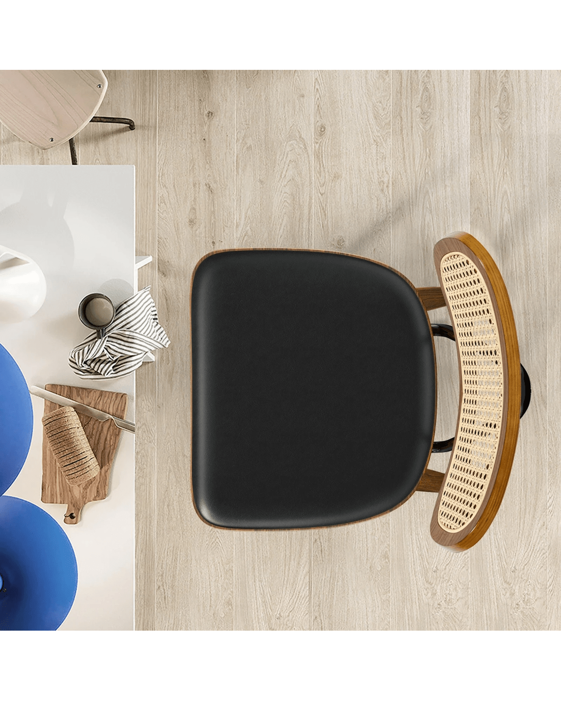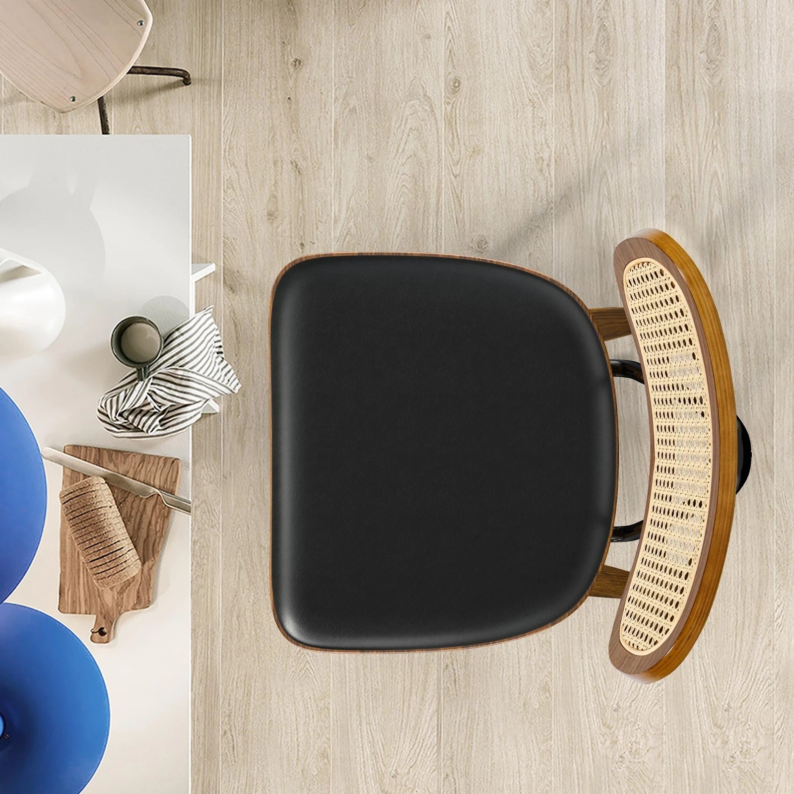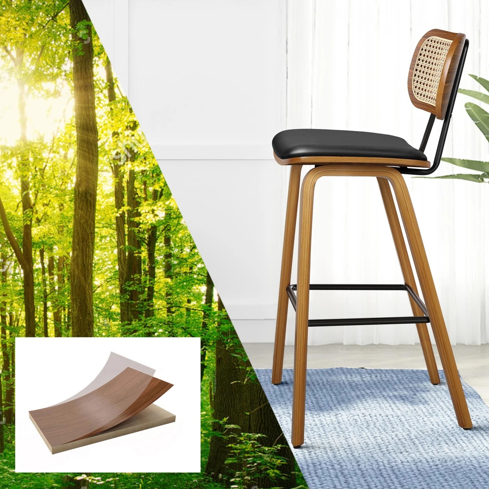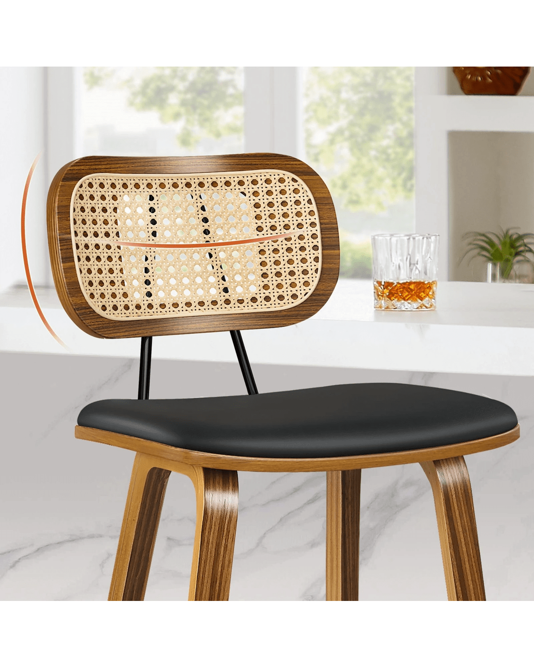 Alfordson 4x Bar Stools Kitchen Vintage Leather Seat Rattan Chair Wooden - Black