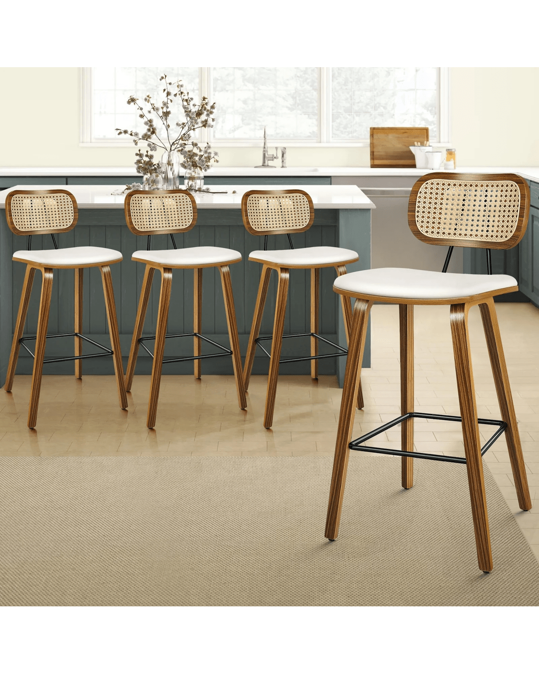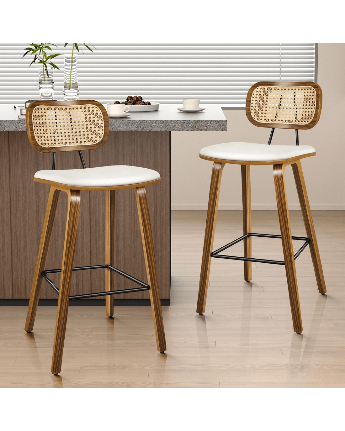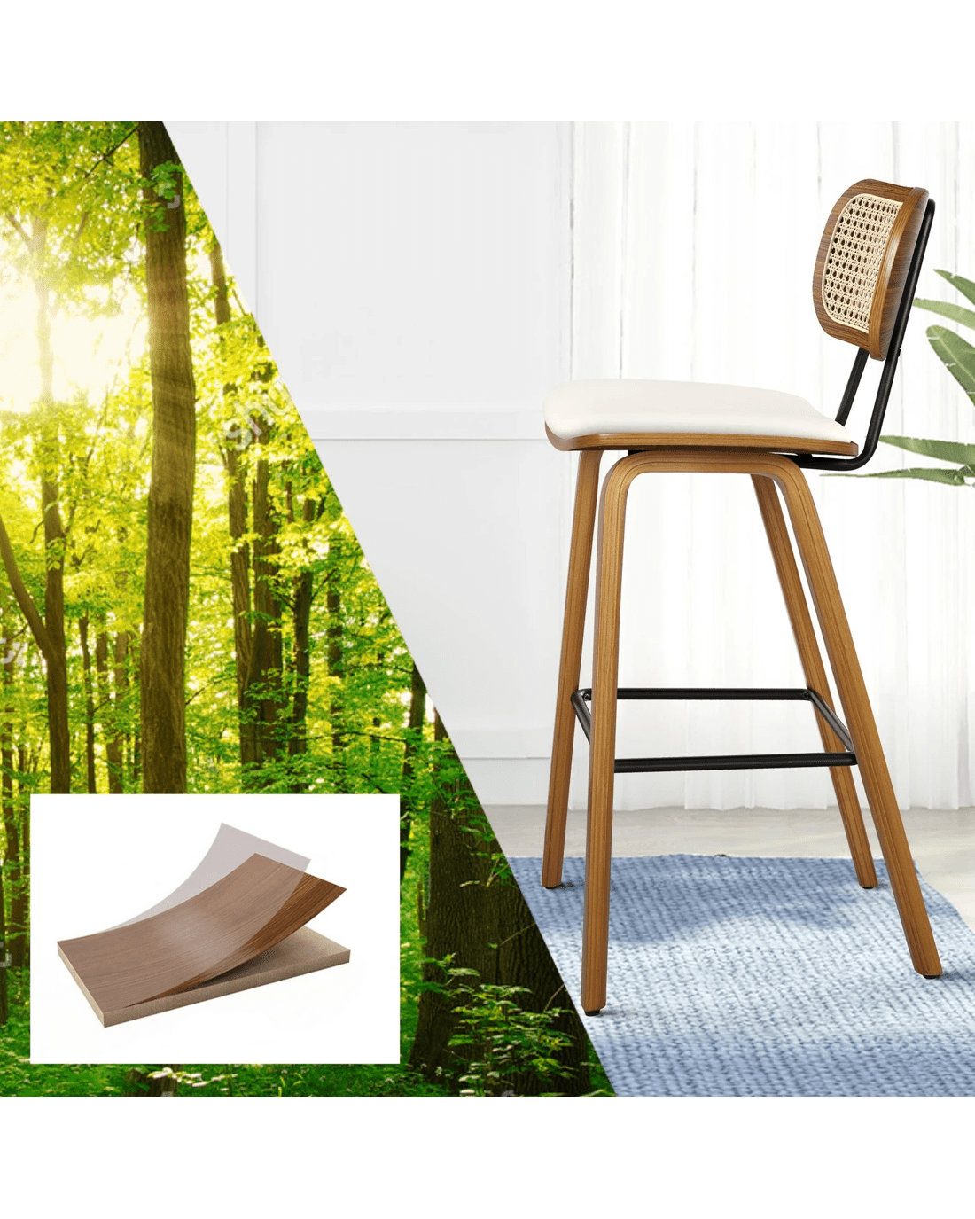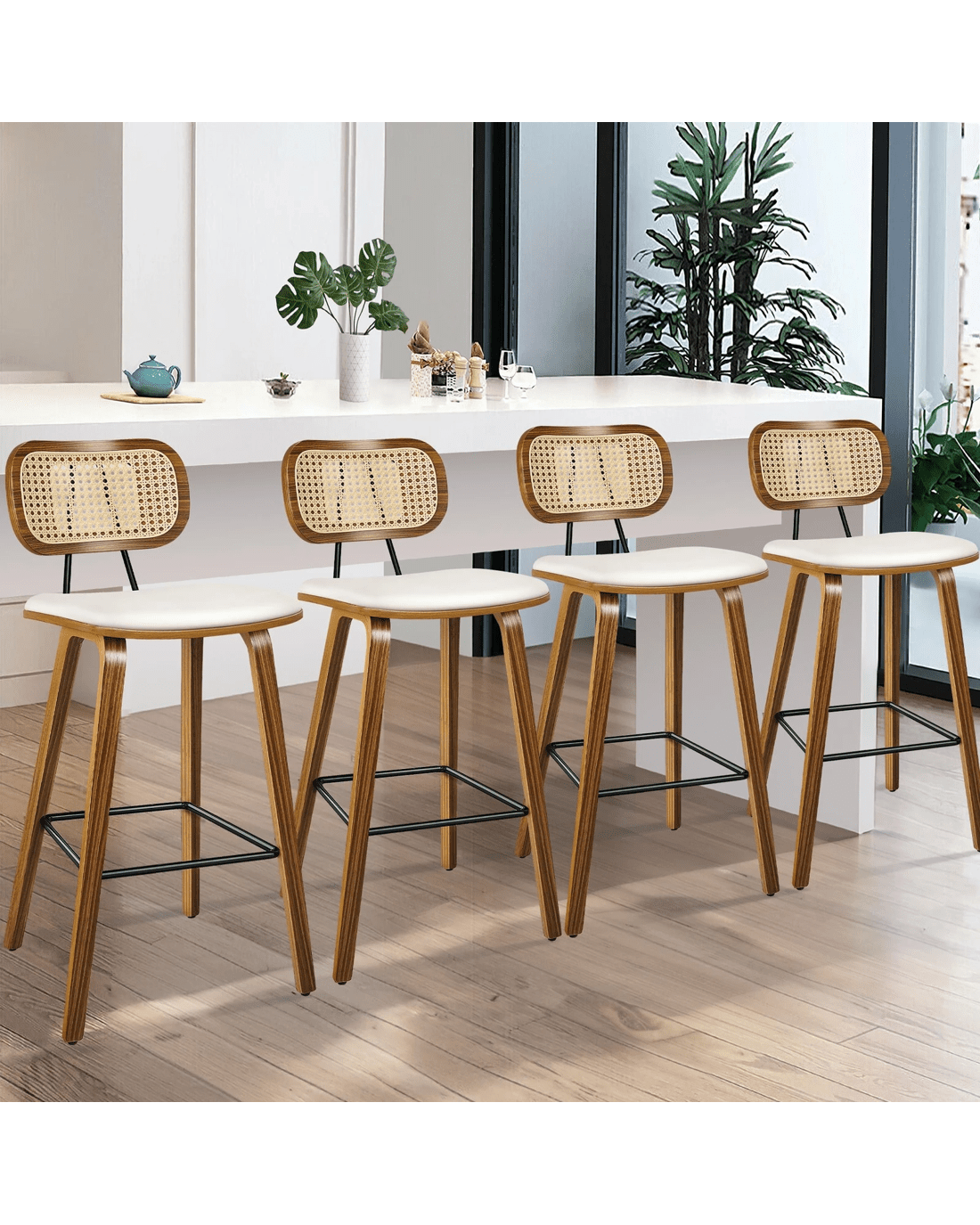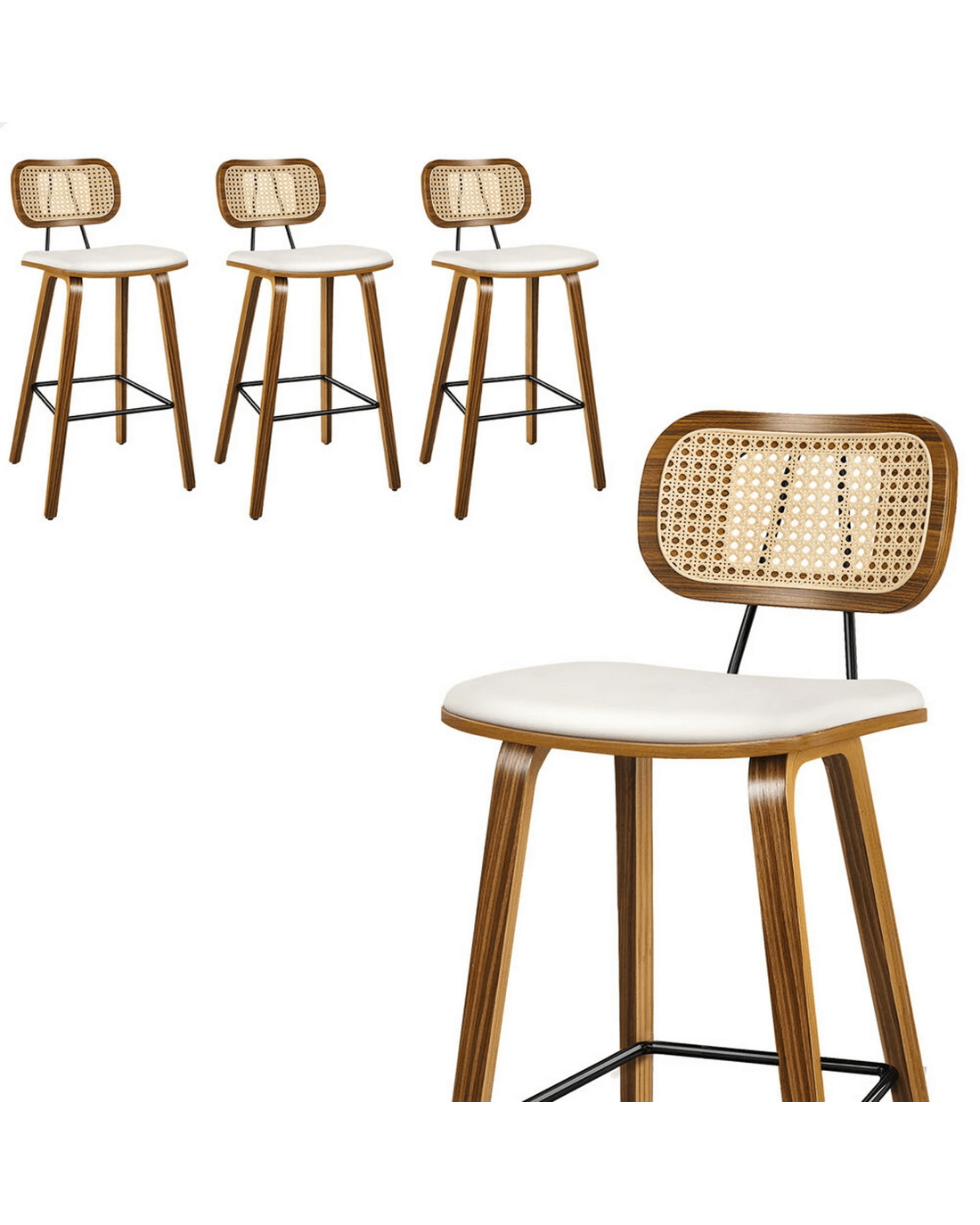 Featuring a stylish and comfortable rattan backrest, this barstool adds both elegance and support. Perfect for those who desire a chic look without sacrificing comfort, this Bar Stool - ideal choice for enhancing your dining or entertaining space. Prop up your feet on the footrest as you enjoy brunch or a late-night snack. As always, we have no compromise on materials Use - th an extra layer of mesh, the rattan backrest is designed to be long-lasting durability. It also features adjustable leveler on all legs to provide stability on uneven surfaces.