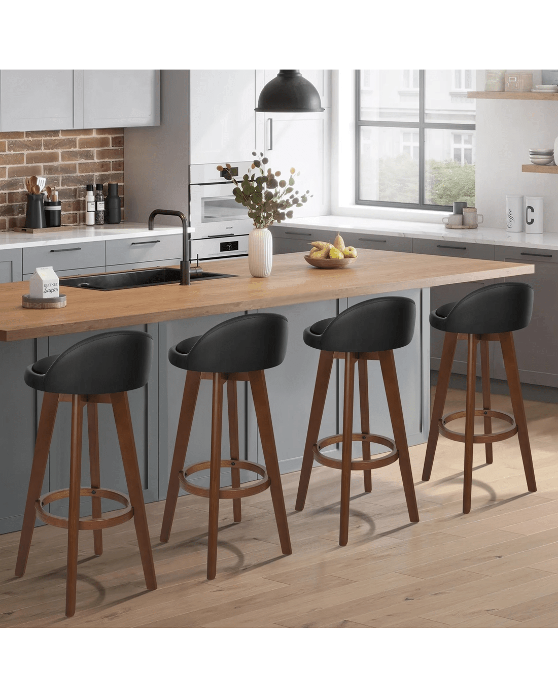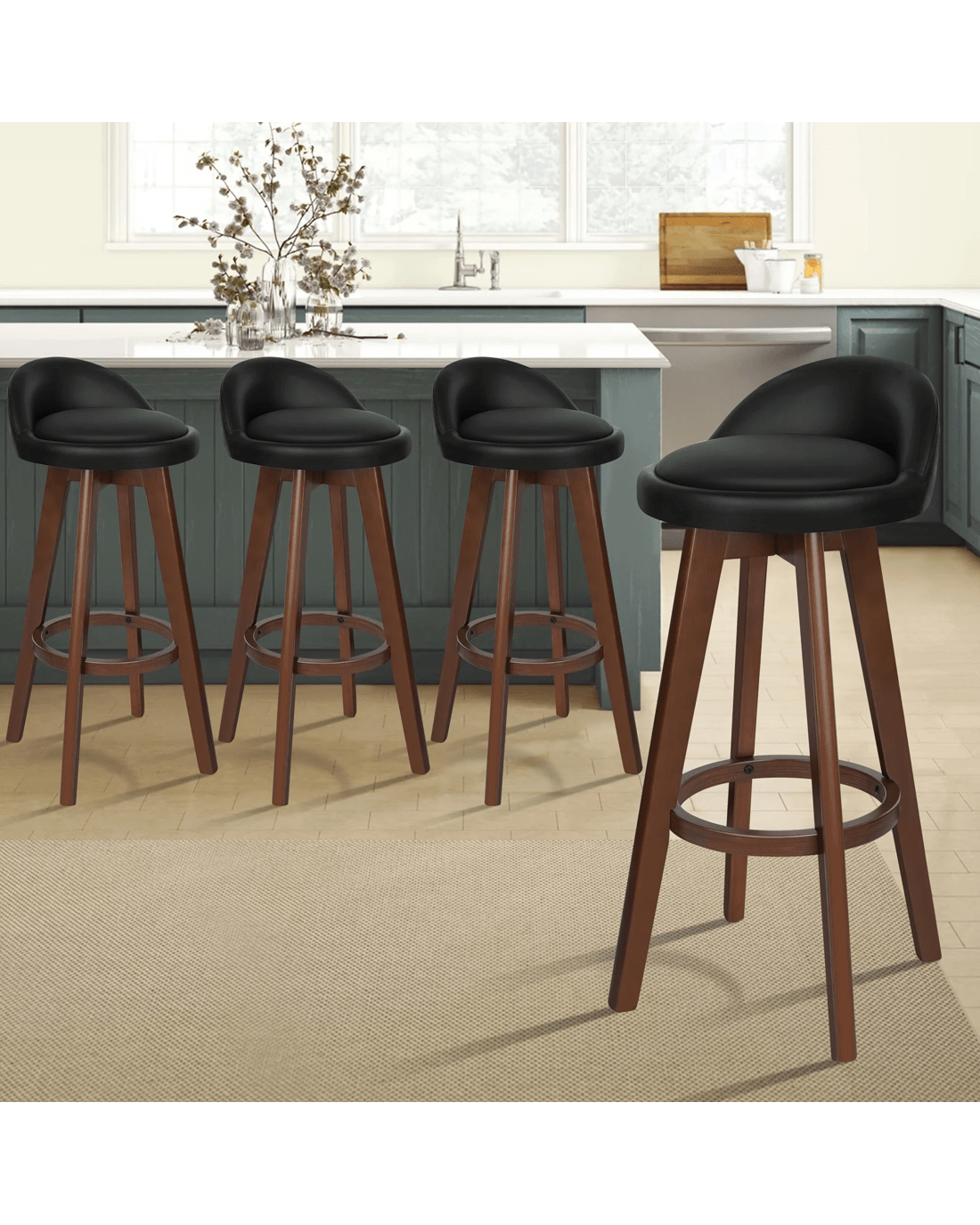 Sold by Aussie Union GroupAlfordson 4x Bar Stools Liam Kitchen Wooden Swivel Chairs Black - Black