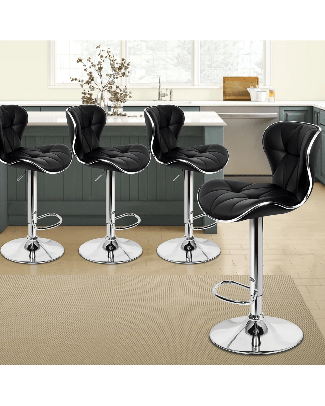 Alfordson 4x Bar Stools Luna Kitchen Swivel Chair Leather Gas Lift - Black