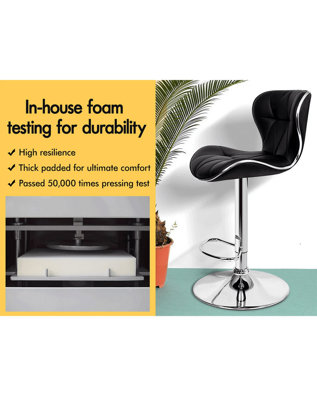 As always, we have no compromise on materials Use - ameter of the base is increased, resulting in larger supporting area, so the seat becomes more secure and stable with long-lasting durability. Better still, the shiny chrome base and footrest complement the stool's modern design. A rubber floor protector ring, embedded in the case, reduces noise and protects your floor by sliding smoothly when you need to move the stool.